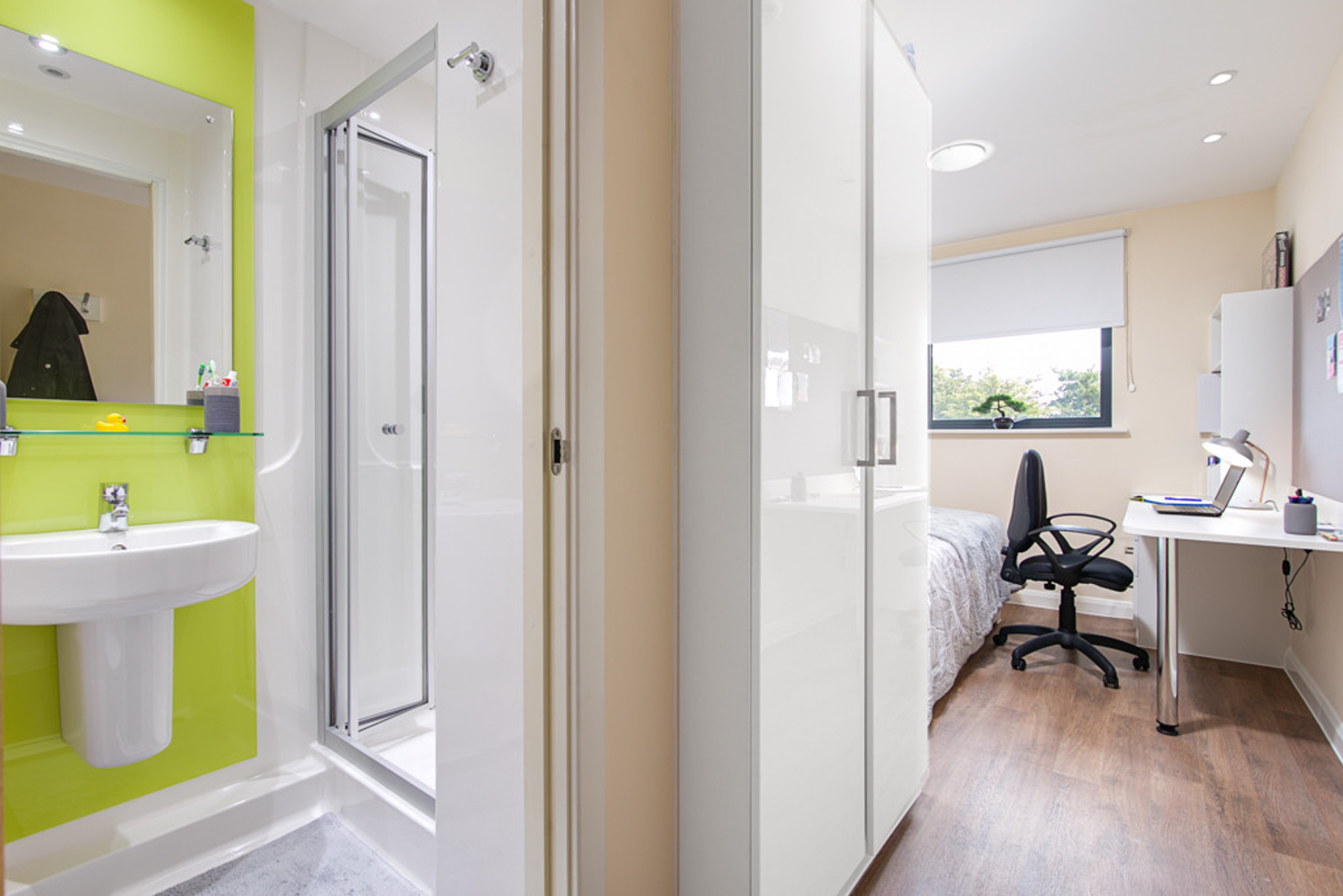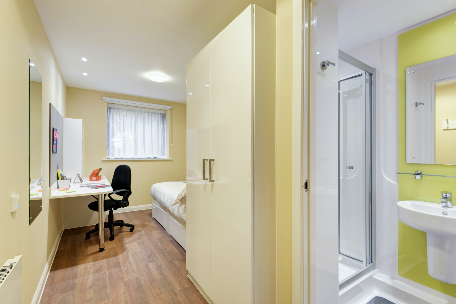 If you’re looking for a bit more space, the silver ensuite room will work for you! Including your own private shower room, small double bed, loads of storage and a shared kitchen and lounge area.