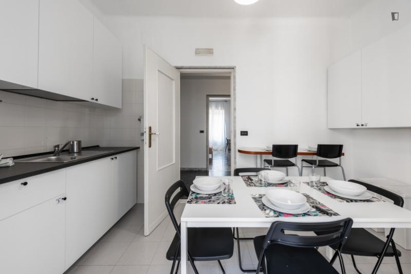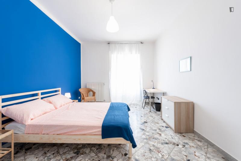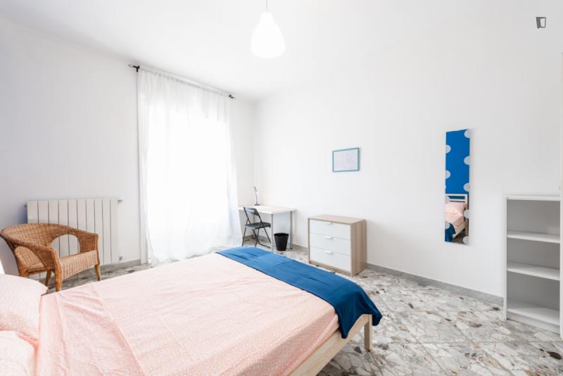 Comfortbale room that has a private balcony, air conditioning and thermosyphon. Room well equipped and located in an apartment consisting of 5 other room, two bathroom, a toilet and a kitchen.This represents the perfect choice if you want to enjoy a pleasant stay in Bari, in a recently renovated apartment. The price includes expenses of condominium, wifi internet and one hour of cleaning per week of the common areas. RENTAL CONDITIONS: 1 Monthly rent: 380 which includes internet WiFi, condominium fee and heating must be given by the 5th of the every month. 2 Security deposit: 500,00 which will be refunded only one time. 3 Administrative Cost: starting from 300,00 only one time it includes: -Italian contract registration fee at the “Revenue Agency” to validate it by law starting from 65.50 euros -Documentation necessary to validate the contract like OFFICIAL FISCAL CODE -Weekly cleaning in common areas -Waste disposal fee -Italian TV rate -Final cleaning of the room -Routine maintenance and assistance. EXTRA COSTS: – Public services water, electricity and gas are for consumption NO HIDDEN COST! To consult values please contact us, we will be happy to help you : Located on the fourth floor, the apartment consists of 6 room totally furnished in order to cope with any costumer need, a fully equipped kitchen which represents a perfect place for sharing meals at the end of the day, a large balcony used as laundry area and two bathroom plus a toilet. A relax area is provided near the entrance with comfortable a sofa and a television. It represents a great opportunity if you want to experience something out of the ordinary in Bari in a safe and high quality apartment. We are always present to support you at any time of need. RENTAL CONDITIONS: 1 Monthly rent: Depending on the room chosen which includes internet WiFi and condominium fee must be given by the 5th of the every month. 2 Security deposit: 500,00 which will be refunded only one time. 3 Administrative Cost: starting from 300,00 only one time it includes: -Italian contract registration fee at the “Revenue Agency” to validate it by law starting from 65.50 euros -Documentation necessary to validate the contract like OFFICIAL FISCAL CODE -Weekly cleaning in common areas -Waste disposal fee -Italian TV rate -Final cleaning of the room -Routine maintenance and assistance. EXTRA COSTS: – Public services water, electricity and gas are for consumption NO HIDDEN COST! To consult values please contact us, we will be happy to help you : The apartment is located in the “Madonnella” neighborhood is close to the sea and next to the city center. It is a very nice and popular neighborhood for young people and families. In Bari it is undoubtedly the most peaceful, livable, economical and multi-ethnic area. It is a district particularly rich of services and shops A few minutes away from the Bari Sud-Est train station that connects to the Central Station of Bari 2 minutes approximately. In addition to that a few meters away from the Lungomare Nazario Sauro and Corso Sidney Sonnino, there are several bus line. A few meters away you will find the Esedra cinema, the Palazzo theater, the Giaquinto Provincial Art Gallery, the Church of San Giuseppe 1930, the “Pane e pomodoro” beach, the Carabinieri barracks and above all the intense blue of our sea.