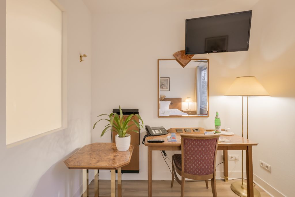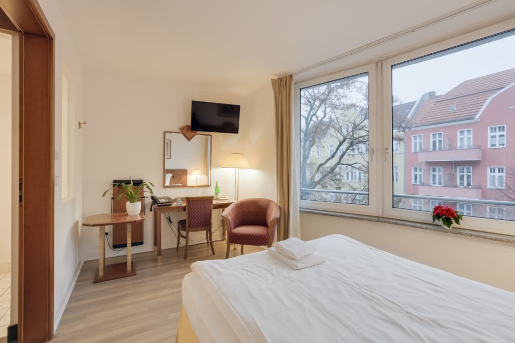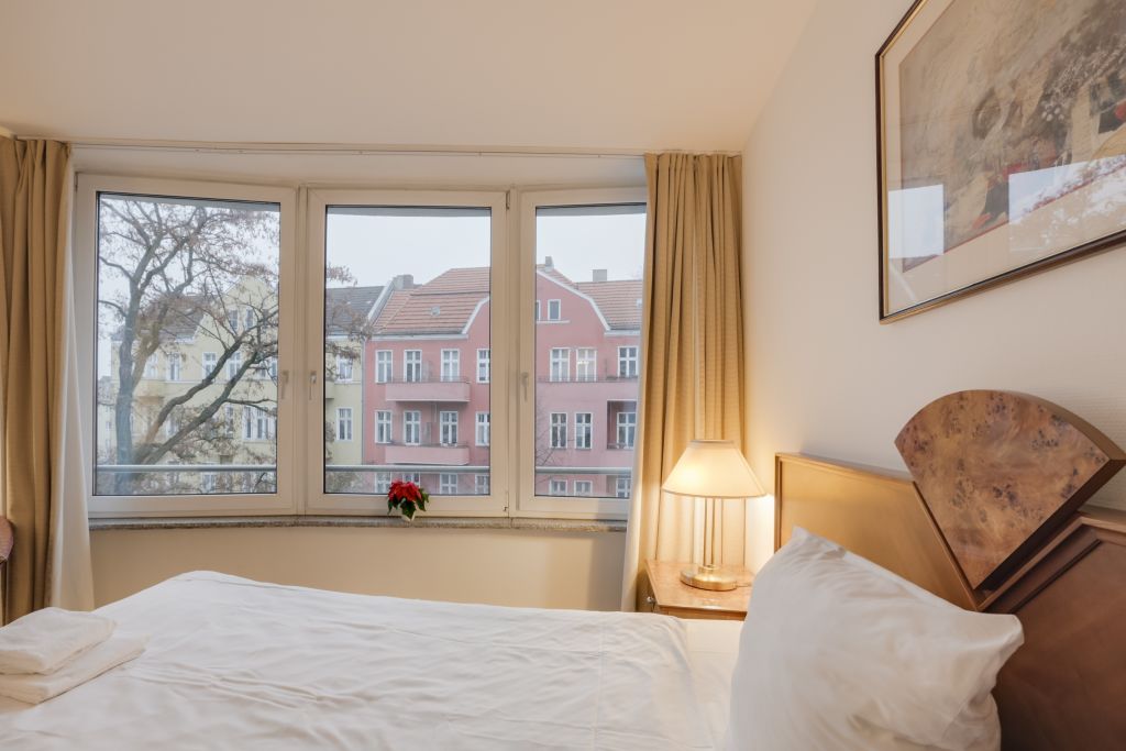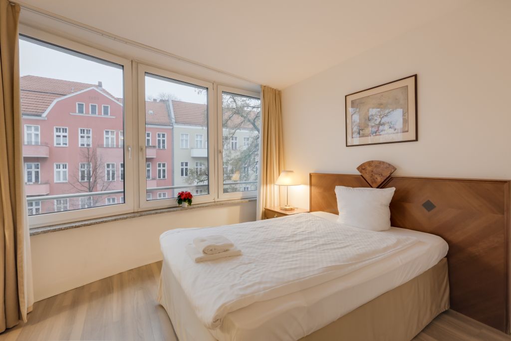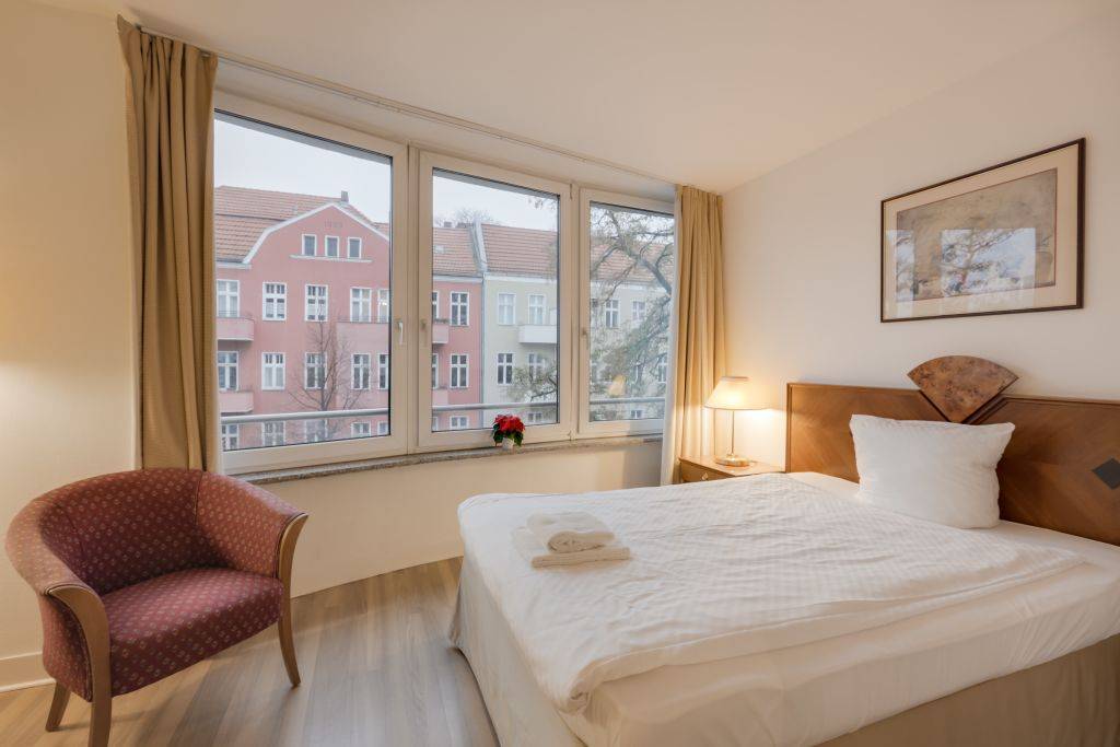 The apartment offers our tenants a quiet retreat. It has a small entrance, a modern bathroom and a small separate kitchen, which is equipped with the necessary utensils for a pleasant stay.This apartment is special. It has the same features as the cozy standard apartment, with the advantage that it offers more space to relax and work. It is equipped with (as you wish) a single or double bed, bedside tables and lamp, desk and chair, armchair, shelf, built-in wardrobe and TV.Feel at home in the bedroom. The high-quality wooden furniture creates a cozy and pleasant homely atmosphere. The apartment has a modern heating system embedded in the floor and free Wi-Fi. In the basement there is a laundry room, which can be used by all parties. Additional services such as A room cleaning or laundry service can be booked for a surcharge. The apartment can be easily reached via the staircase or the elevator.The apartment has large windows making it bright and spacious.Notice: Displayed prices and data are not final, and should be used for informative purpose only. They are not contractual or binding. Energy pass Energy pass not available, yet / In application process