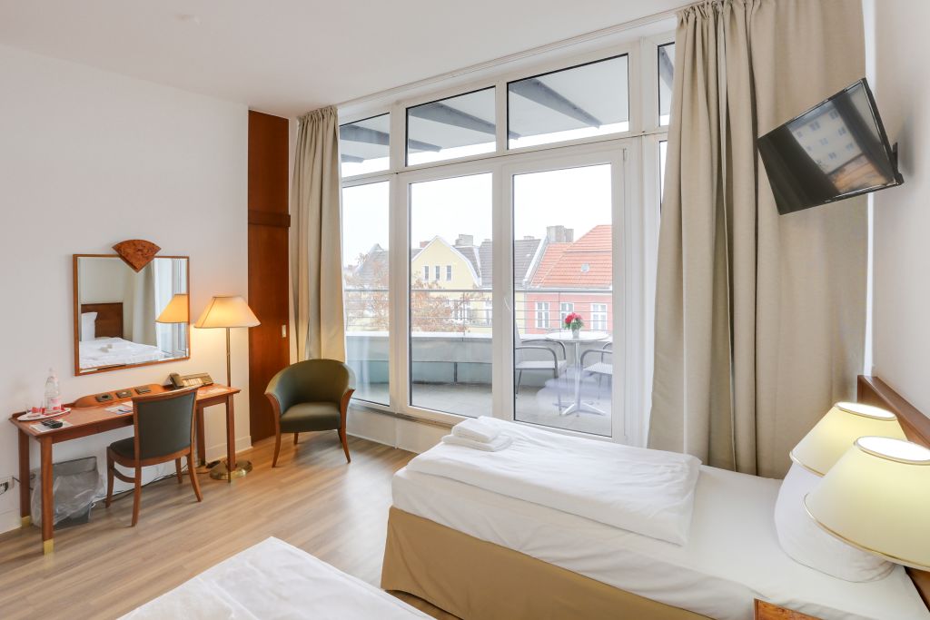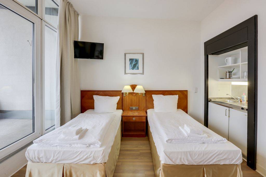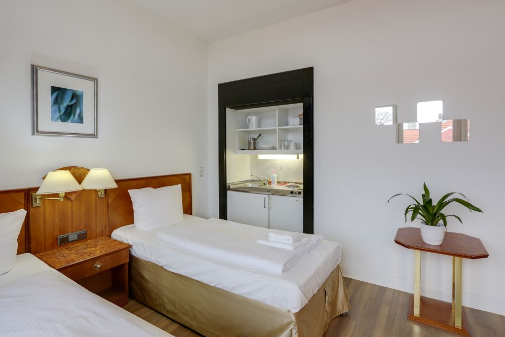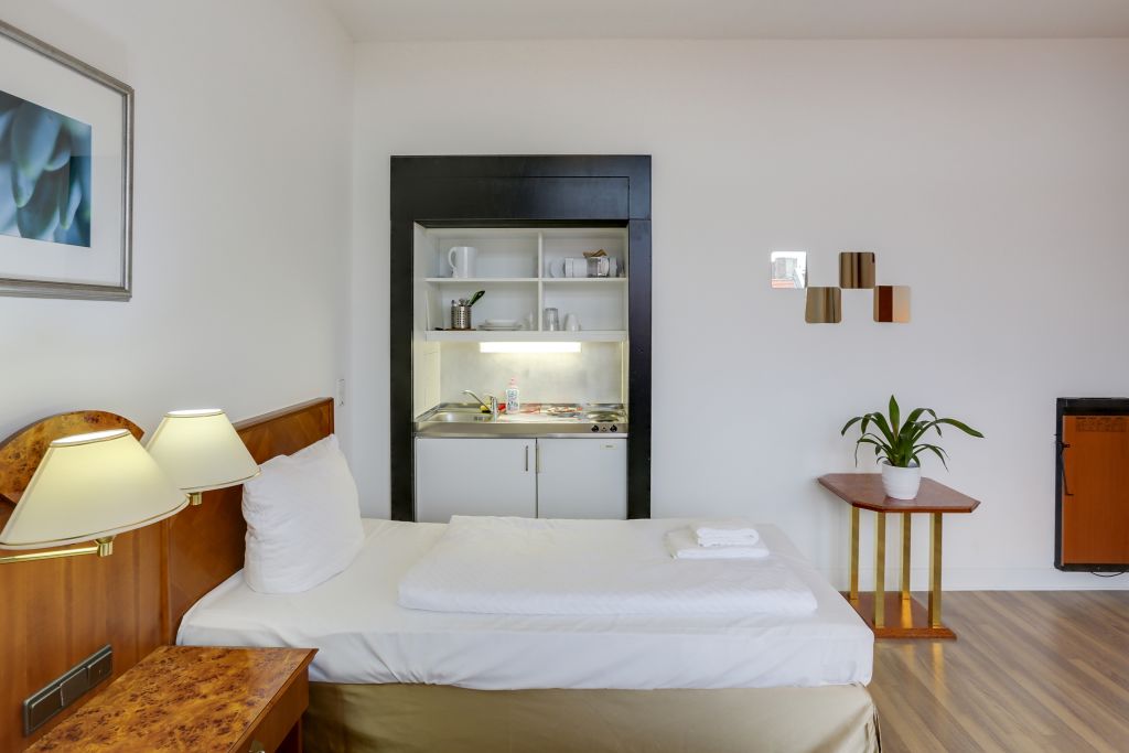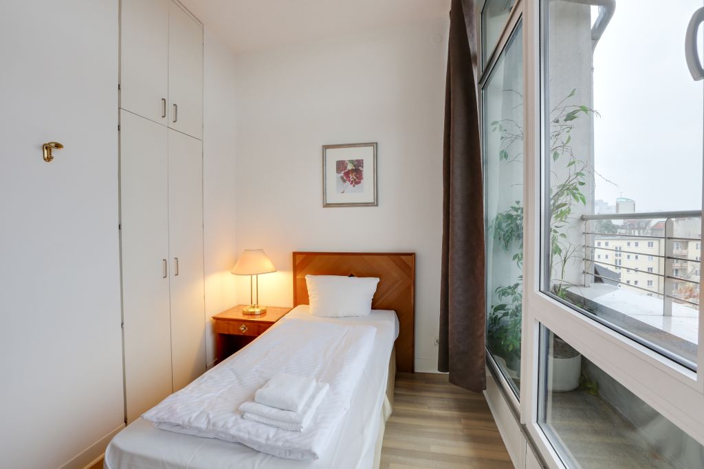 This apartment will make your stay unforgettable. It is perfect for a family vacation in Berlin. Enjoy the beautiful view over the city from the 6th floor of the Elegant Apartotel. The apartment also has two bedrooms, ample storage space and a private balcony.In addition, the apartment is equipped with (as desired) a single or double bed, bedside tables and lamp, desk and chair, armchair, shelf, built-in wardrobe and TV.Feel at home in the bedroom. The high-quality wooden furniture creates a cozy and pleasant homely atmosphere. The apartment has a modern heating system embedded in the floor and free Wi-Fi. In the basement there is a laundry room, which can be used by all parties. Additional services such as A room cleaning or laundry service can be booked for a surcharge. The apartment can be easily reached via the staircase or the elevator.On the ground floor is a nice cafe, where you can sit and have breakfast. In addition, there is also something for the dog during the lunch break. Everything also to take awayNotice: Displayed prices and data are not final, and should be used for informative purpose only. They are not contractual or binding. Energy pass Energy pass not available, yet / In application process