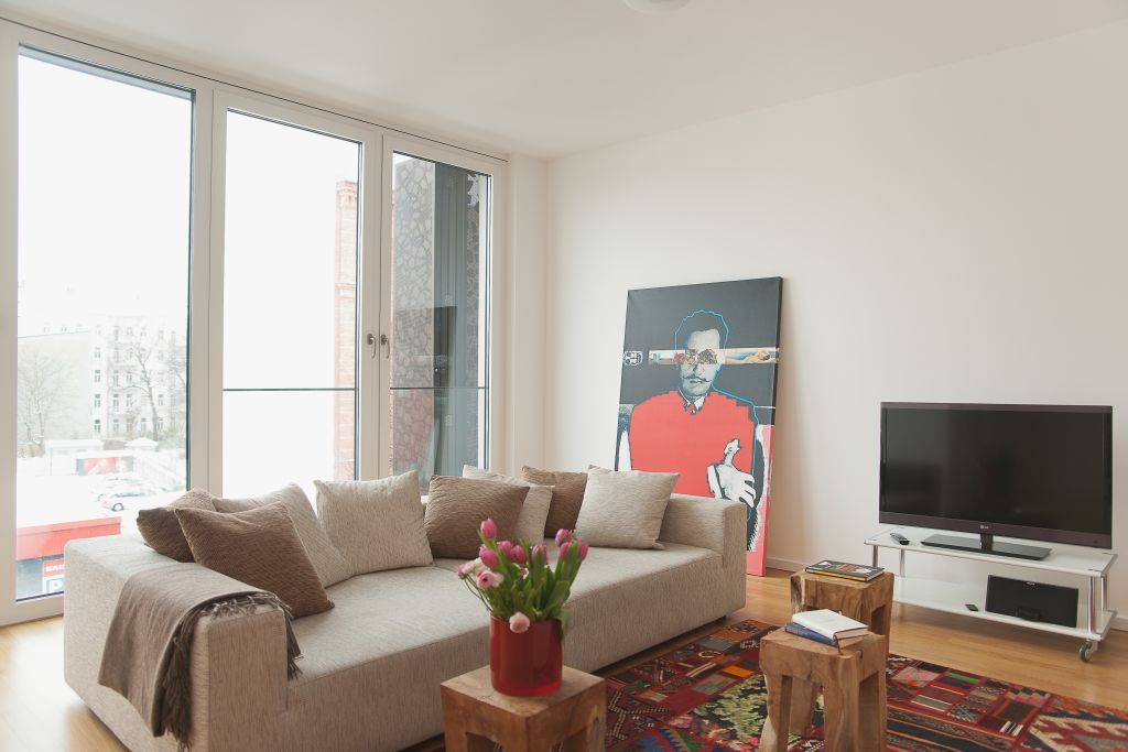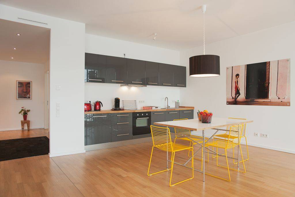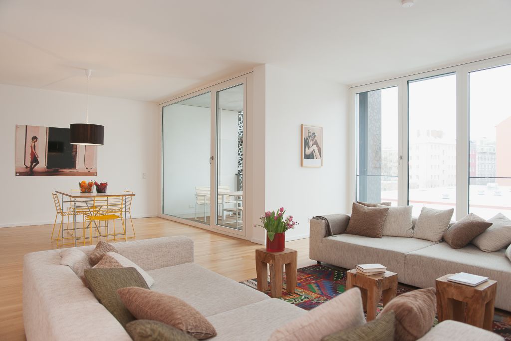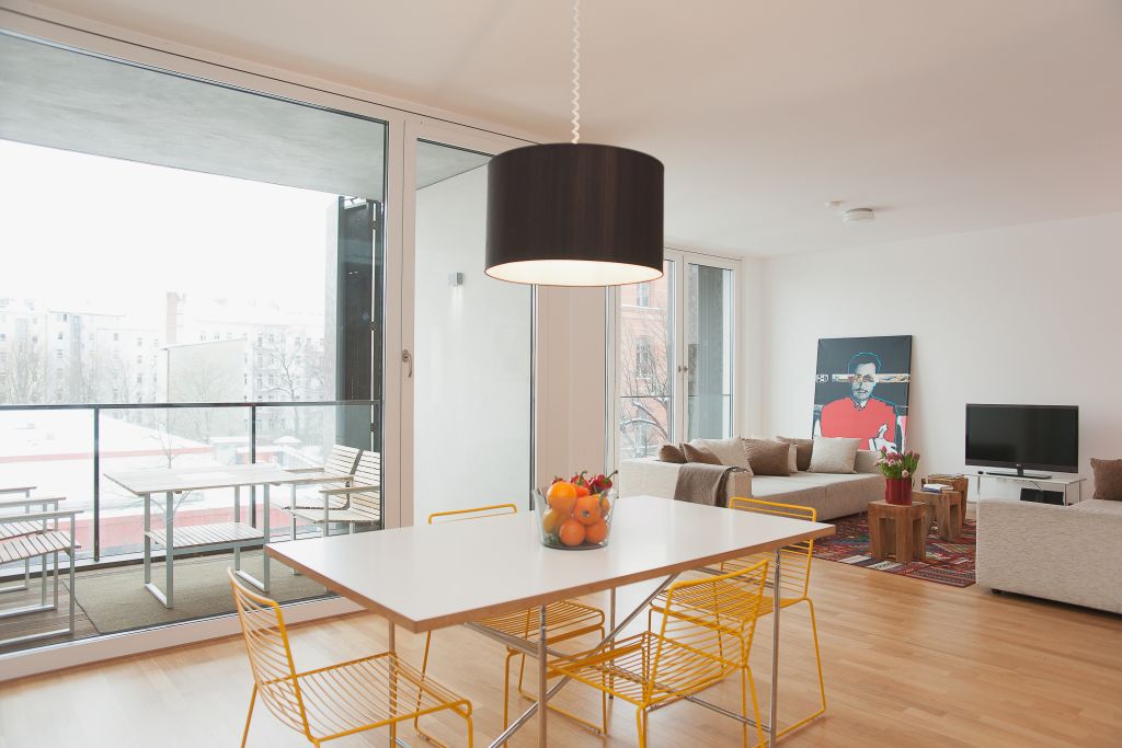This spacious, bright 3-room apartment offers the discerning tenanteverything to immediately feel at home in Berlin.The spacious living-dining area alone has 50 square meters of living space. The west-facing glazed windows offer you a view of the area around the neighborhood. The windows as well as the loggia can be completely darkened with stylish slats that are attached to the exterior of the house.The equipment of the open kitchen to the living-dining area leaves nothing to be desired.The living area is equipped, among other things, with two comfortable sofa beds, each with a bed area of 120 cm. There is space for up to 6 people at the dining table.Two high-quality bathrooms, one with a shower, one with a bathtub, and two bedrooms, one with a 140×200 double bed, the second with a 160x200large double bed.Extras: W-LAN included.Energy certificate is available:Energy certificate type: Requirement certificateFrom May 1, 2014 (EnEV2014)44 kWhEnergy efficiency class AHeating: Central HeatingYear of construction 2010Notice: Displayed prices and data are not final, and should be used for informative purpose only. They are not contractual or binding. Energy pass Energy pass not available, yet / In application process