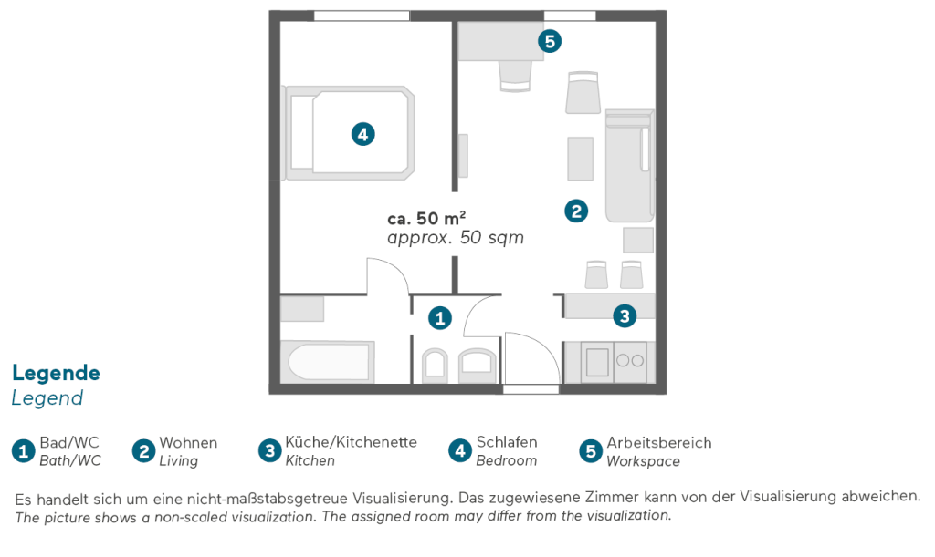 Come to stay for a long time: our cozy two-room apartments with equipped bar-kitchen and spacious living, dining, working and sleeping areas including free high-speed WiFi offer plenty of space and are located directly in Berlin-Mitte on the Spree. Whether solo or as a couple, whether for business or a second home, whether for 3 weeks or 6 months, living with benefits & hygiene is part of the program about 55 sqm two-room apartment+ Fully equipped bar kitchen: stove, microwave, refrigerator and extensive basic kitchen equipment: pots, dishes, cutlery, pasta strainer, kettle, washing-up liquid, etc.+ Interconnected rooms with their own sleeping, working and living areas+ Ideal home office equipment with free high-speed WiFi and generous equipment with sockets, hubs, etc.+ Opaque blackout curtains+ Flat screen TV+ Double bed (2 x 1.00 x 2.10 m)+ Safety comes first: the Living Hotel Großer Kurfürst implements a smart hygiene and safety concept for all guests and residents in the apartments and public areasThe city of Berlin levies an additional accommodation tax of 5% (except for documented business stays), which must be paid on site.Notice: Displayed prices and data are not final, and should be used for informative purpose only. They are not contractual or binding. Energy pass This building is not subject to EnEV.