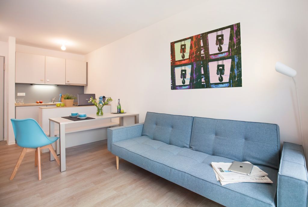 Our boarding house Spreepolis offers everything to make you promptly feel at home.A spacious residential design. Individual, flexible and easy. With sophisticated amenities. Digital Bose sound system. And of course, a high-quality bathroom and fully equipped kitchen. All that in an inspiring environment. Includes a lot of comfort as a queen size bed separated from living area In our Boardinghouse Spreepolis we offer many extras: a gym, bicycles that can be rented free of charge and a concierge service that will help you with your requests and concerns. A regular cleaning service is further included in the rent, which will leave you more time to enjoy the beautiful things in Berlin. Also, there is a garage where you can safely park your car, and a rooftop where you can enjoy your beer with the prettiest view of River Spree.WiFi is available in the whole building, i.e. in your apartment, the gym and the house’s café. It is called Kranbar and here you can enjoy a delicious breakfast and lunch. At the same time the common area, as well as the “grill and chill” backyard offers a great platform to meet same minded people with whom you can explore the city.Notice: Displayed prices and data are not final, and should be used for informative purpose only. They are not contractual or binding. Energy pass This building is not subject to EnEV.