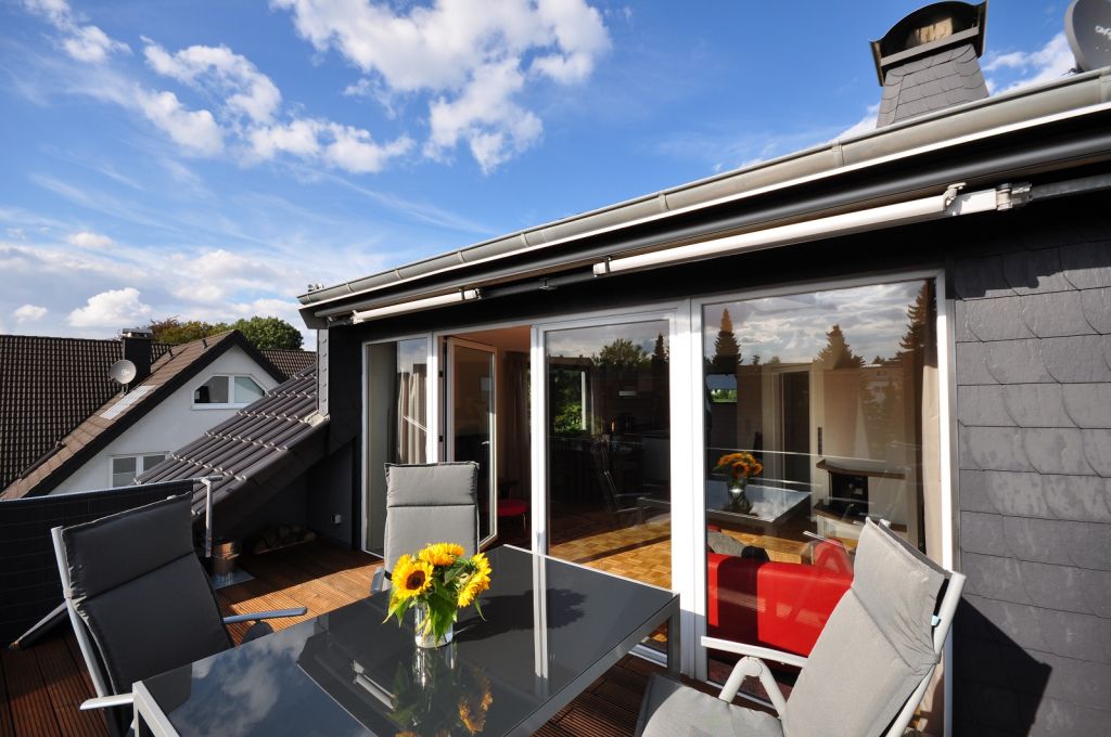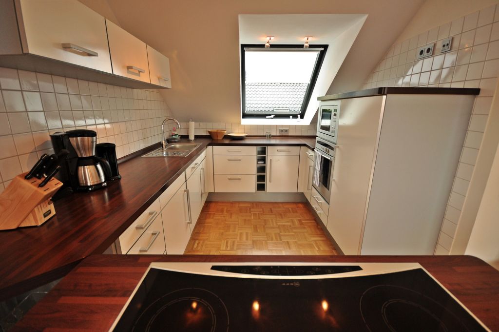 The spacious, representative and comfortably furnished 3-room non-smoking apartment on the 2nd floor (attic) offers you an appealing and friendly living atmosphere for 1 to 6 people.The living area, which is open to the gable, is equipped with a modern, comfortable leather seating group. The sofa offers you a bed for 2 people. The fireplace creates an exclusive, cozy atmosphere and the wide window front to the adjoining roof terrace creates a light living environment. There is plenty of seating available on the roof terrace. The living room has underfloor heating and oak parquet. The two bedrooms are furnished with large, comfortable double beds. Fitted wardrobes offer you sufficient storage space. The following devices are available: TV flat screen (satellite connection), stereo system. The modern built-in kitchen with island is fully equipped with dishwasher, ceramic hob, oven, refrigerator, coffee machine, kettle, electric grill, etc. The chic bathroom has a bath, shower and hairdryer.Pets are allowed on request and for a fee.Notice: Displayed prices and data are not final, and should be used for informative purpose only. They are not contractual or binding. Energy pass Energy pass not available, yet / In application process