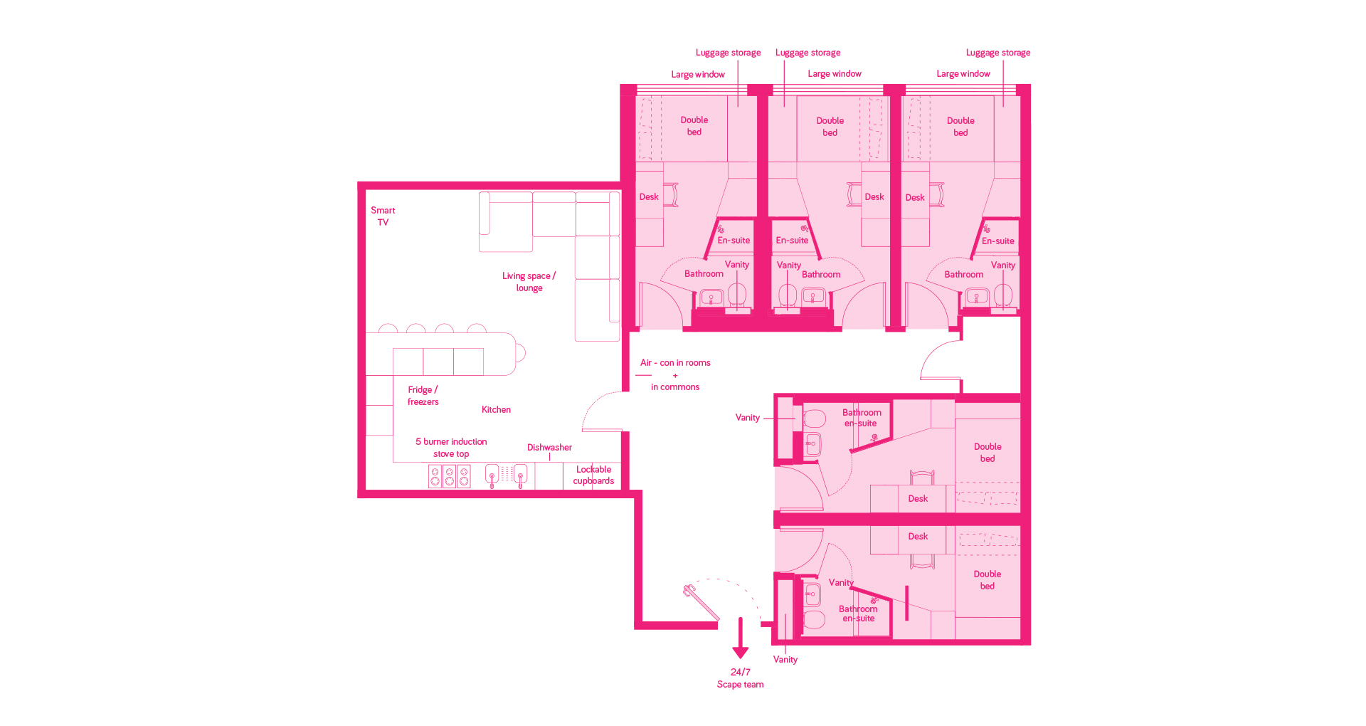 Students can pick from fully furnished and spacious flats. Scape South Bank is divided into different room types such as en-suite rooms, studios, private apartments, and much more. To increase comfort, this accommodation also has around the clock staffing with top-notch amenities.