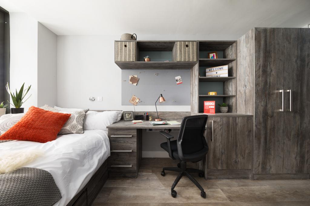 It offers modern en-suite rooms in shared apartment and studio categories. Each accommodation is stacked with a range of amenities, making students feel at home. These amenities include free wifi, kitchenette, study area, wardrobe, lounge area, gaming room, community area, and so much more. The accommodation is curated with expertise for a comfortable and economical stay.
