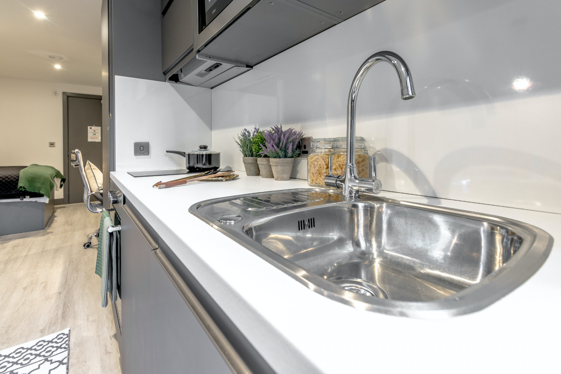 Very large self-contained studio comes a fully fitted kitchenette, stylish en-suite bathroom, and ample storage. Each studio boasts a three quarter bed, large study desk and chair, and a modern kitchenette. You will also have residents only access to the private cinema room, gaming lounge, private hire dining room, fully equipped fitness suite, panoramic landscaped roof terrace as well as contemporary lounges.