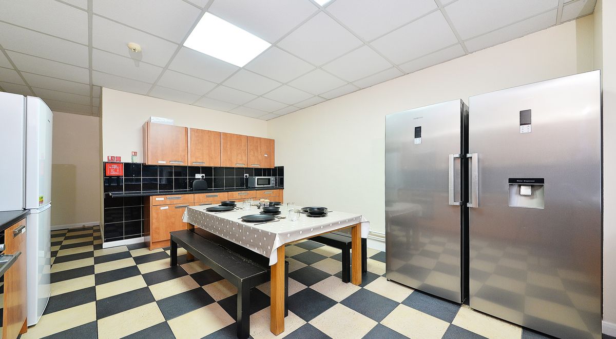 This property comes with a community kitchen, a dining area, an electric oven, a fridge freezer, and a microwave. The new laundry facility is on the ground level, along with additional social spaces such as a pool table and a room with a huge cinema screen and seating area. Residents have limited parking spaces accessible at the main entrance, which are offered on a first-come, first-served basis.