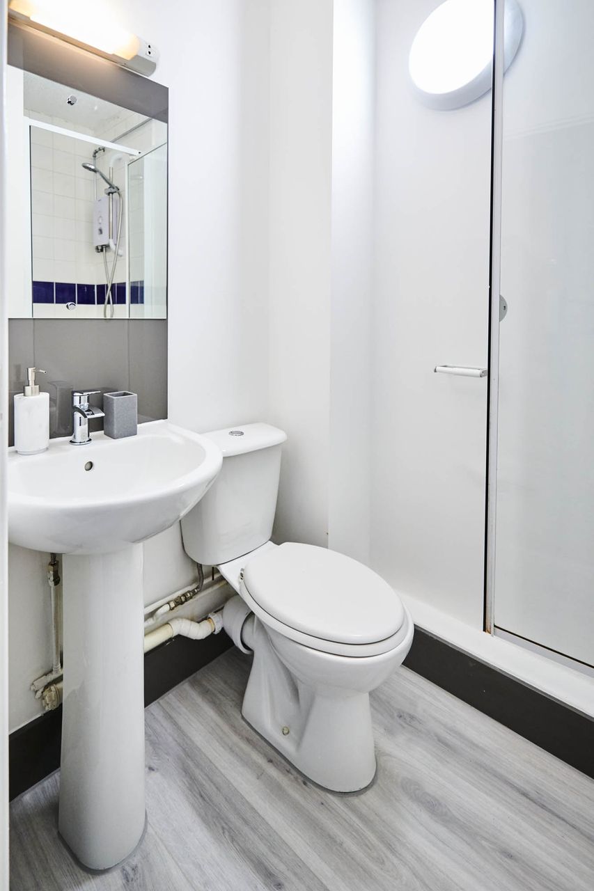 Slightly spacious than Bronze En-suite, Silver En-suite includes Communal kitchen and living space with up to 7 ensuite rooms per flat, small double bed and Underbed storage, wardrobe, personal study space with desk and chair too!