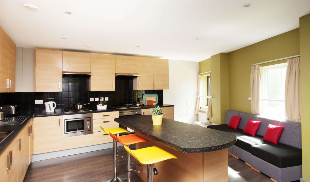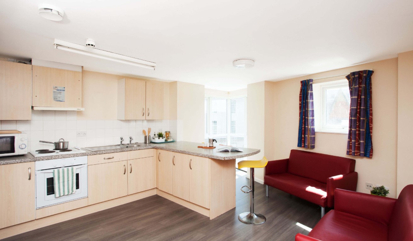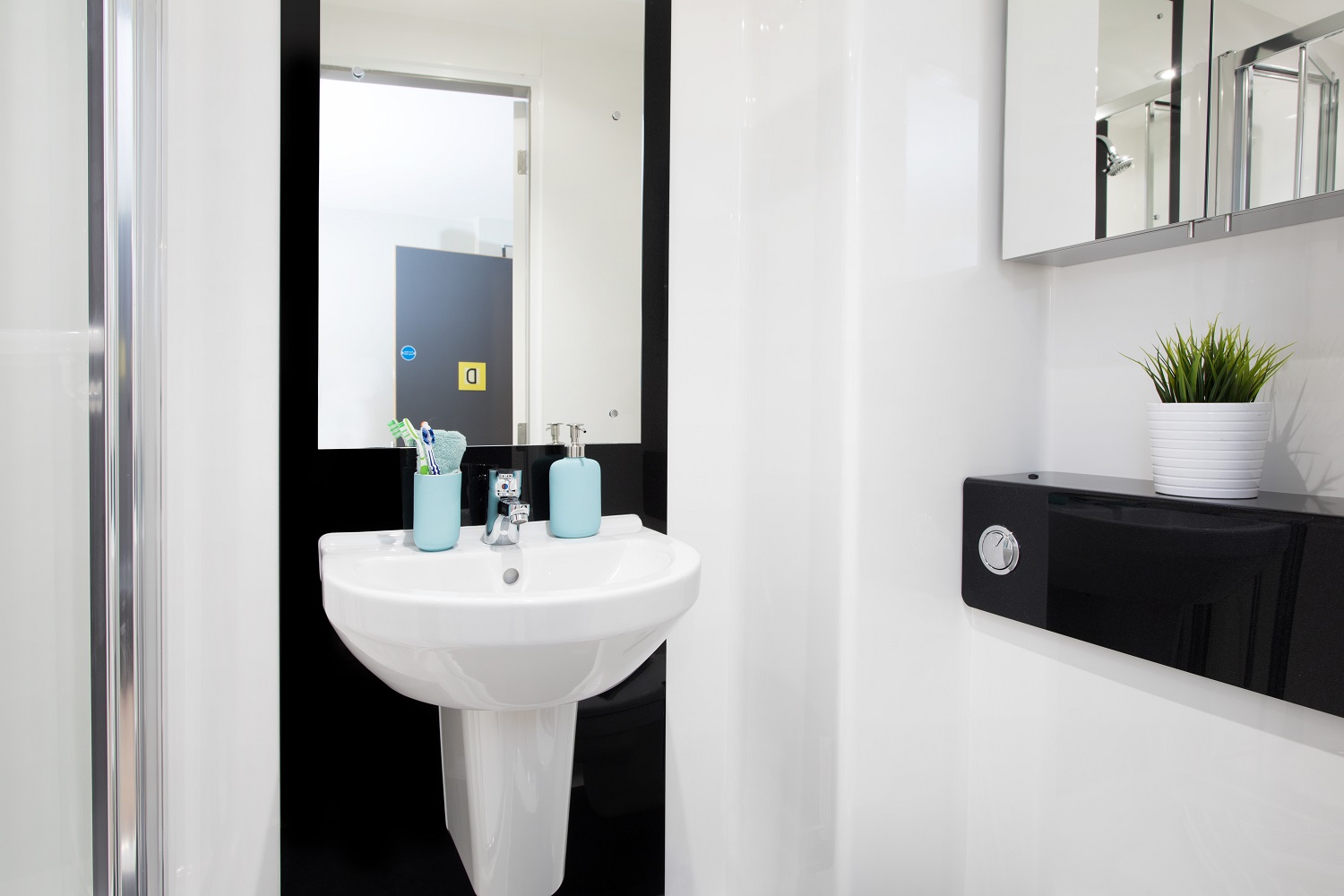 Feel at home in your en-suite room, which has a private shower room with sink and toilet, a comfortable bed and a large Wi-Fi connected study area. As well as a wardrobe, you'll find storage space under your bed and shelves and drawers to store your belongings. Your shared fitted kitchen and living area is an ideal space to relax with your flatmates.