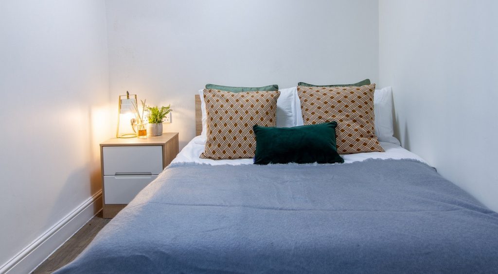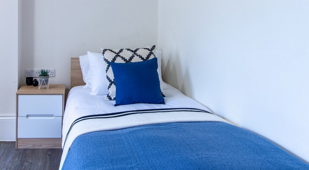 The Silver Room measures around 9-12m² and offers a comfortable private bedroom with a 3/4 size bed and all our usual bedroom furniture. Your separate bathroom is shared with a couple of your current or future friends, and your shared kitchen is also perfect to hang out and enjoy a tasty meal.