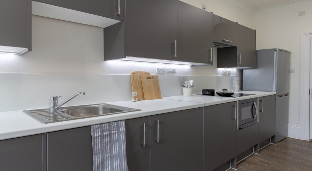 The Silver Ensuite Room measures around 11-12m² and is an intimate and private space to relax or study. Each room comes with a ¾ size bed and our usual bedroom furniture and its own modern en-suite bathroom. Your kitchen will be shared with 1 or 2 other residents, depending on which room you choose. Perfect for those who want their own private space, but still enjoy a comfortable social environment.