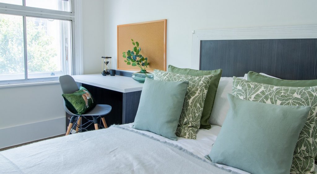 Your Premium Twin Studio is a shared studio with two 3/4 sized beds or two double beds in a large, comfortable bedroom. The studio has an ensuite bathroom and kitchenette within the room with study desks and plenty of storage.