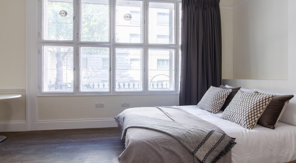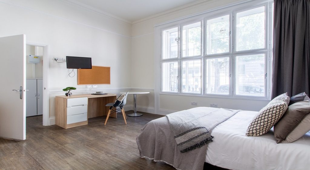 Janet Poole House student accommodation is often described as one of the most prestigious and desirable locations in London, with good reason. Located in one of the capital’s most elegant streets, this leafy idyll is the perfect residence for university students who require fashionable accommodation and living right in the heart of the city. The area houses several universities, including University College London, Imperial College London, University of Westminster, University of London, SOAS (School of African and Oriental Studies), among many others!Janet Poole House features contemporary student accommodation to meet all tastes. Looking for your own private kitchen and bathroom? Our stunning studios offer the perfect solution. Each of our room types range from triple/twin rooms to deluxe single studios, designed with you in mind. Each room has a television, and all kitchens are extensively equipped with a fridge/freezer, sink, microwave, cooker/extractor fan, dining table and chairs. Every room in the elegant Georgian townhouse features air conditioning and offers a tastefully decorated, comfortable place to relax after a hard day of lectures. There is also up to 100Mbps WiFi available throughout the building, allowing you to shop online or research your latest essay.You can relax with friends in the comfy and cosy Bloomsbury Snug room, where you can catch a classic movie while nestling on one of the sumptuous bean bags. On fine days take in the atmosphere and socialise in the courtyard with a barbecue.To ensure you’re comfortable and enjoy the facilities and the huge variety of activities the area has to offer, Janet Poole House student accommodation has its own helpful on-site hospitality team and a 24-hour helpline available, so you can always report any issues at any time.