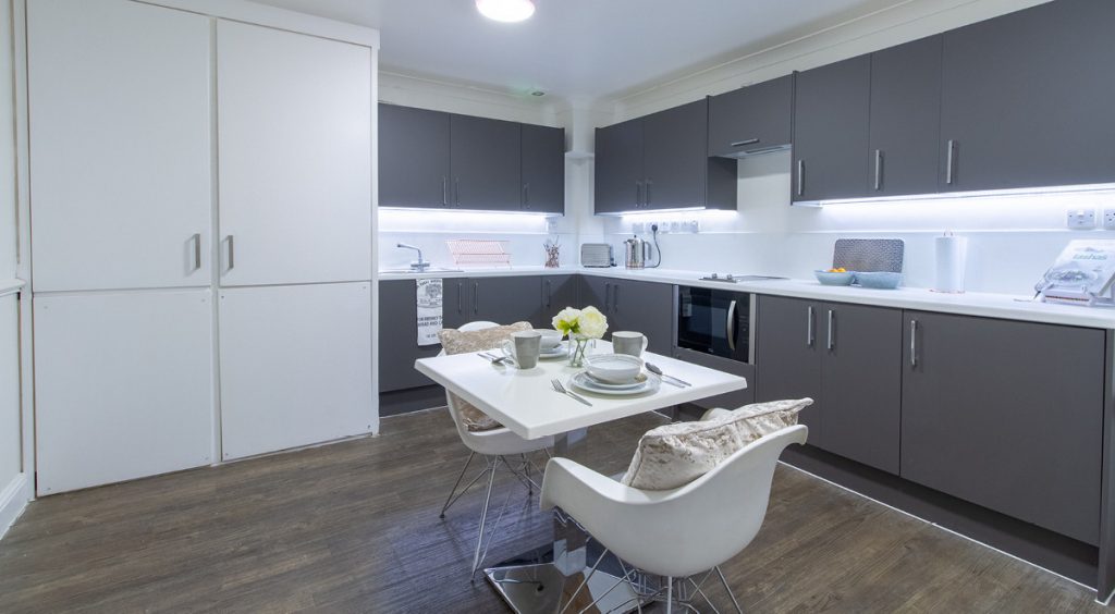The Deluxe Apartment is the largest room in the building measuring 52m², with two double beds in a large bedroom. The apartment is fitted out with contemporary furniture and with a large private kitchen with integrated appliances and a modern ensuite bathroom, the apartment is the height of luxurious student living. With unlimited 100Mbps wifi and newly refurbished common areas, outdoor courtyard, comfortable snug and on site laundry. Subject to availability, the Deluxe Apartment is also available as a Deluxe Twin Apartment.