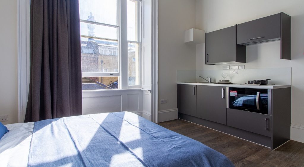 The popular Bloomsbury Studio is a really spacious self-contained studio measuring 18-20m², that comes with everything you need for a comfortable place to call home. This studio comes complete with a modern kitchenette and en-suite bathroom.