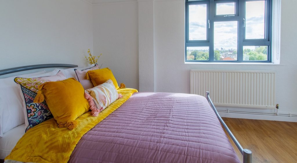 Ever fancied your own private balcony? Keep reading! Our standard 5 bed shared flat has everything you need to create the perfect home away from home with your pals. With your very own private balcony, relax and soak up Insta-worthy views of London! Your room comes with a comfy ¾ bed and your very own desk & chair. The shared facilities consist of a snazzy kitchen area with a breakfast bar and TV, show room and toilet. Also included is 100Mbps WiFi throughout the building, perfect for a Netflix binge.