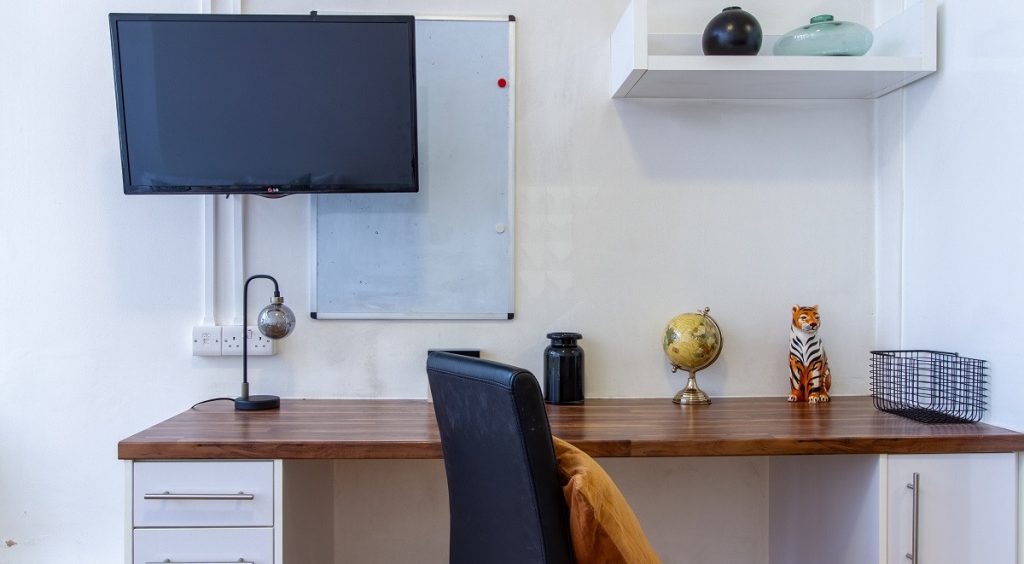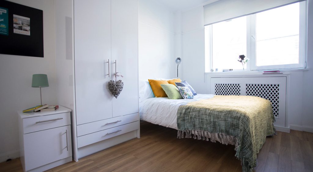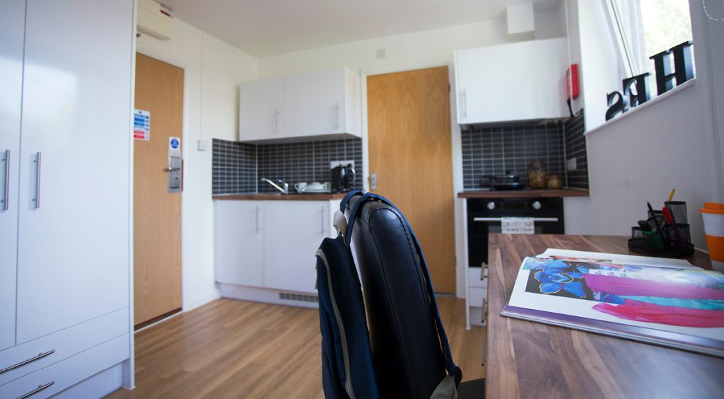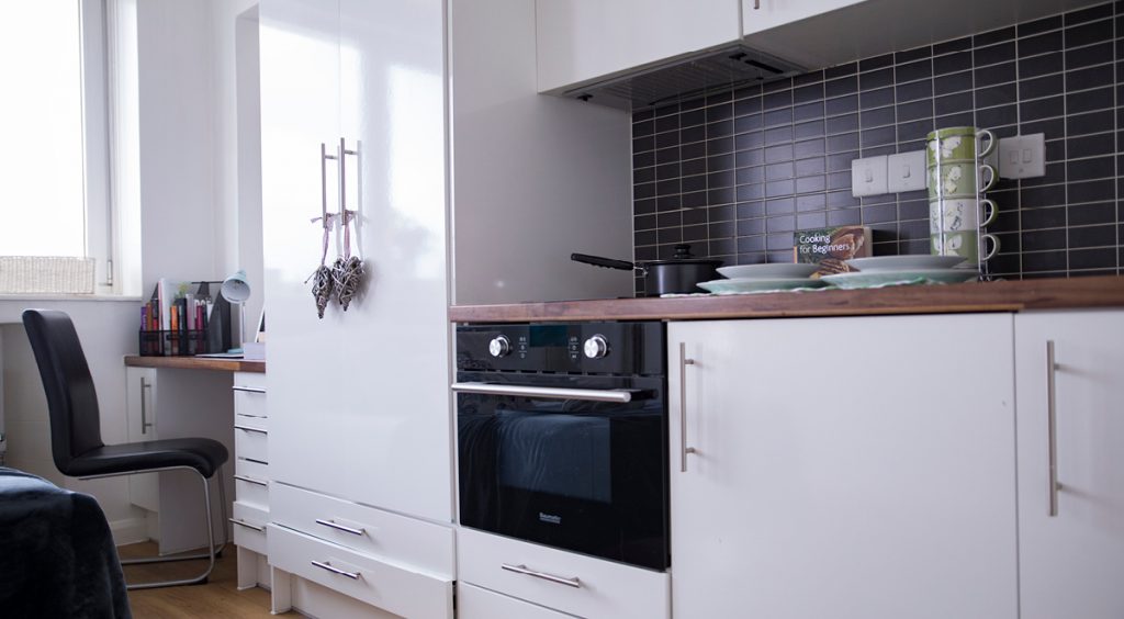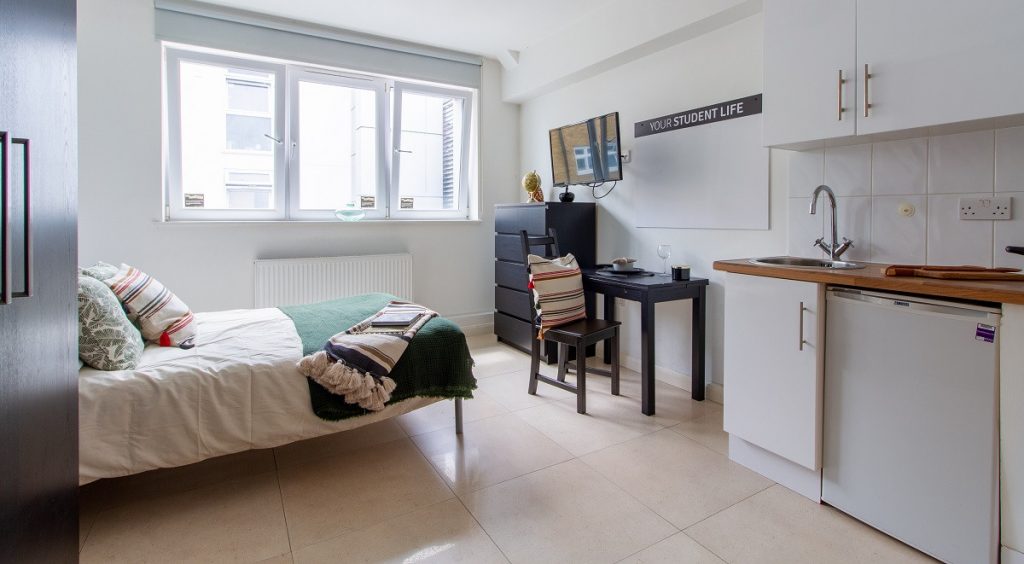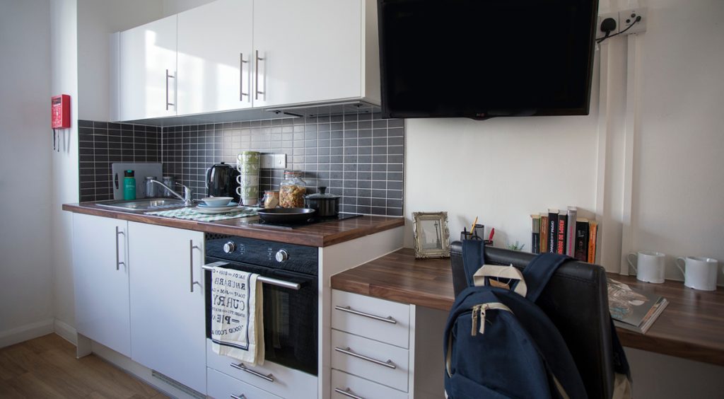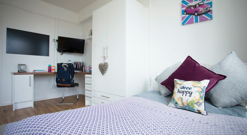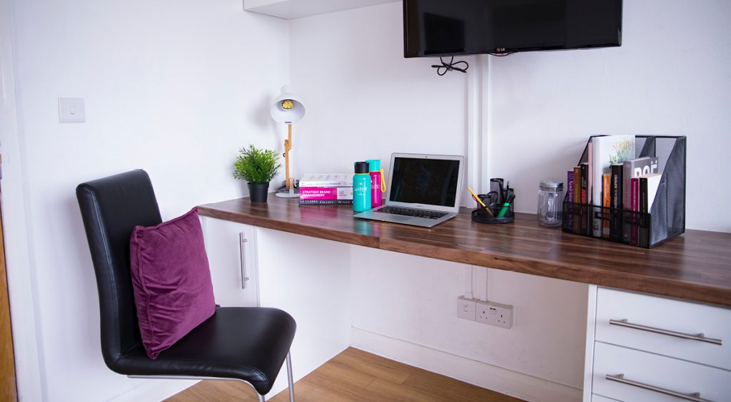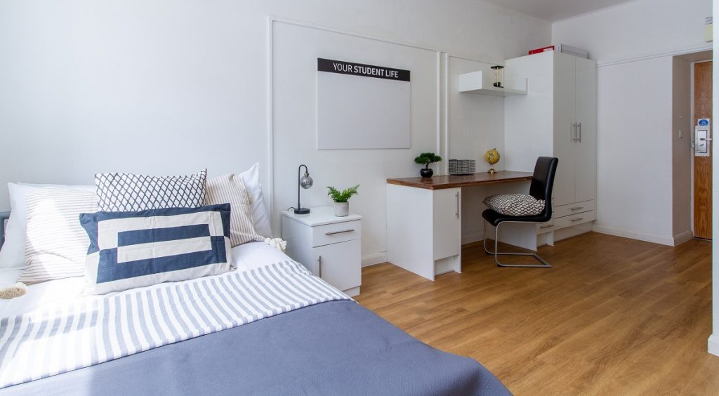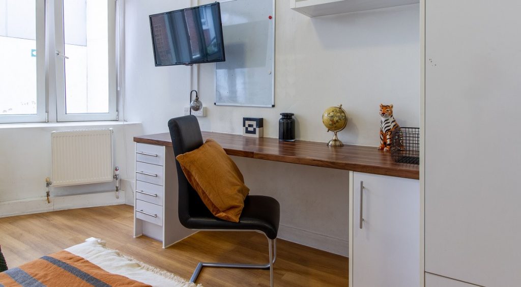 Everyone loves having their own personal space, so why not have bags of it? Our Self-contained Deluxe Studio measures 22m² with fabulously large windows to create that fresh, chilled vibe. Sink into your 3/4 bed after a tough day at university and catch the soaps on your very own TV! With the comfort of your own en suite and snazzy fitted kitchenette, you’re bound to feel right at home in no time! Surf the web with your 100Mpbs WIFI and crack on with your studying at your very own desk.