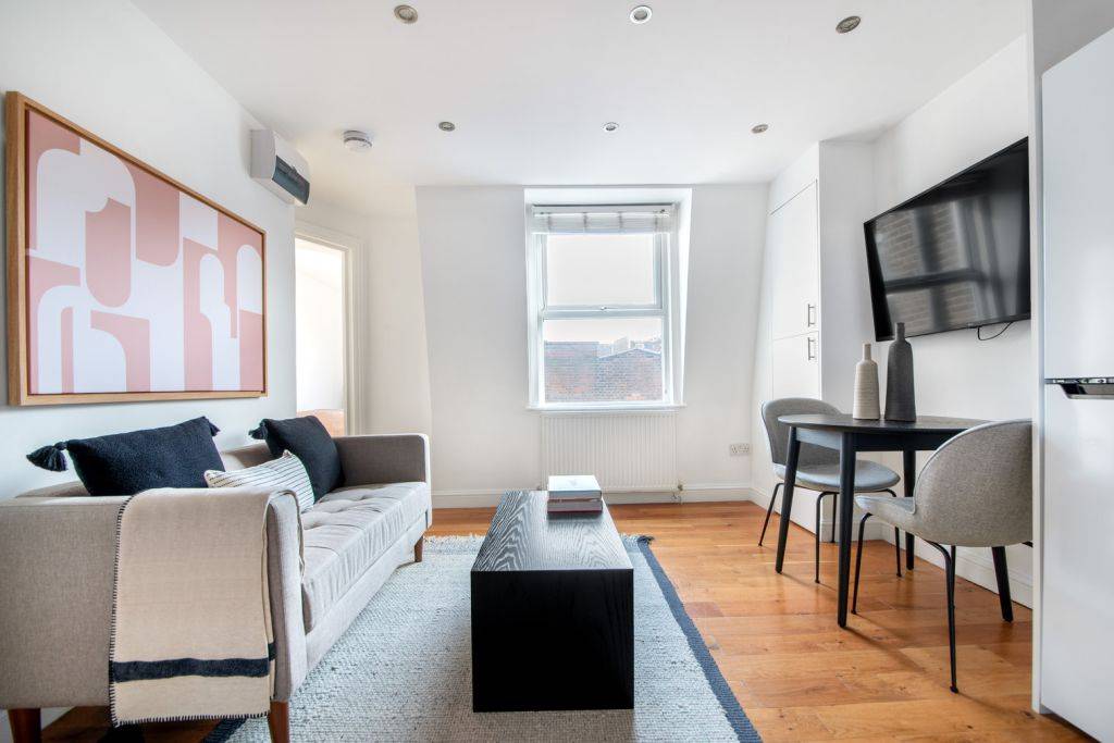 Feel at home wherever you choose to live. You’ll love this comfortable Bayswater furnished one-bedroom apartment with its modern decor, fully equipped kitchen, and stylish living room with great high floor views. Ideally located, you’re close to all the best that London has to offer!Thoughtfully designed with bespoke finishes, modern furnishings, and a fully-equipped kitchen, you’ll enjoy that “I’m home” feeling with this apartment. Whether you’re lounging in your sophisticated living room streaming the latest and greatest entertainment on the smart TV or premium wireless speaker, or getting some well-earned rest on the superior quality mattress with luxury linens, you’ll fall in love with everything this Bayswater apartment has to offer. This apartment also offers in-apartment laundry. Sleeping Arrangements Super King Bed, 180cm Amenities Building amenities unique to this one-bedroom include an on-site: – Pet FriendlyA few things to note:Building amenities may have an extra cost.Pets are welcome, though weight limits and breed restrictions apply and may incur fees.Notice: Displayed prices and data are not final, and should be used for informative purpose only. They are not contractual or binding. Energy pass This building is not subject to EnEV.