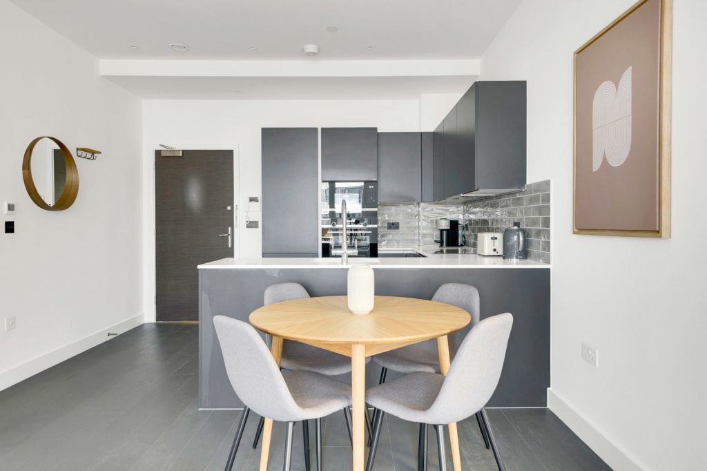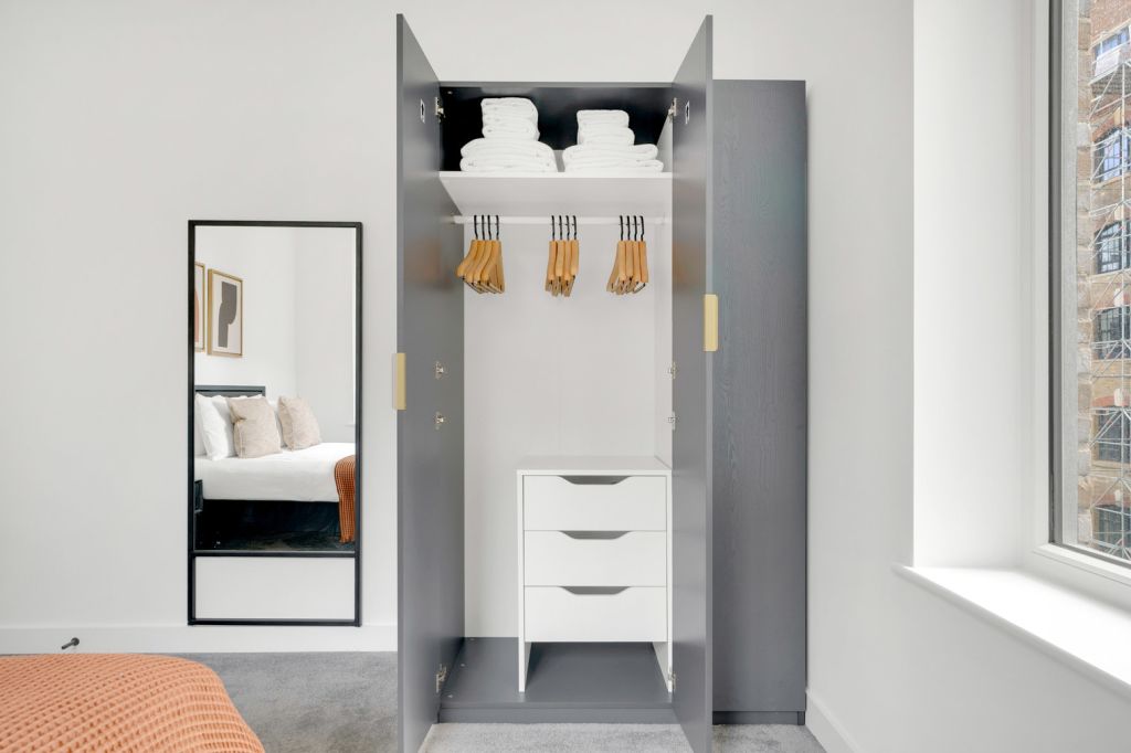 This furnished flat is located in Bermondsey, the stylish neighbourhood near London’s Tower Bridge. This fast-developing area is popular with newcomers to the city, thanks to the cute pubs and indie shops along Bermondsey Street. There is a wonderful dining scene in the neighbourhood, with everything from international fare to pub food to artisanal gelato, and several supermarkets for those who like to self cater. Maltby Street Market is a great place to sample gourmet street food or sip a craft cocktail outdoors. The neighbourhood is served by the London Underground’s Jubilee line, and Victoria Station is a short walk away.
