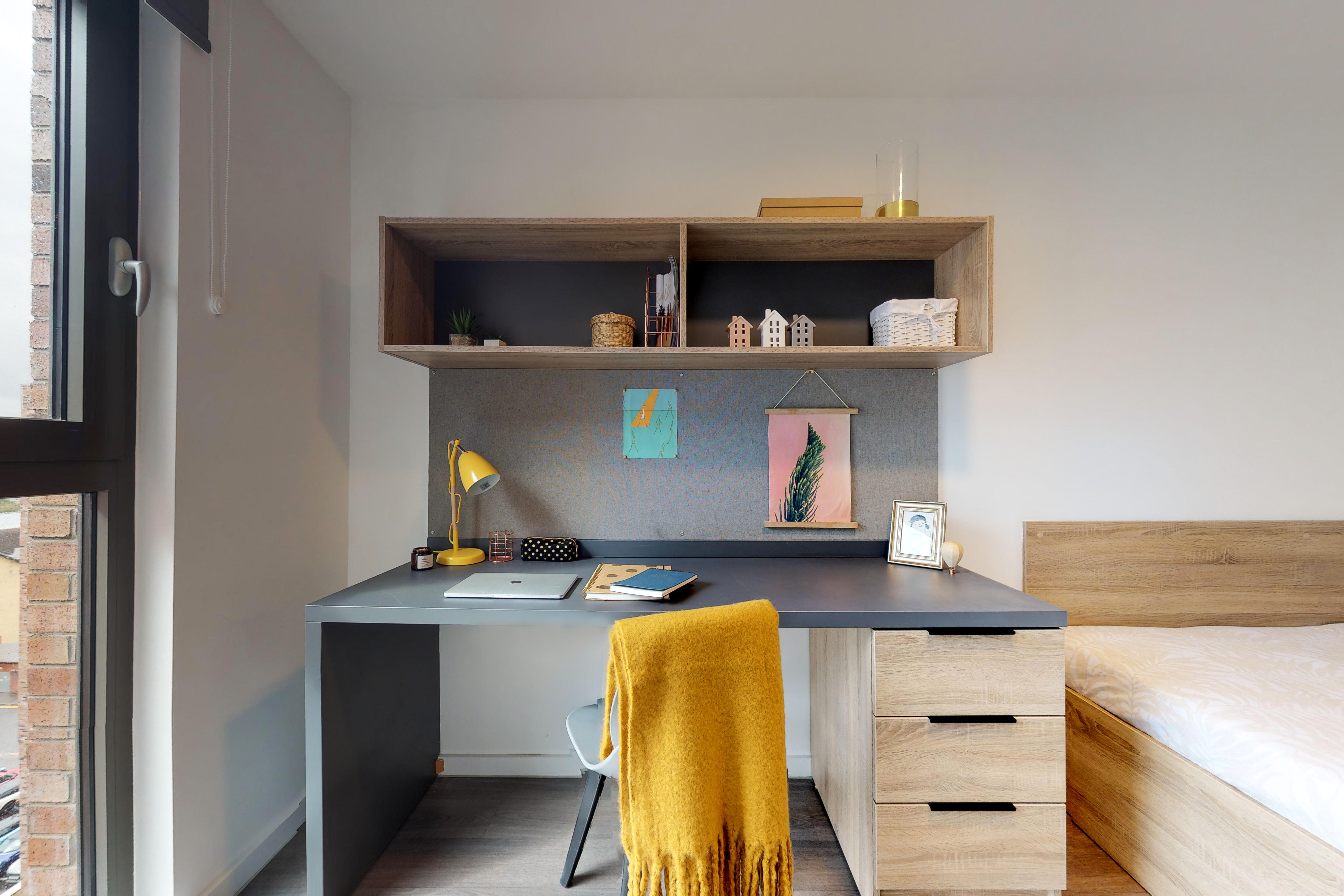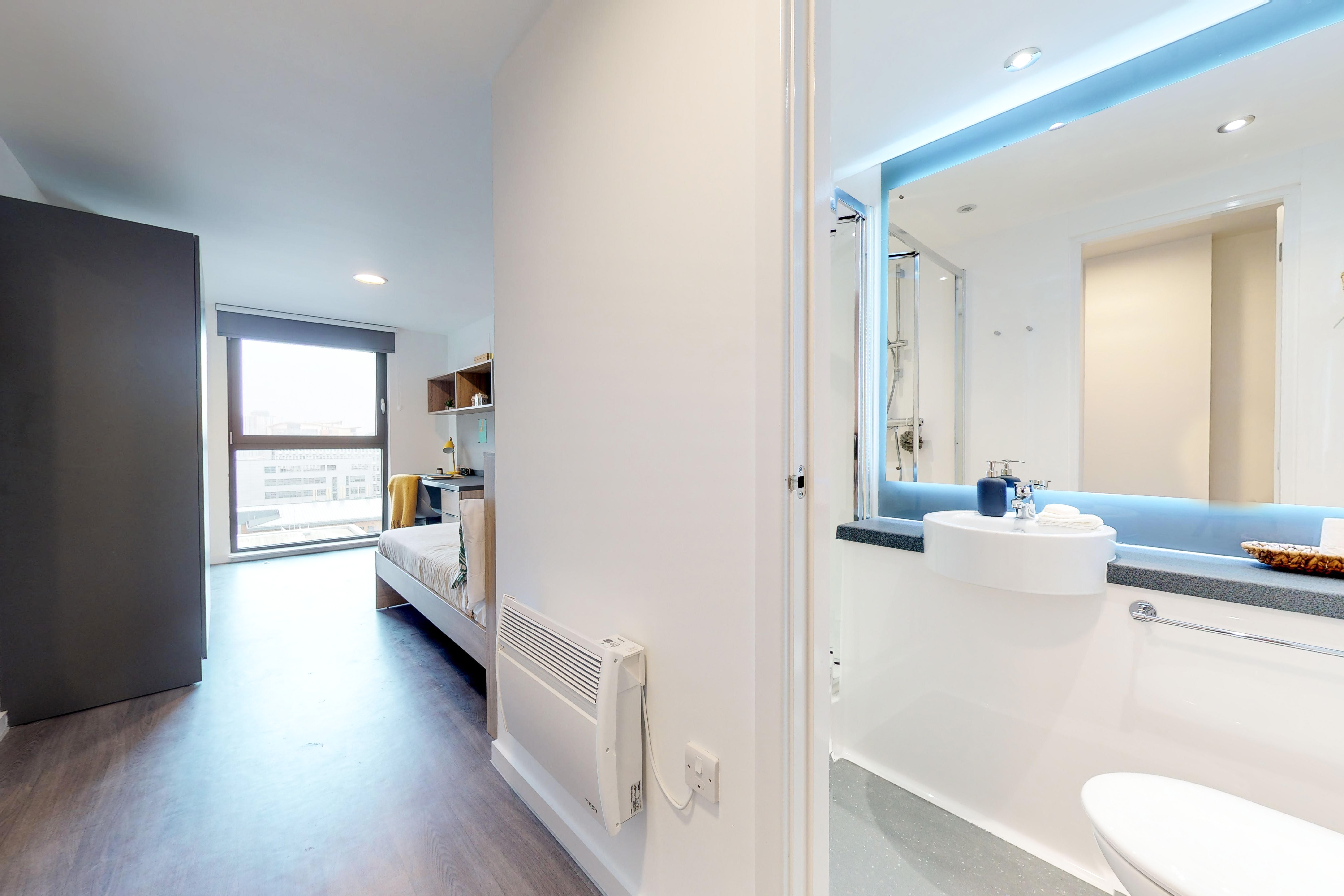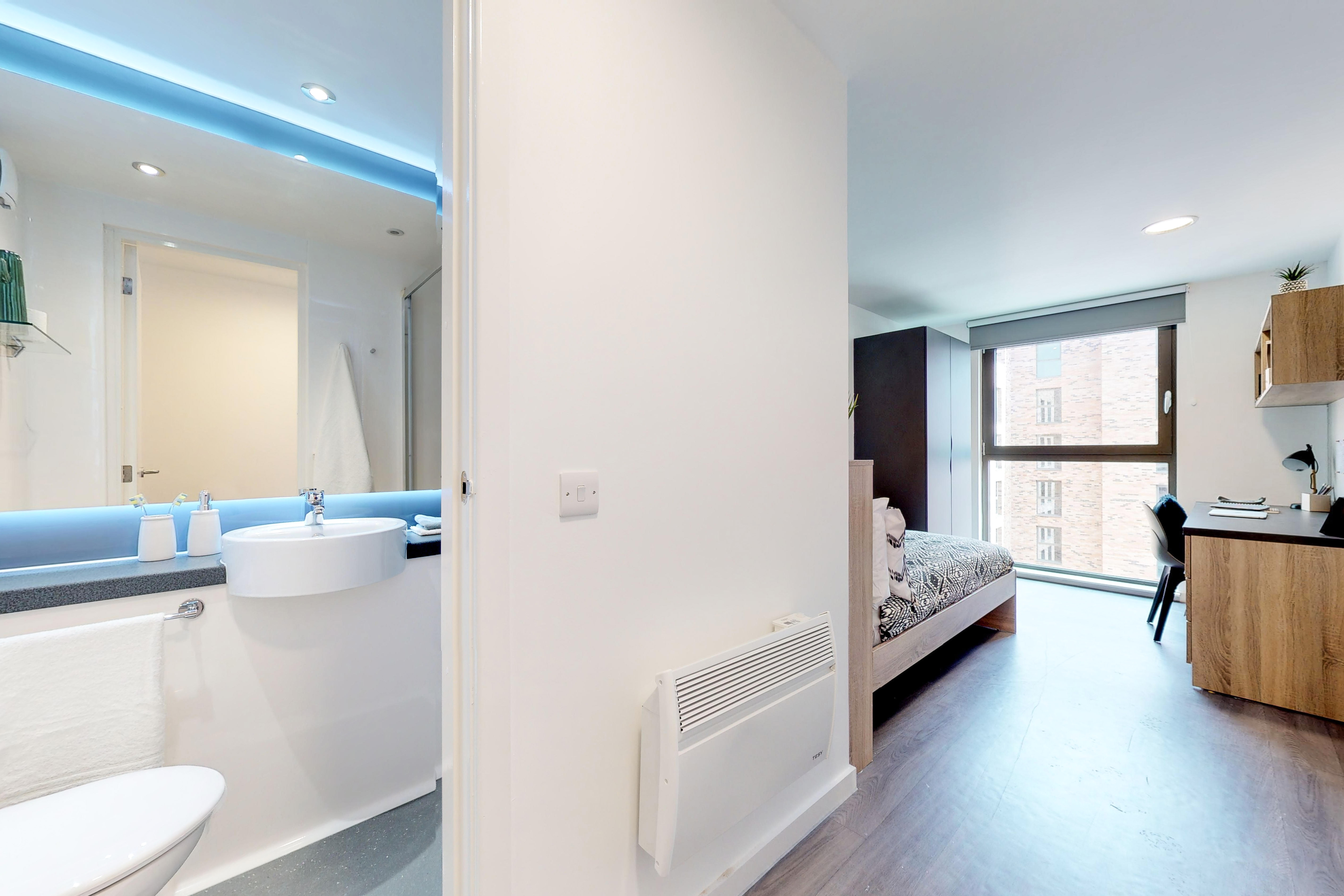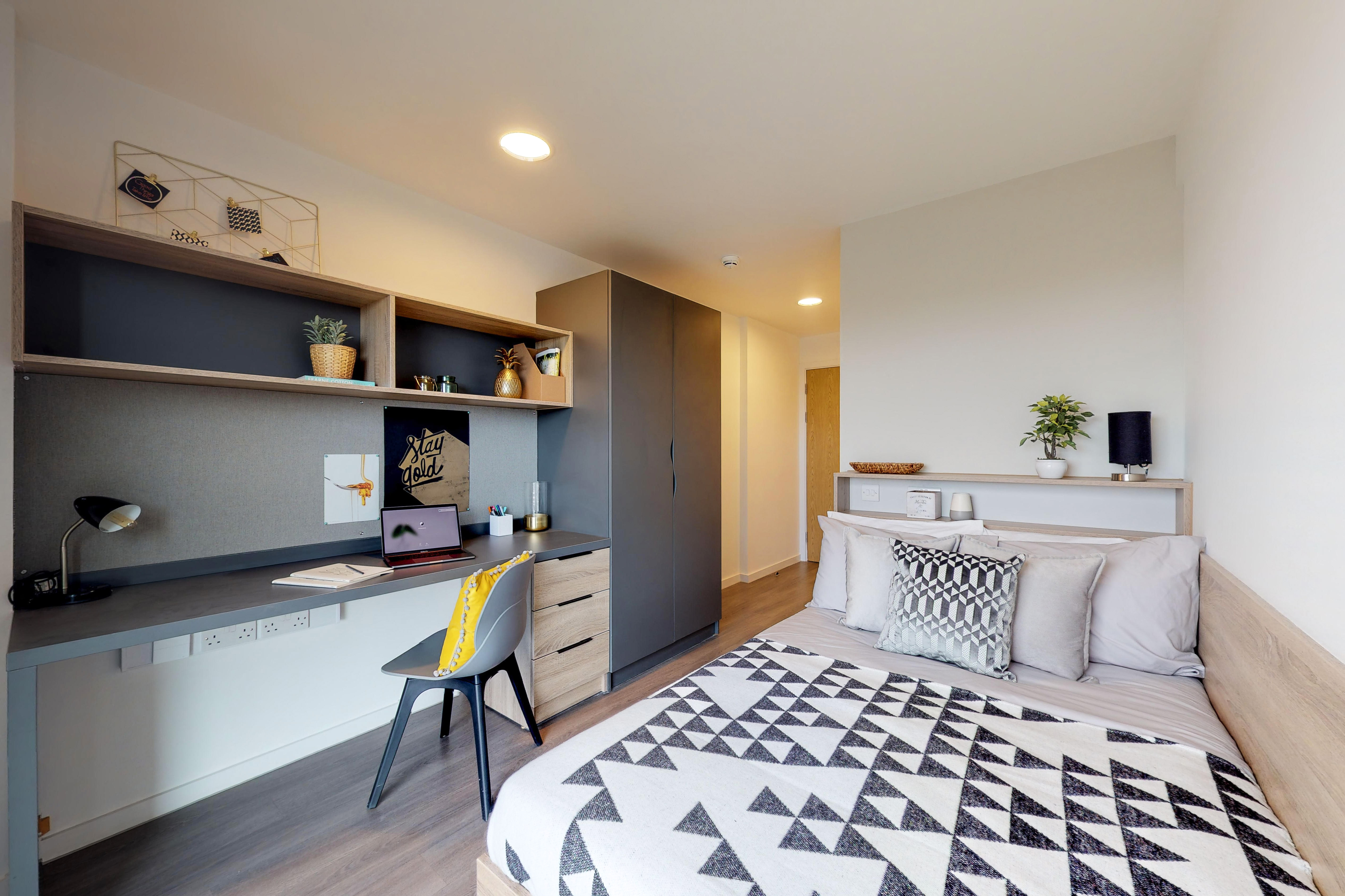 Our Ensuite Apartments allow you to enjoy your own bedroom and ensuite bathroom while still getting the buzzing atmosphere of a shared living room and kitchen with 5-9 other people.