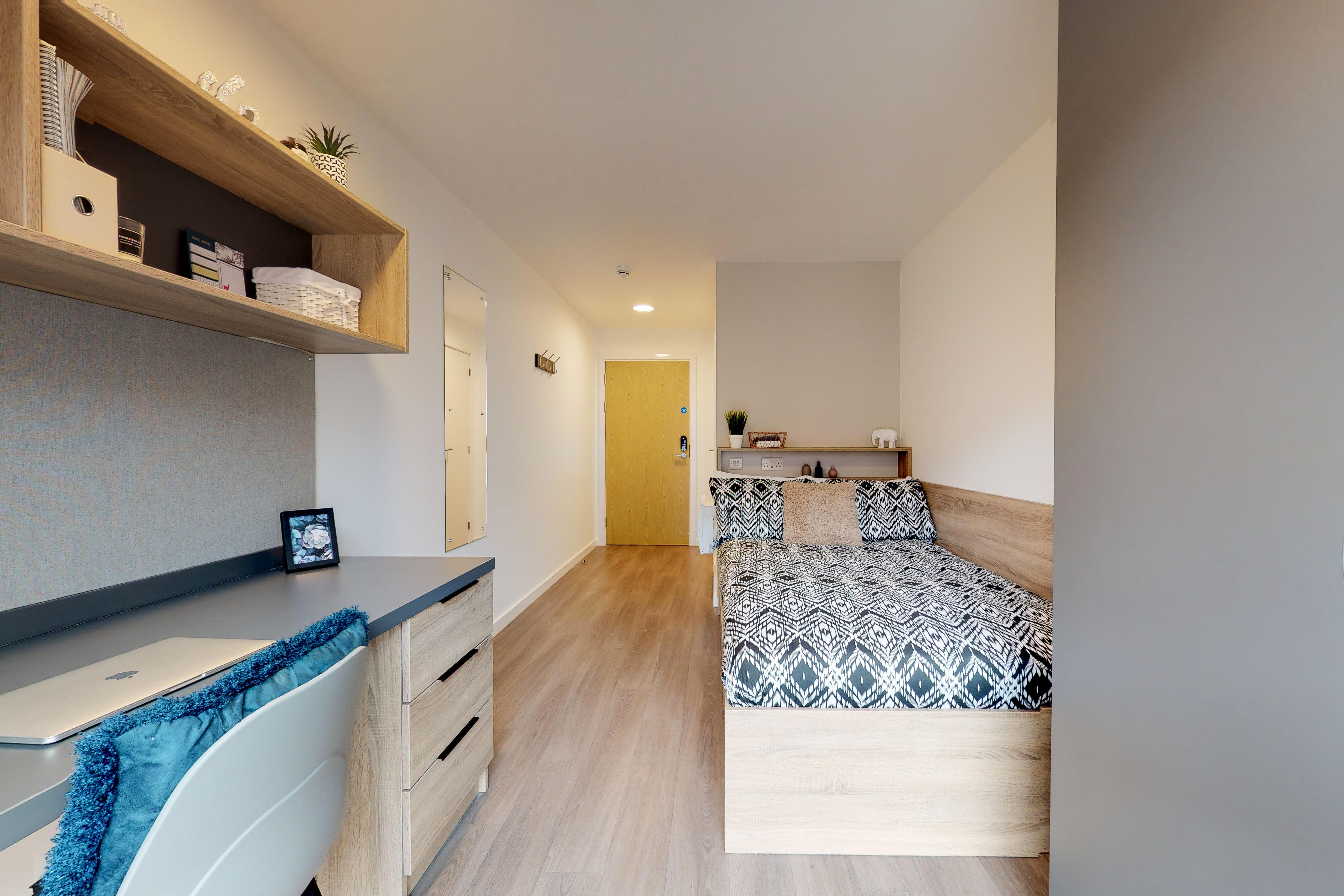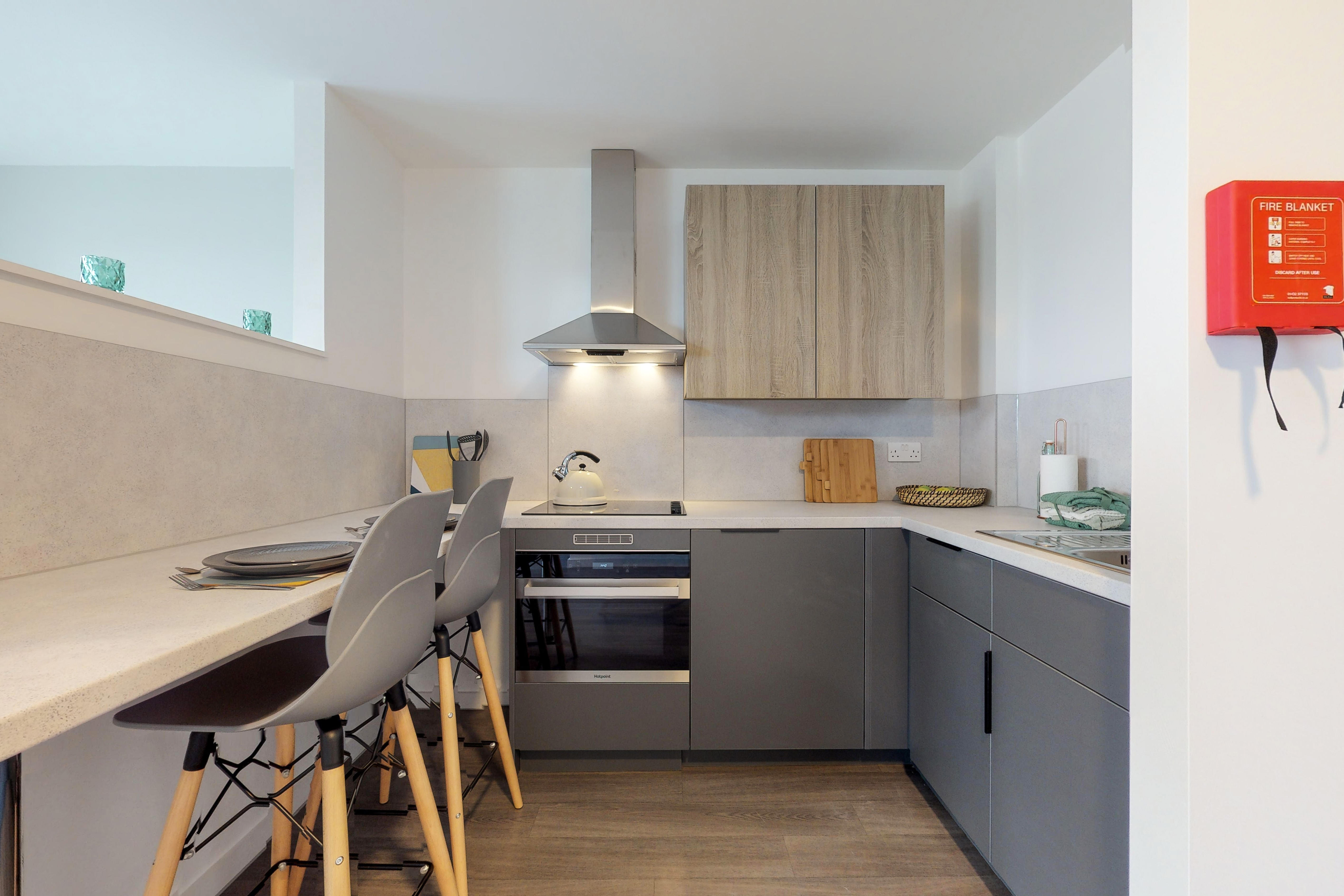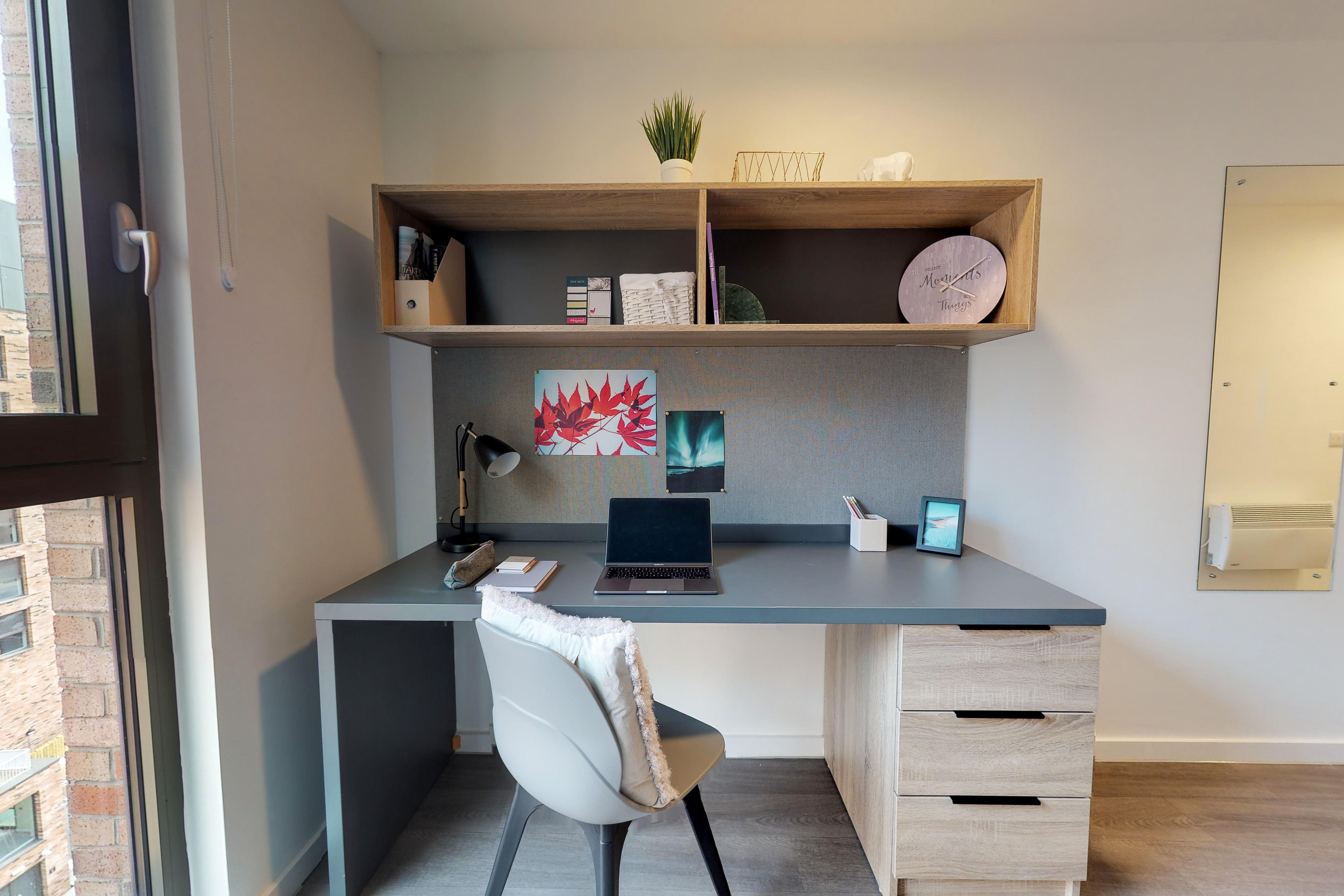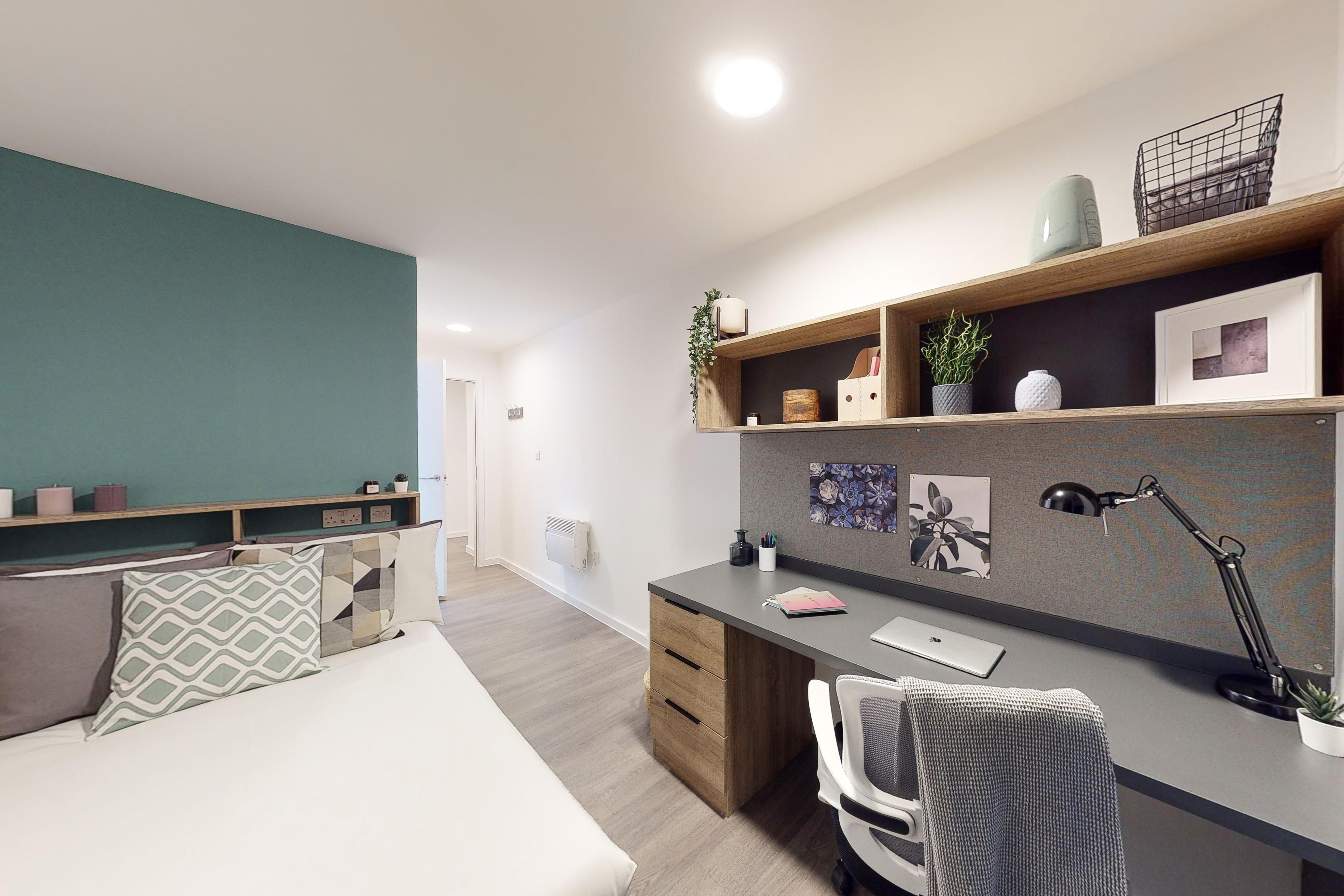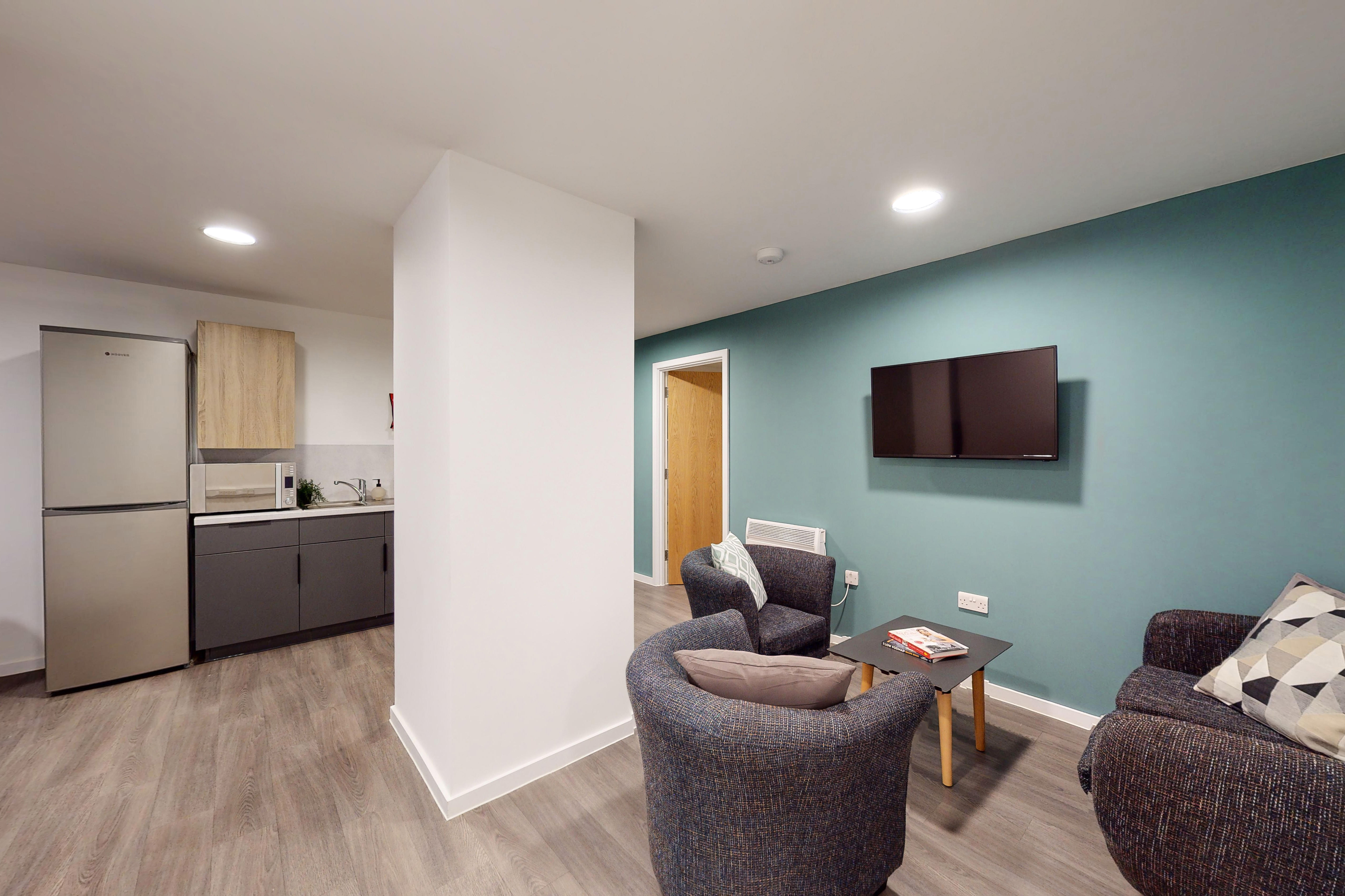 Our Ensuite Apartments allow you to enjoy your own bedroom and ensuite bathroom while still getting the buzzing atmosphere of a shared living room and kitchen with 5-9 other people.