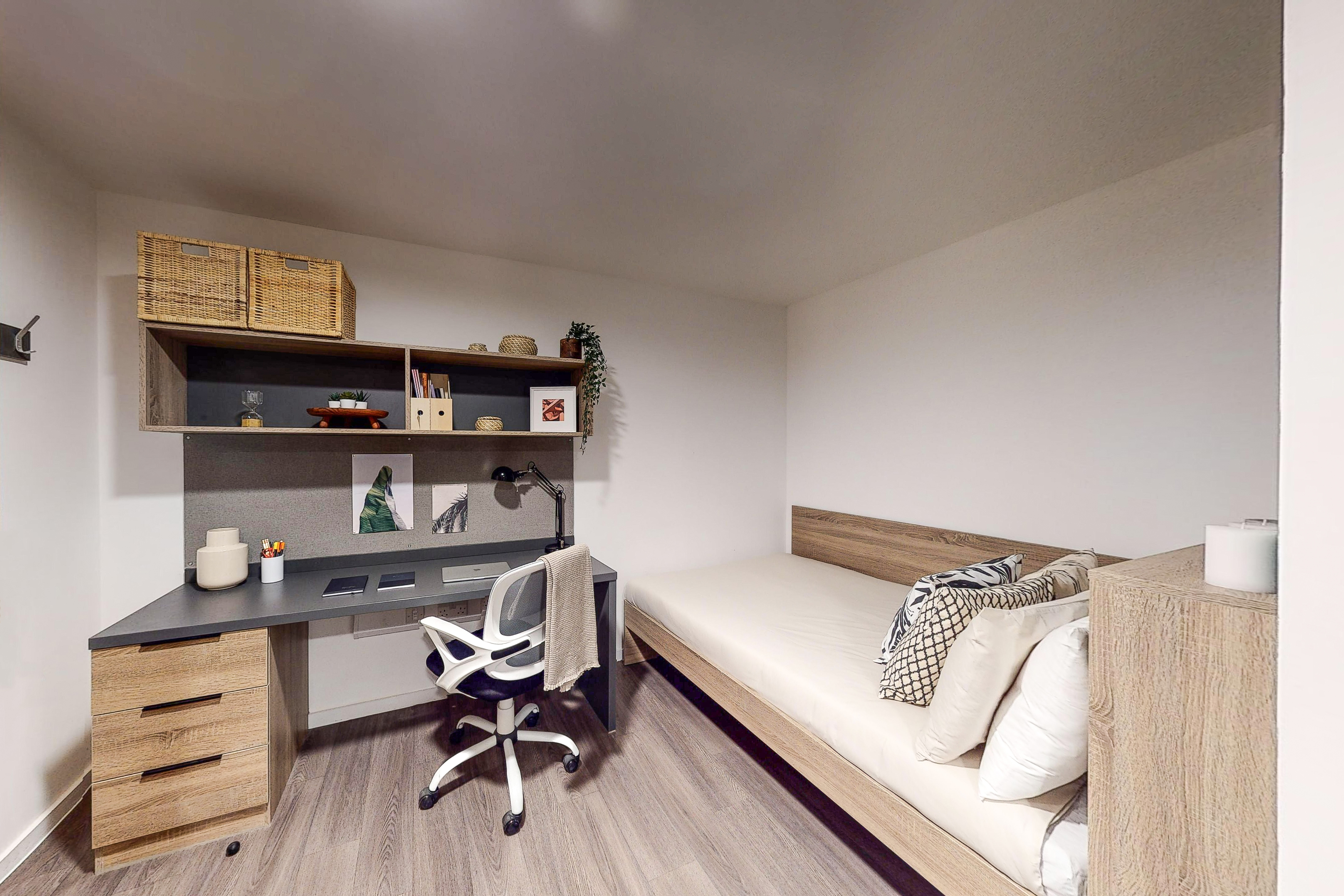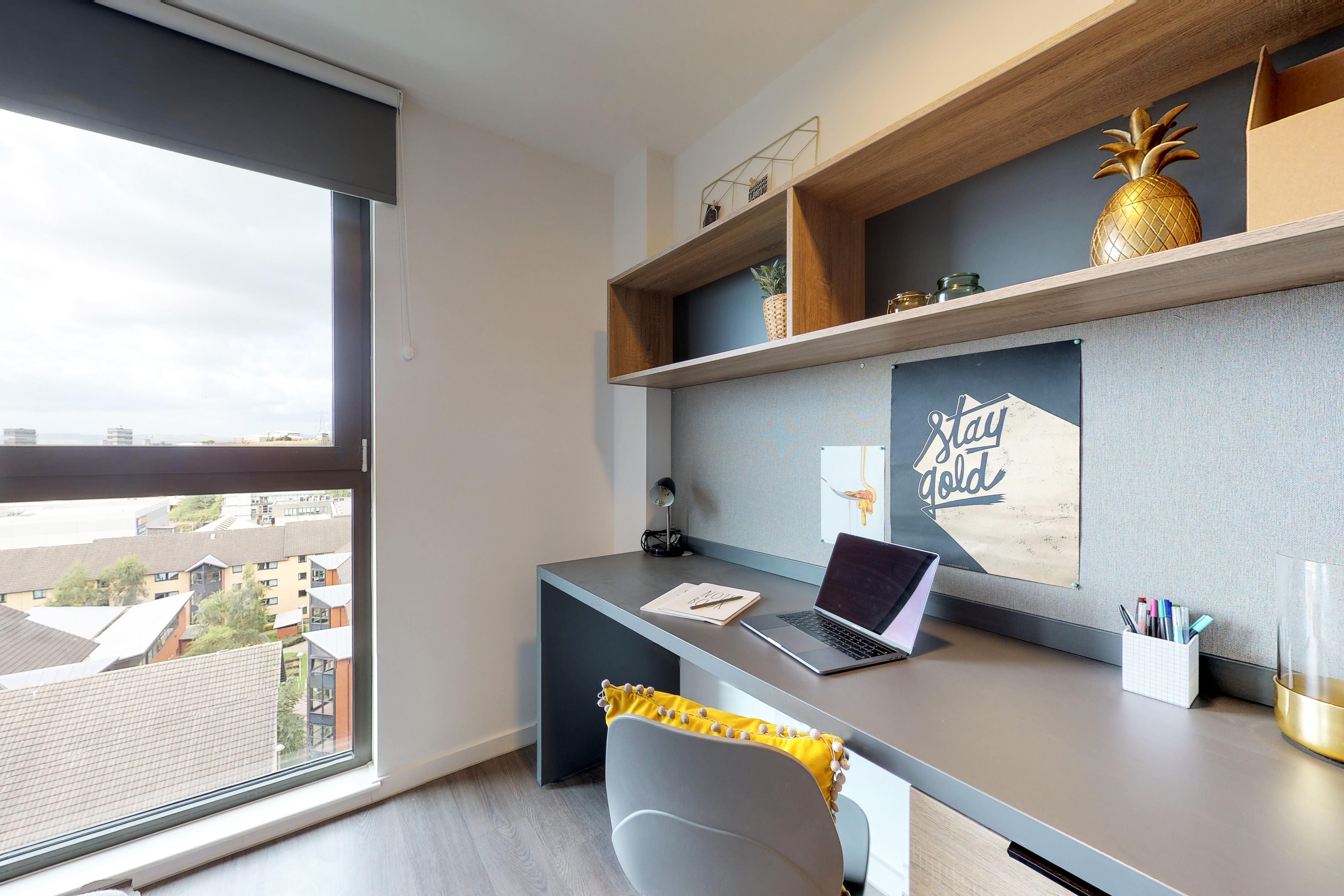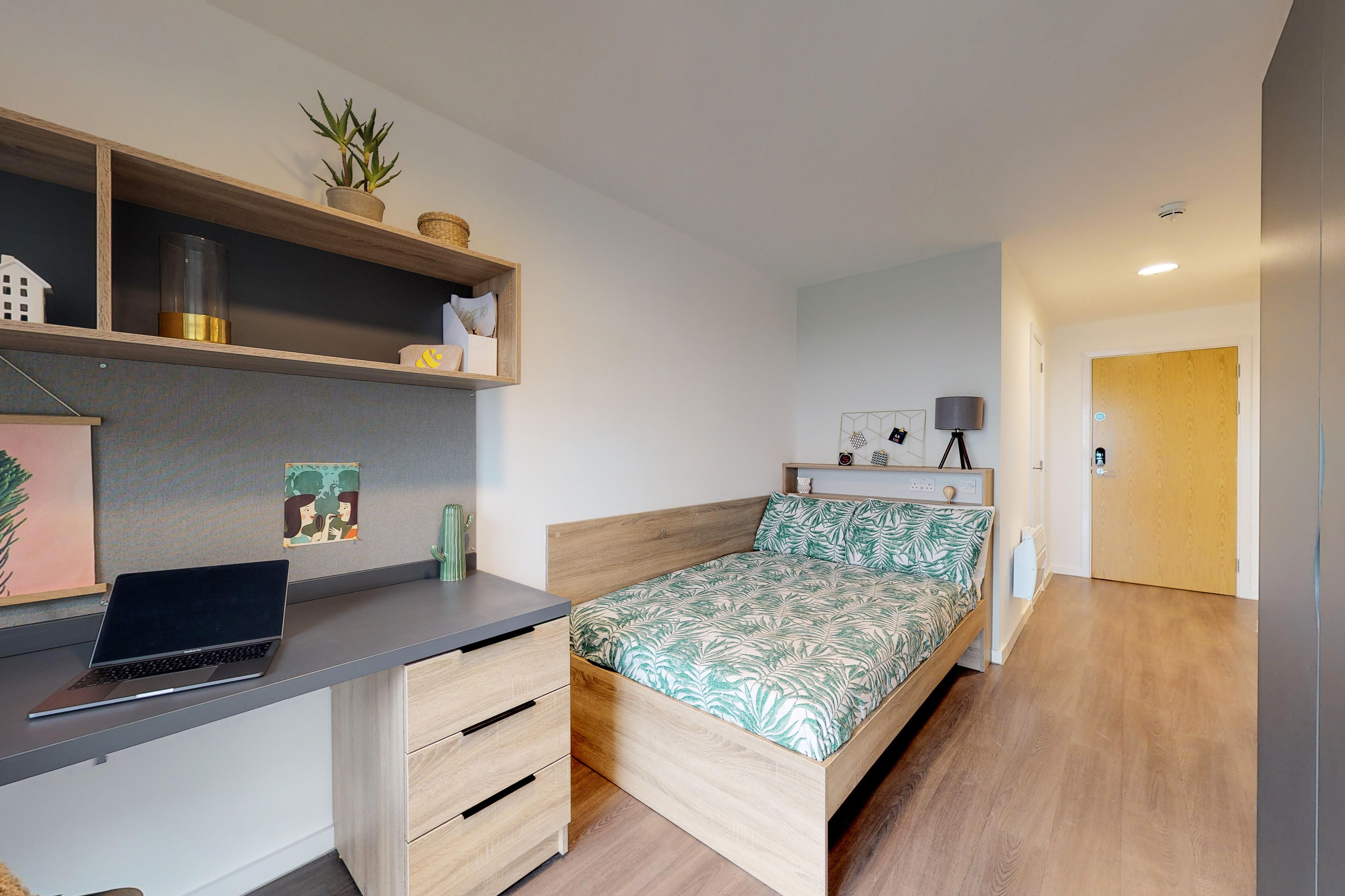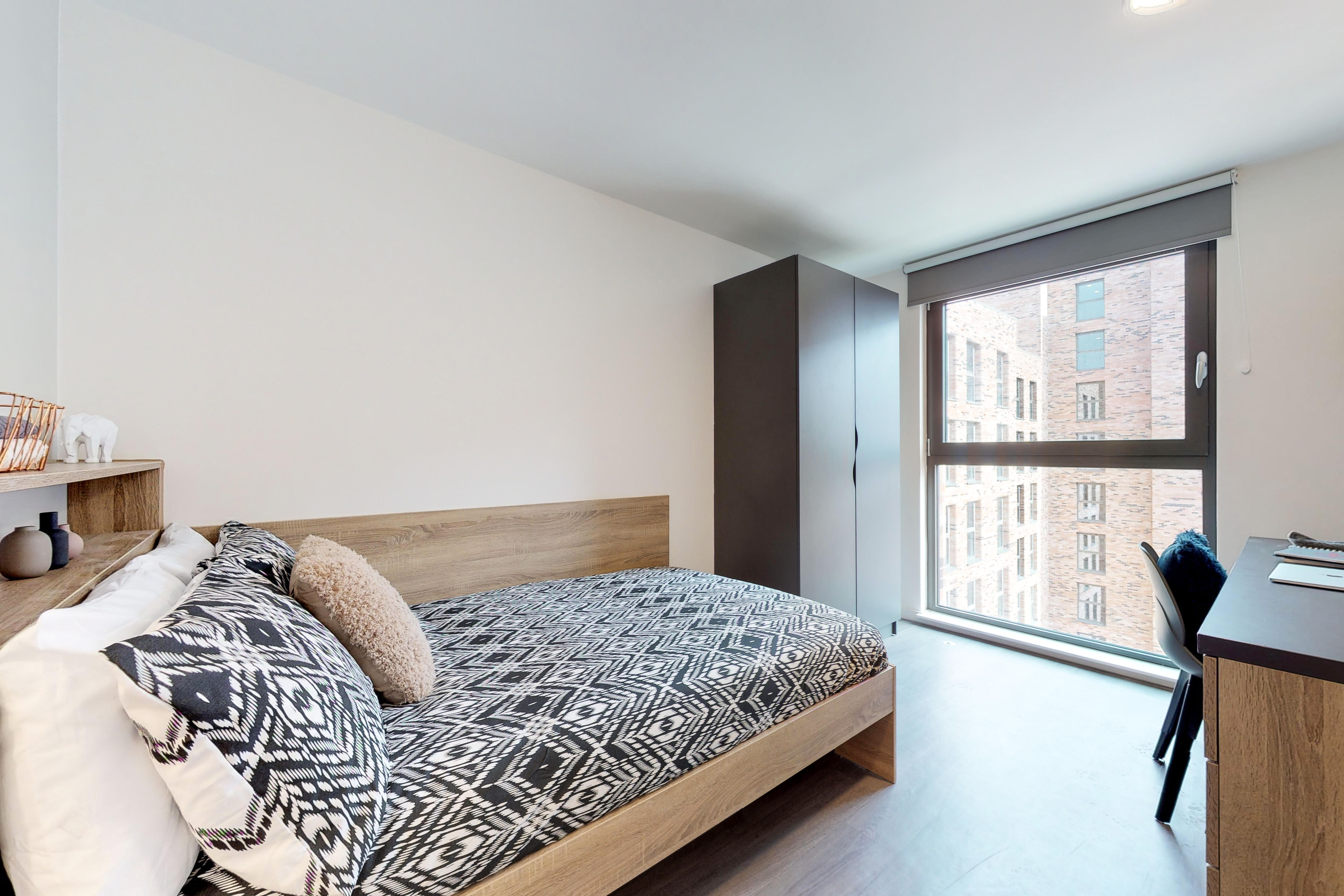 Our Ensuite Apartments allow you to enjoy your own bedroom and ensuite bathroom while still getting the buzzing atmosphere of a shared living room and kitchen with 5-9 other people.