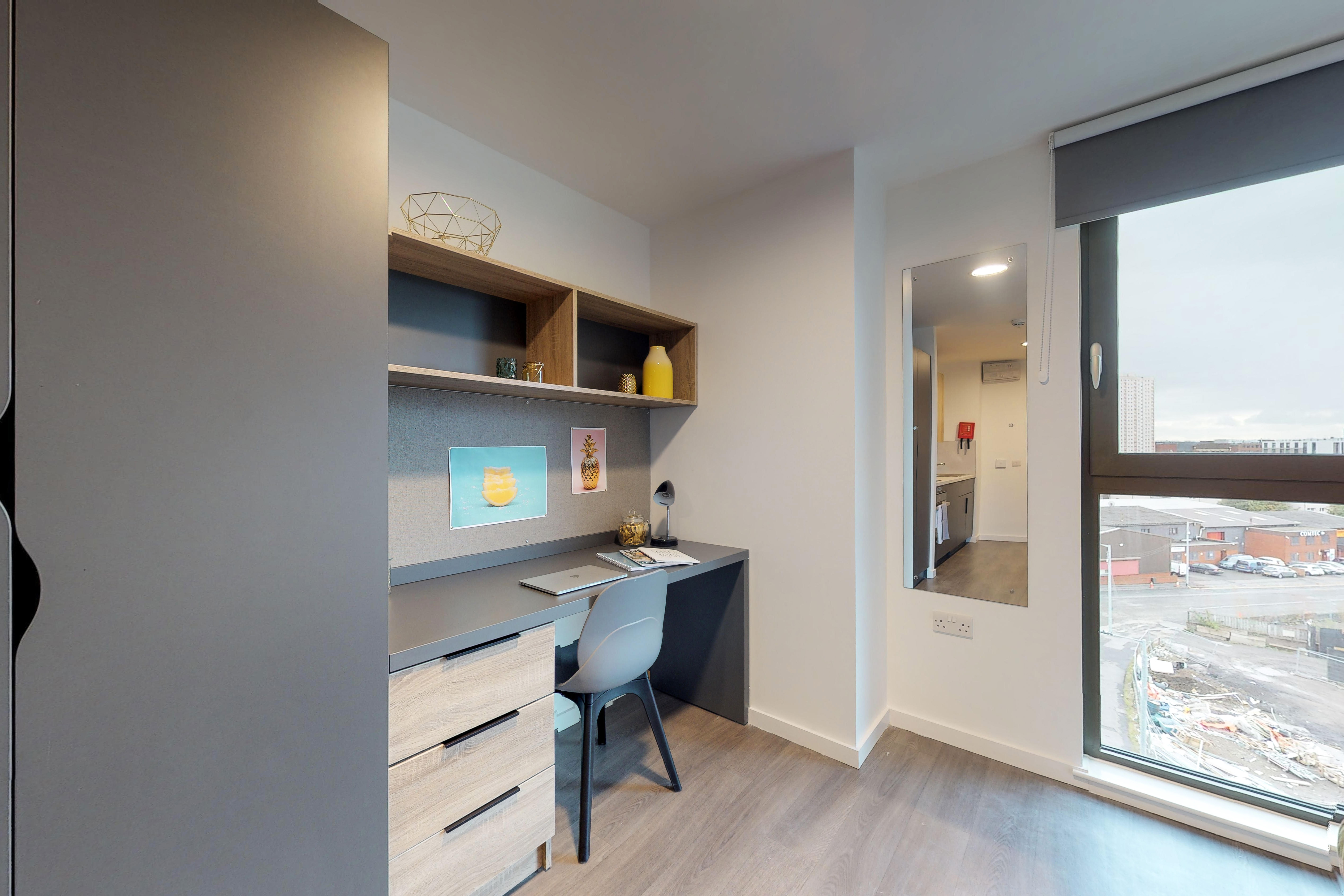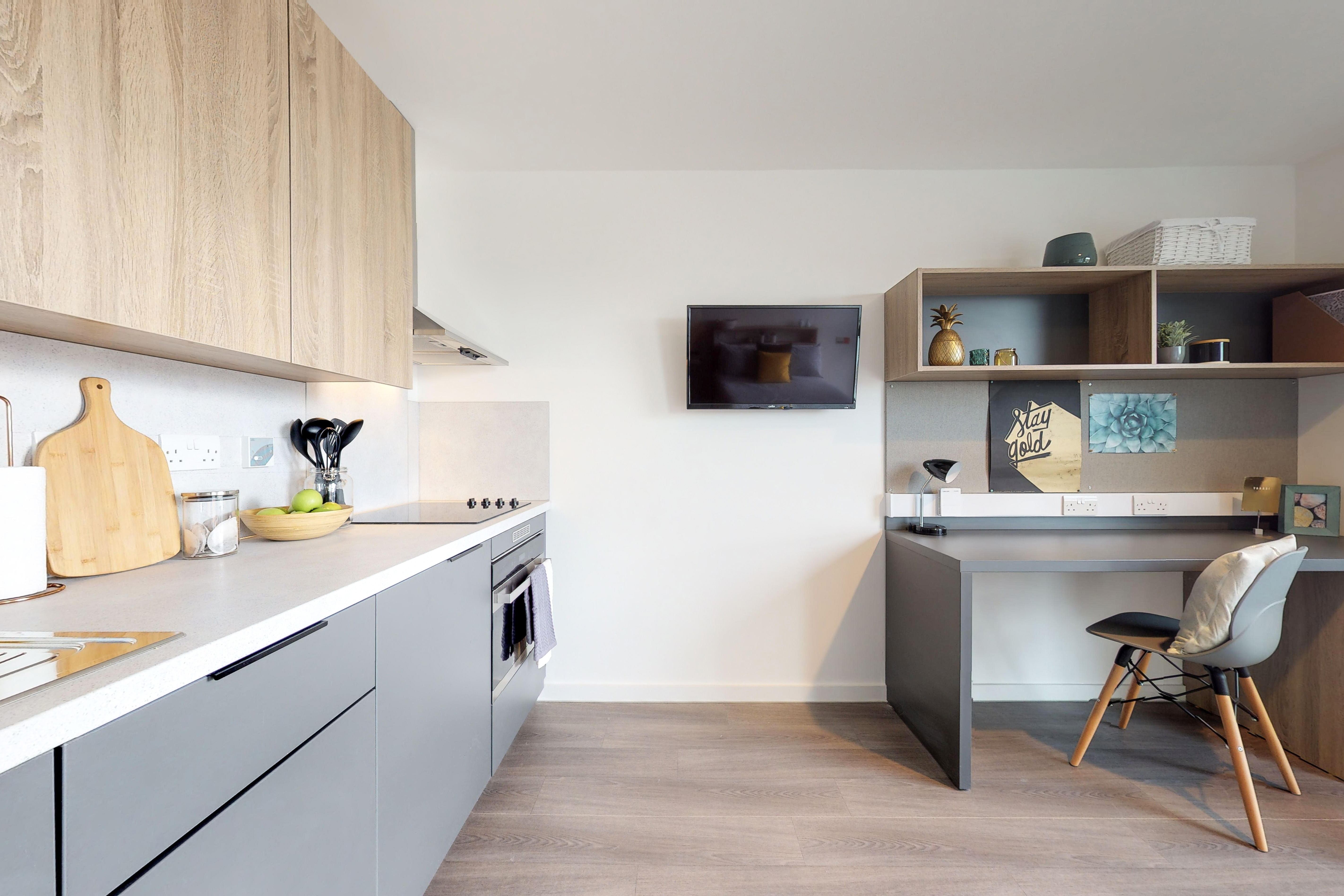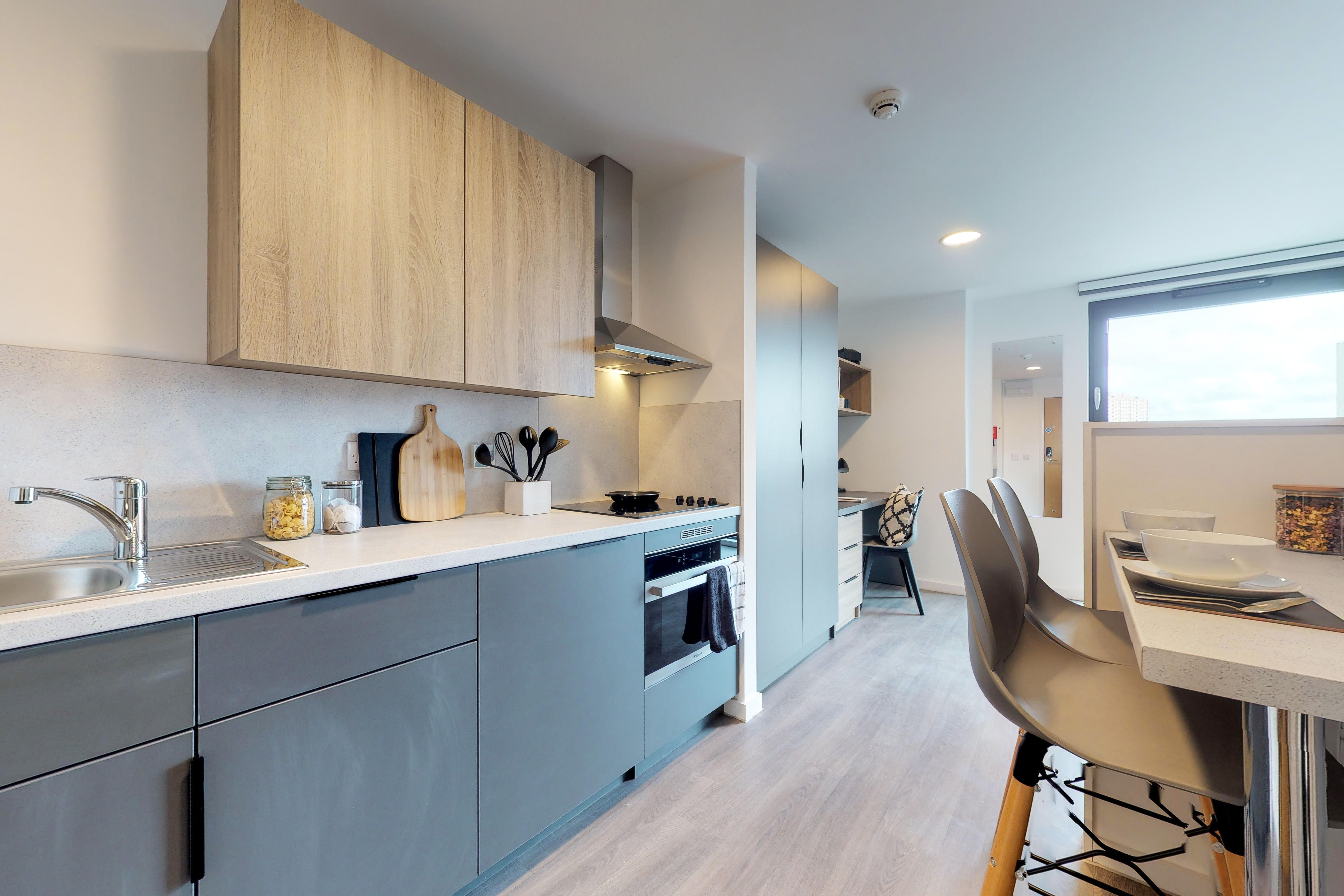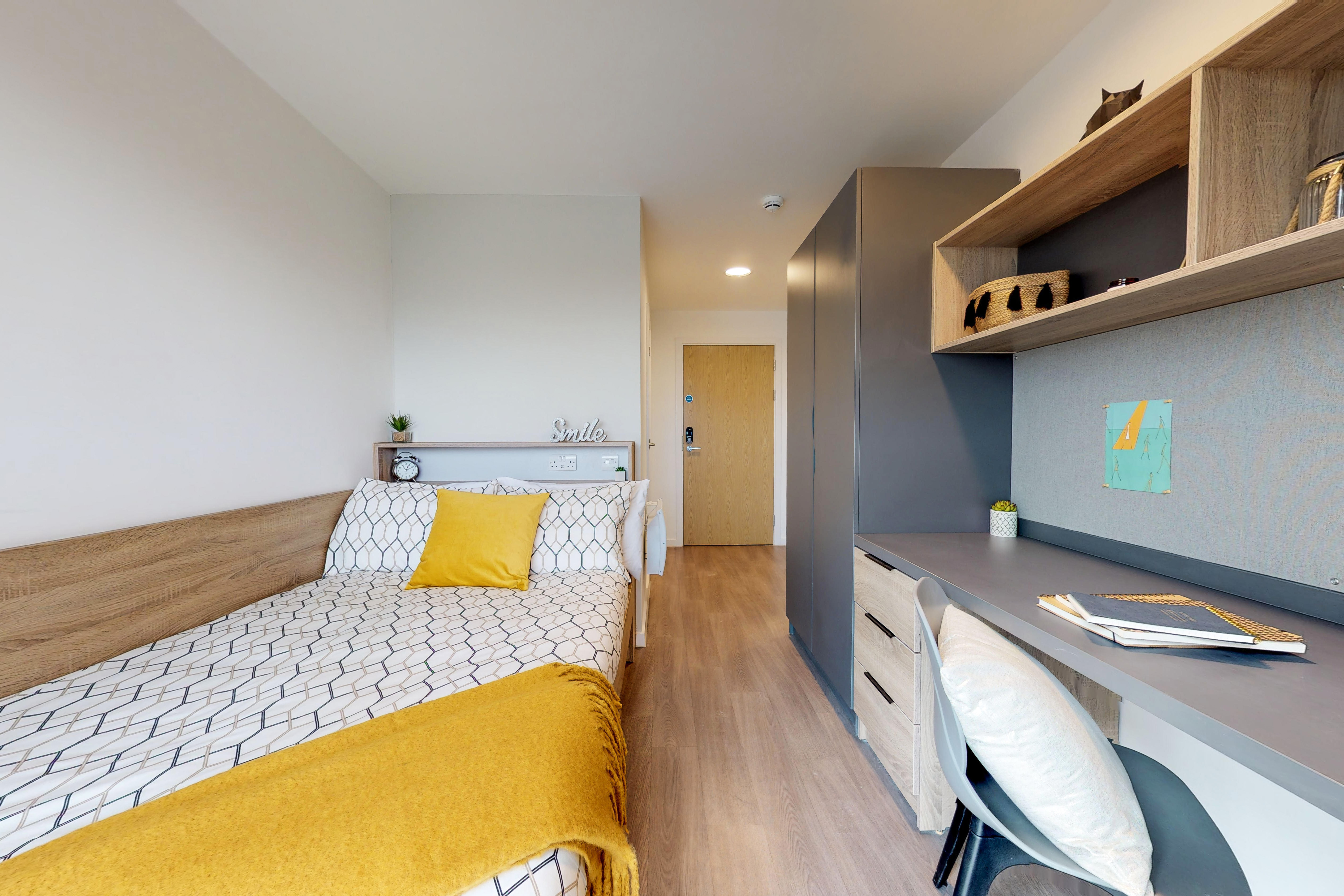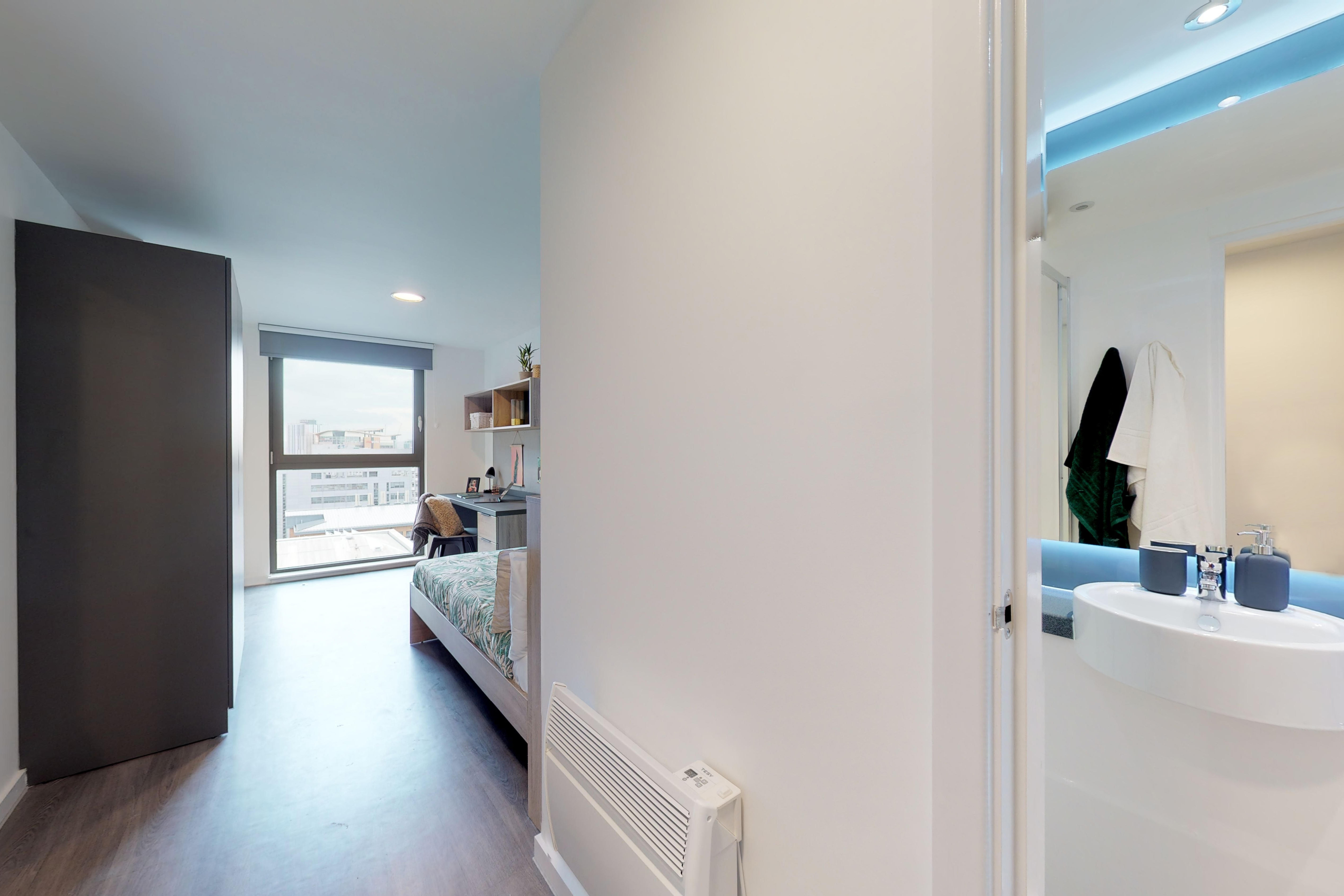 Our Ensuite Apartments allow you to enjoy your own bedroom and ensuite bathroom while still getting the buzzing atmosphere of a shared living room and kitchen with 5-9 other people.