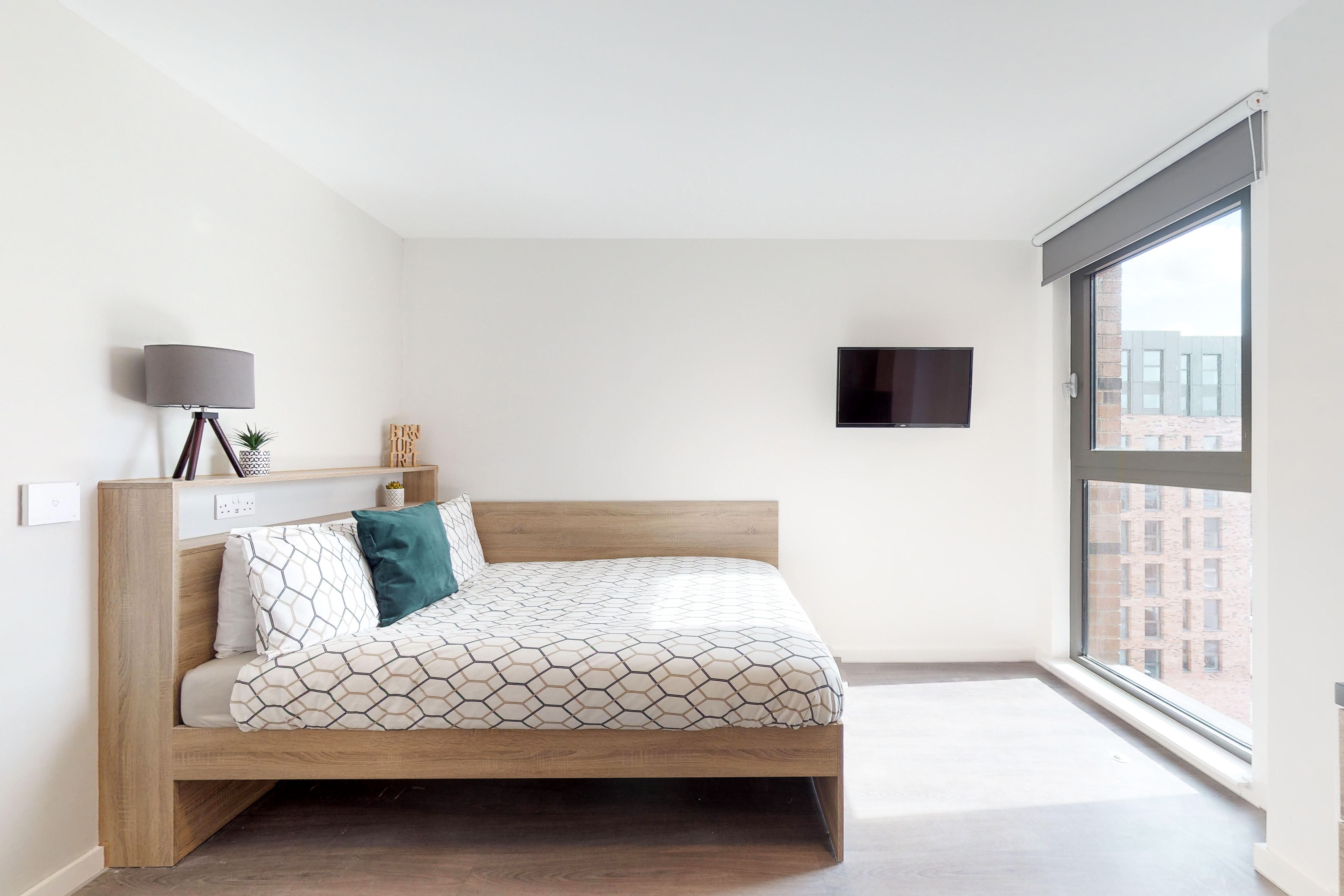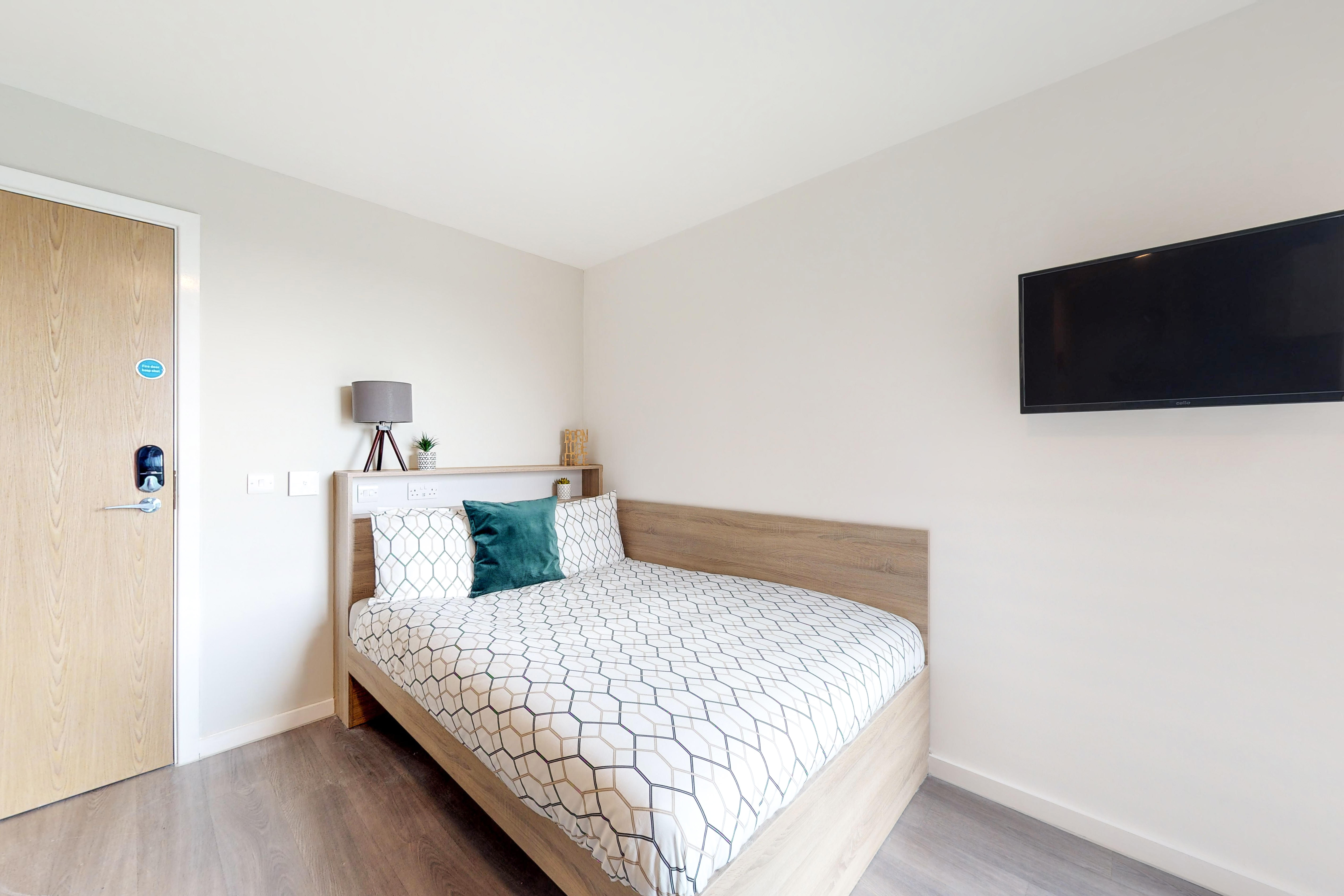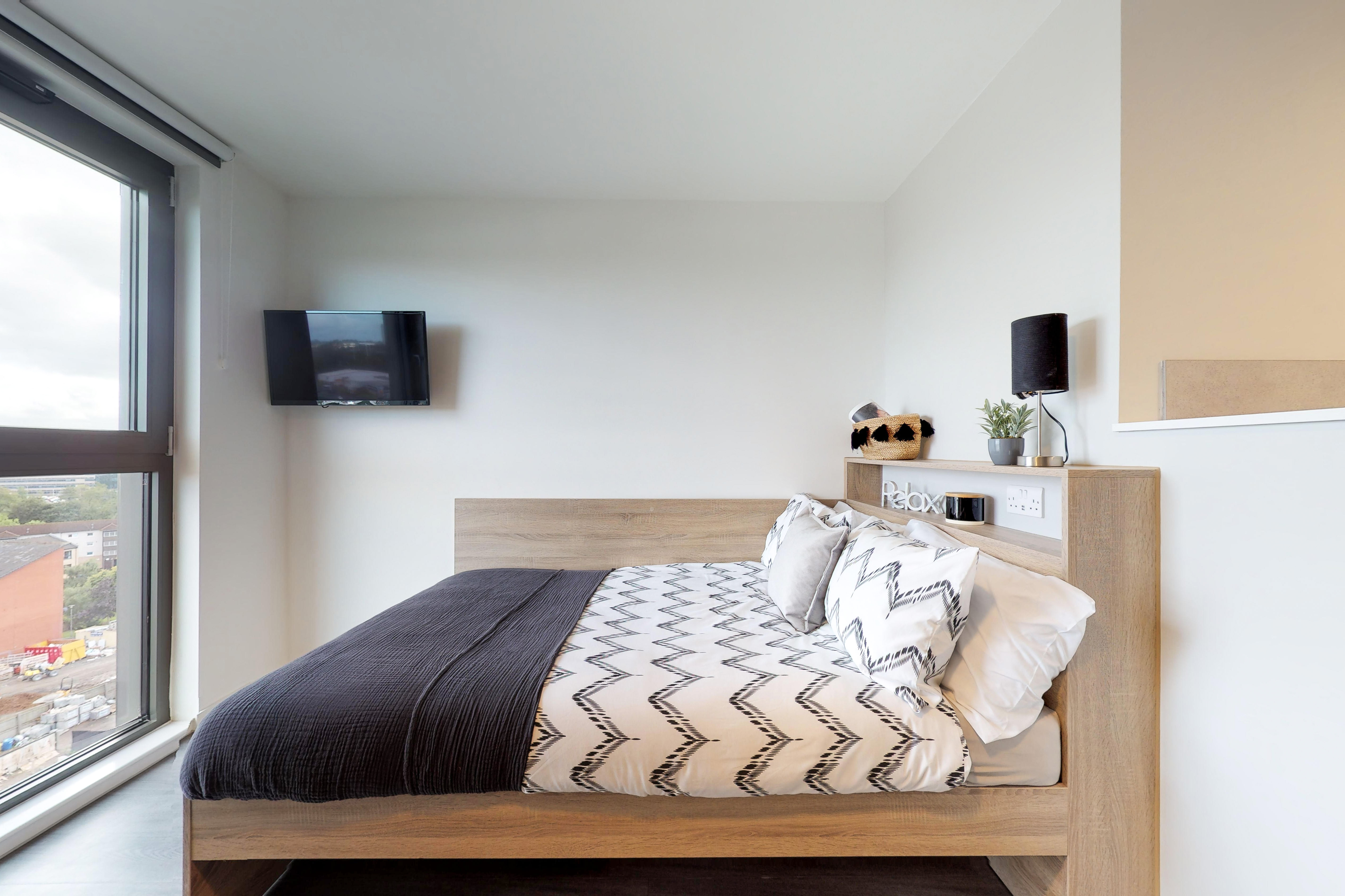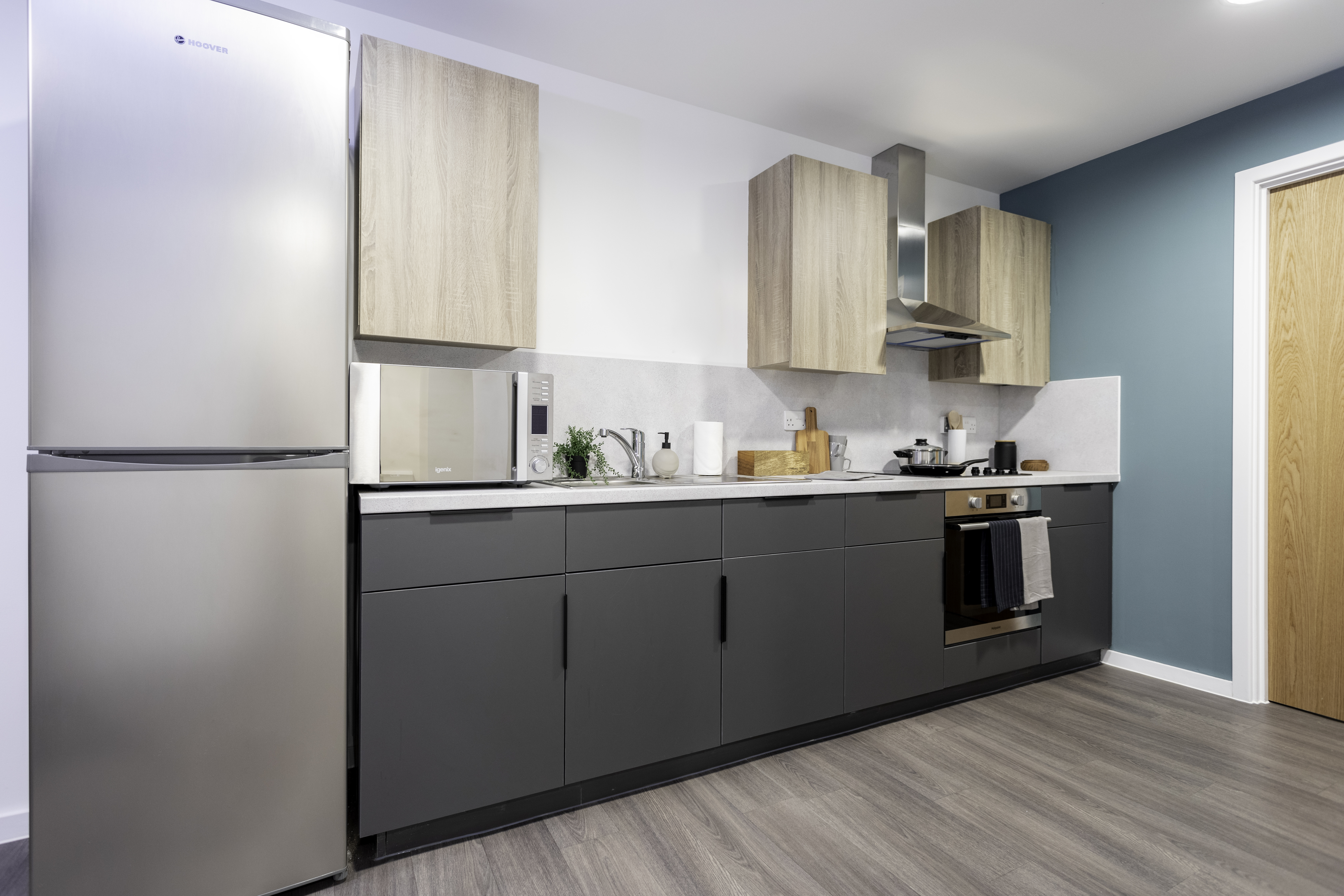 Our Ensuite Apartments allow you to enjoy your own bedroom and ensuite bathroom while still getting the buzzing atmosphere of a shared living room and kitchen with 5-9 other people.