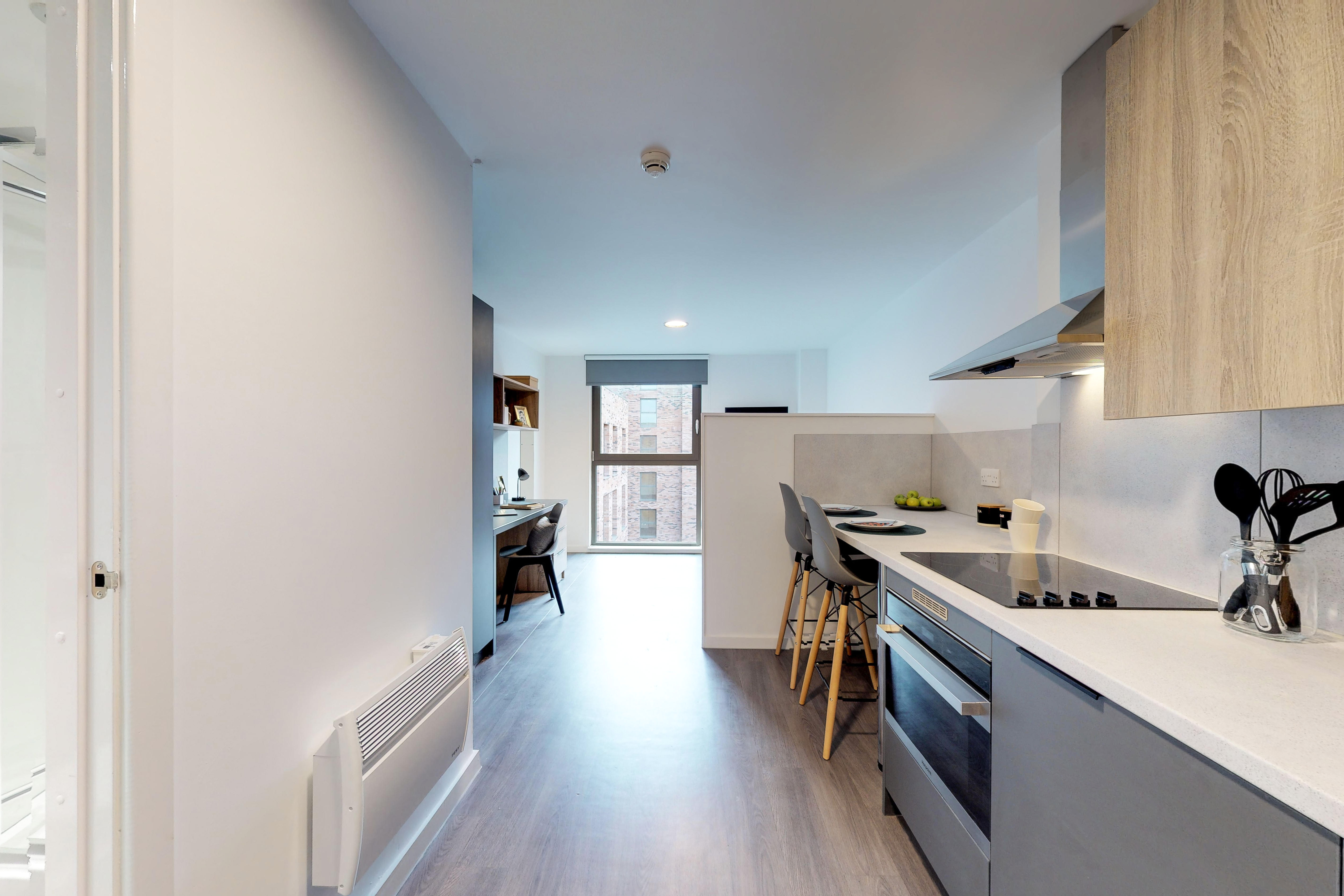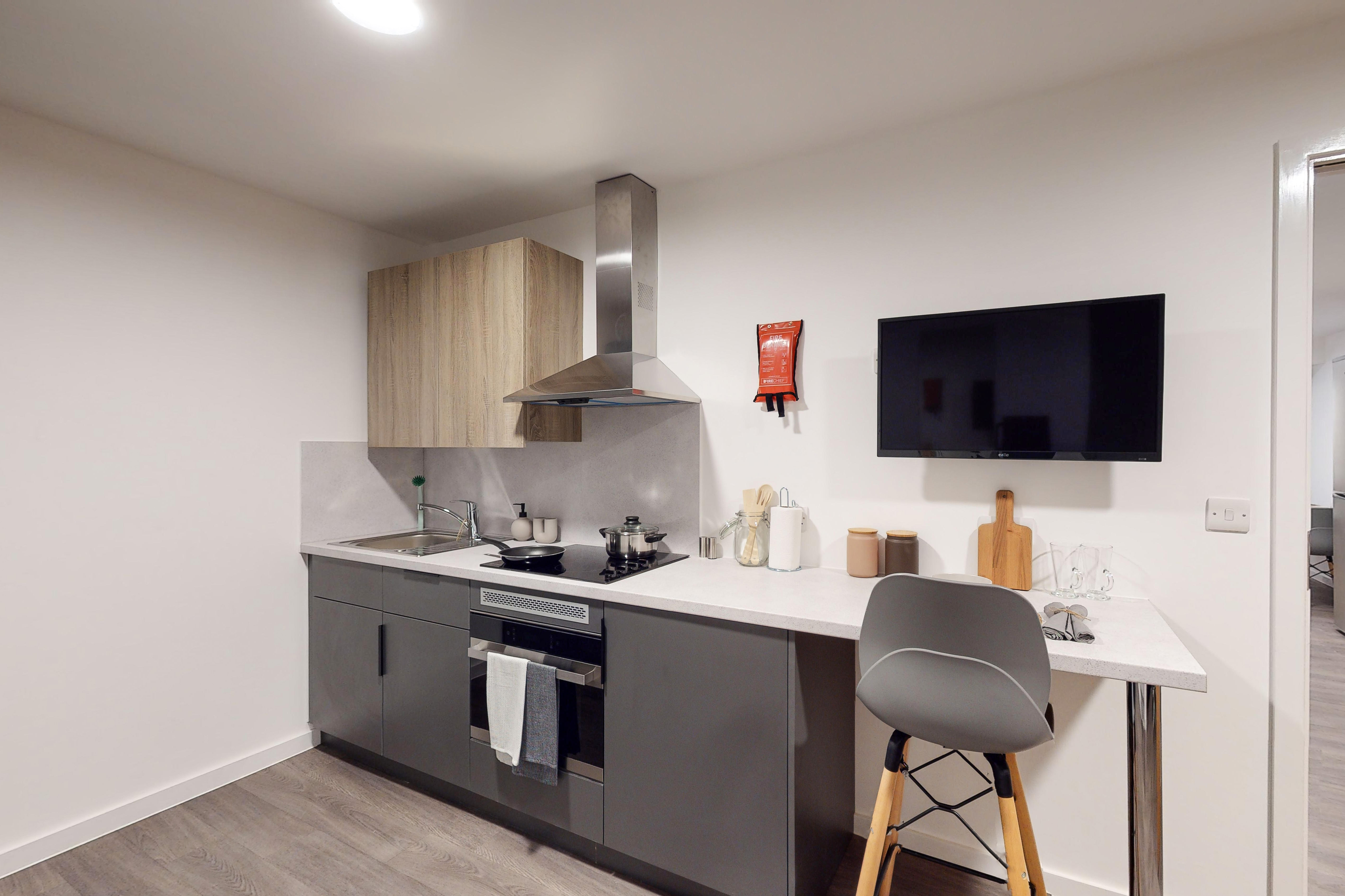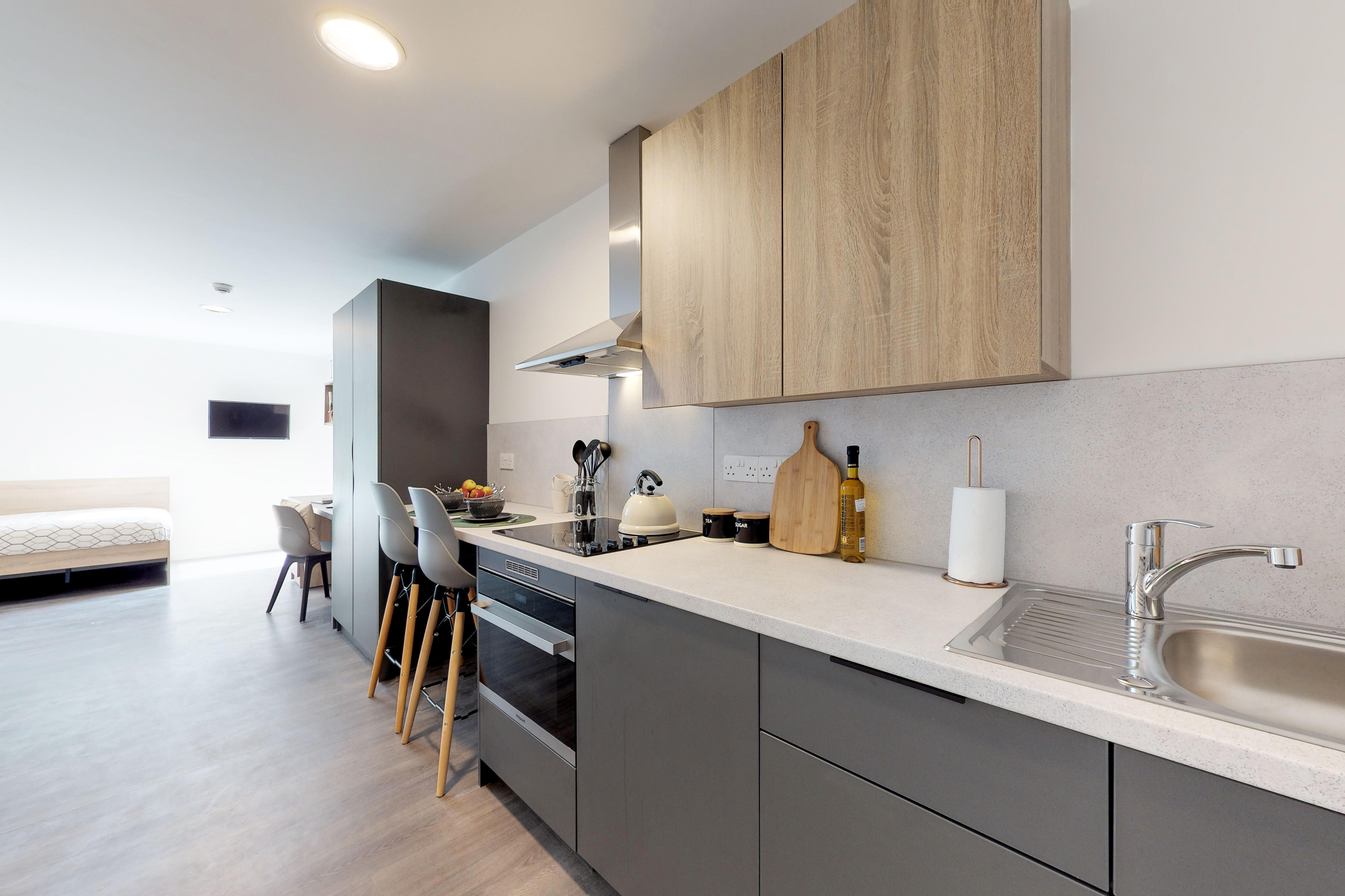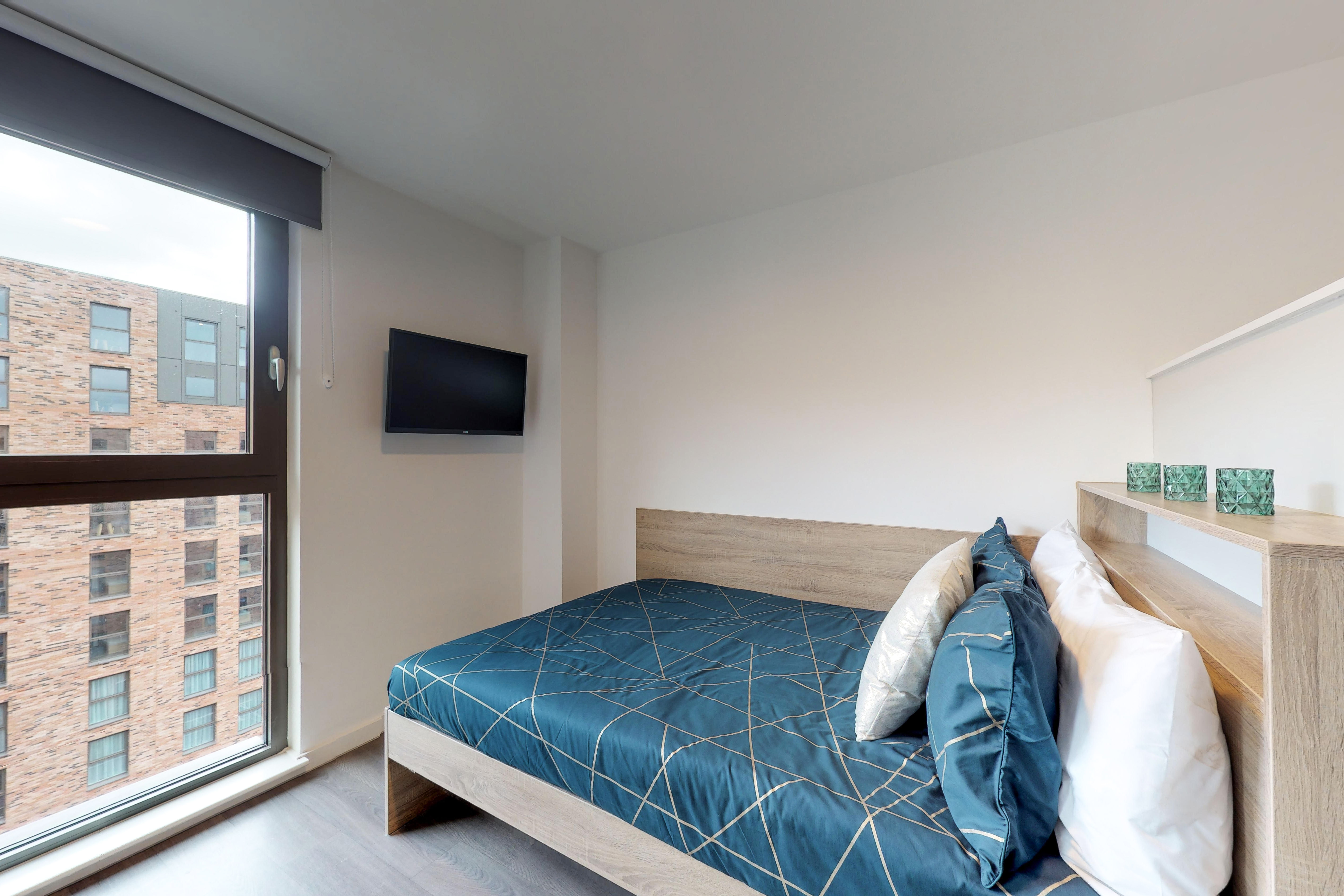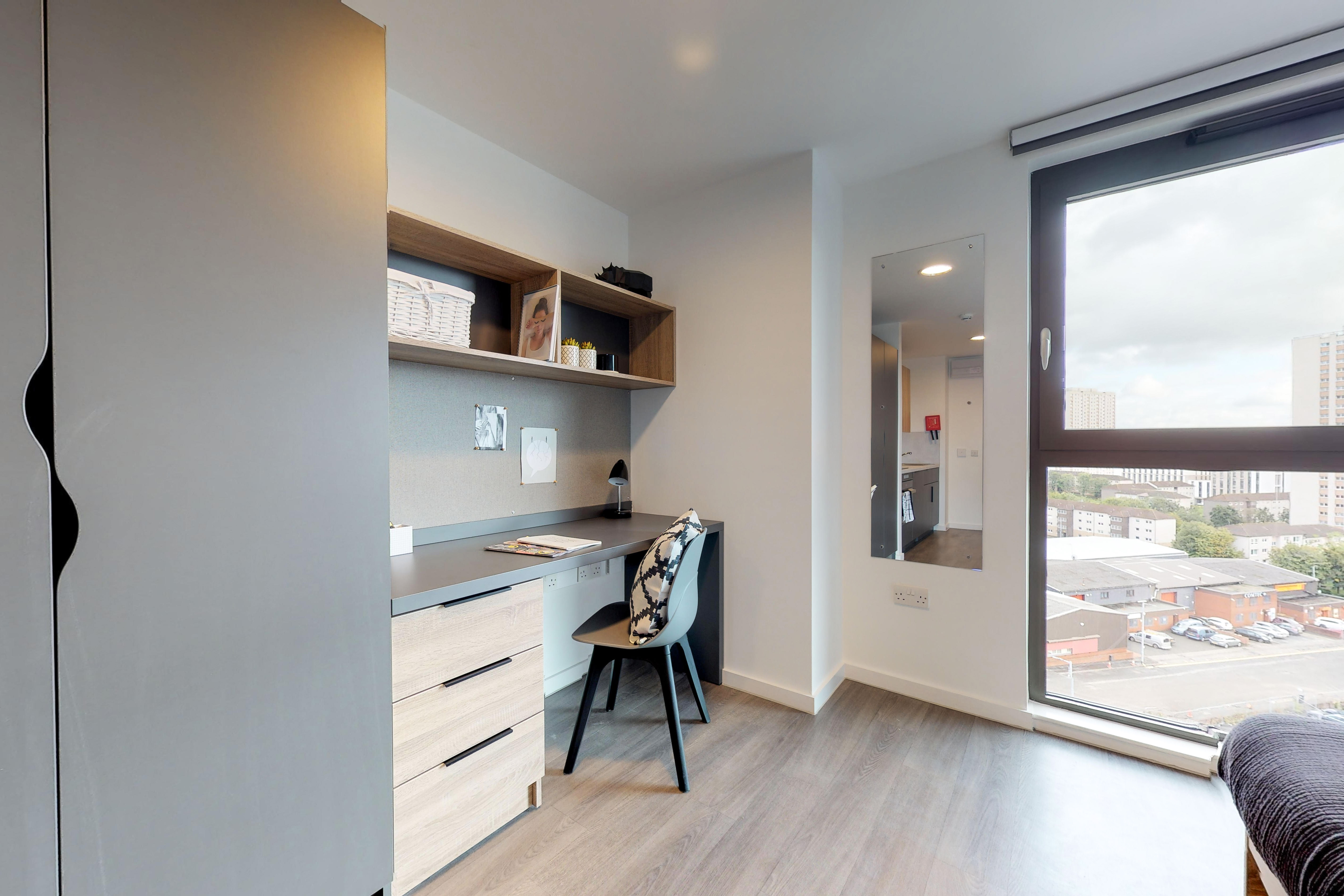 Our Ensuite Apartments allow you to enjoy your own bedroom and ensuite bathroom while still getting the buzzing atmosphere of a shared living room and kitchen with 5-9 other people.