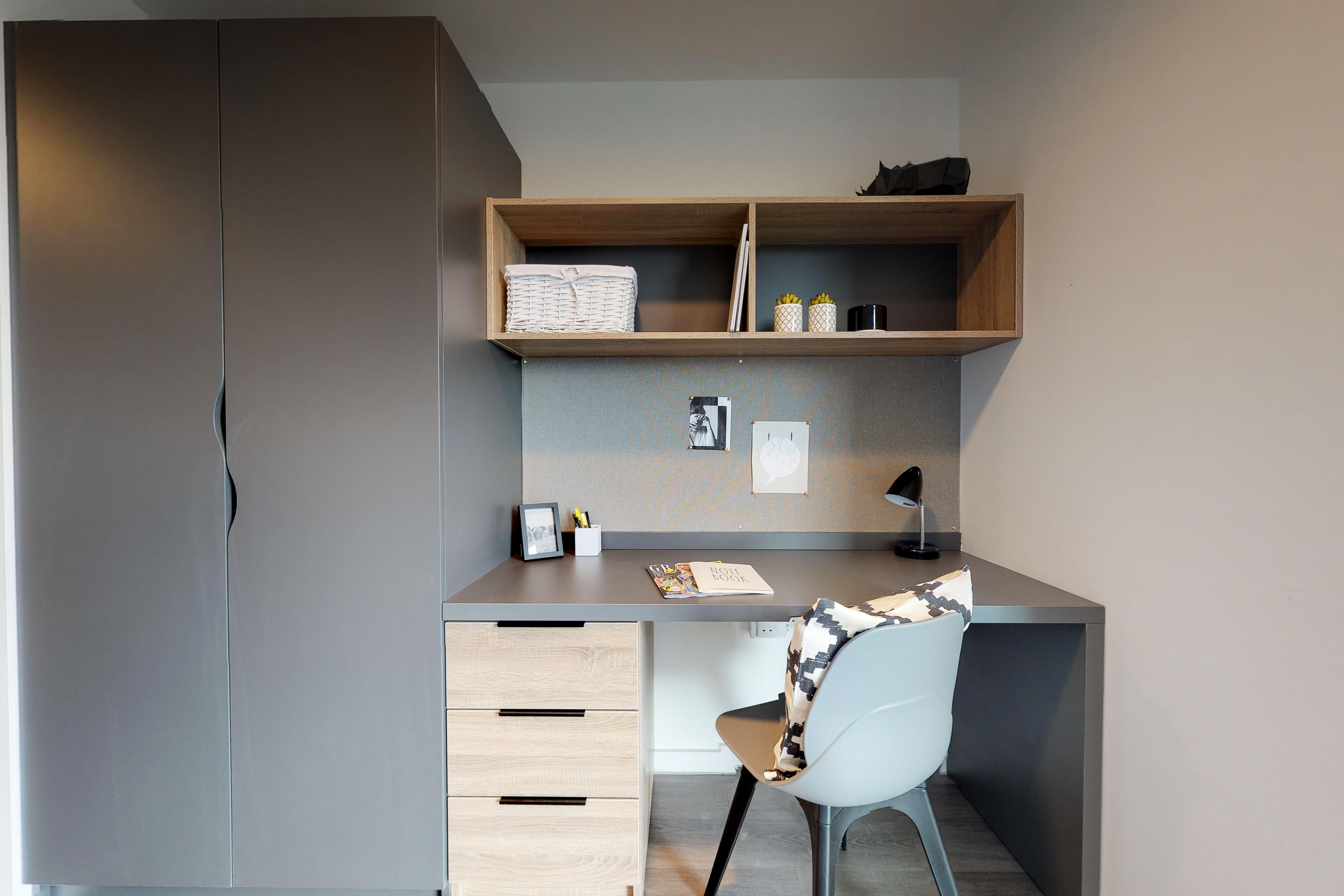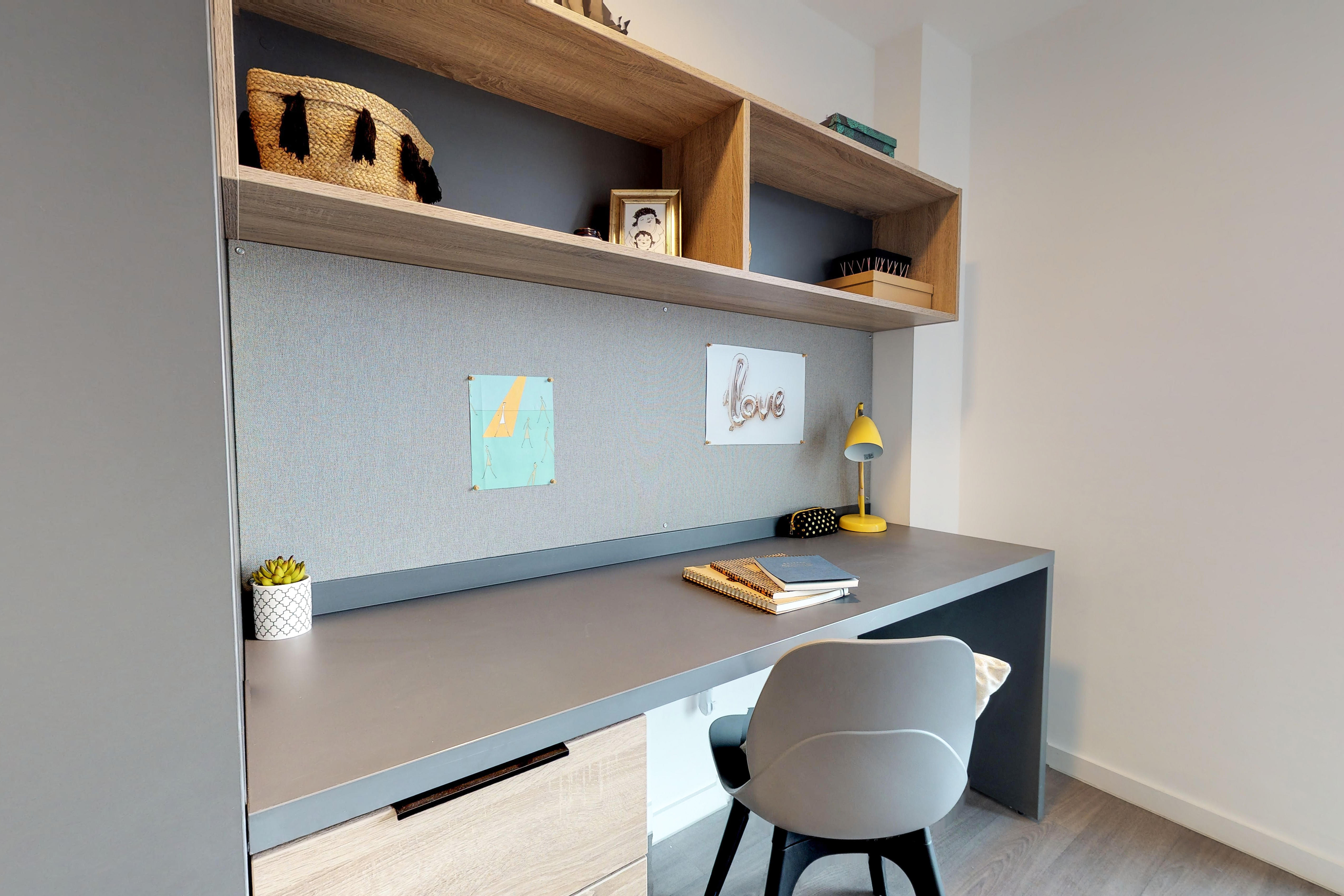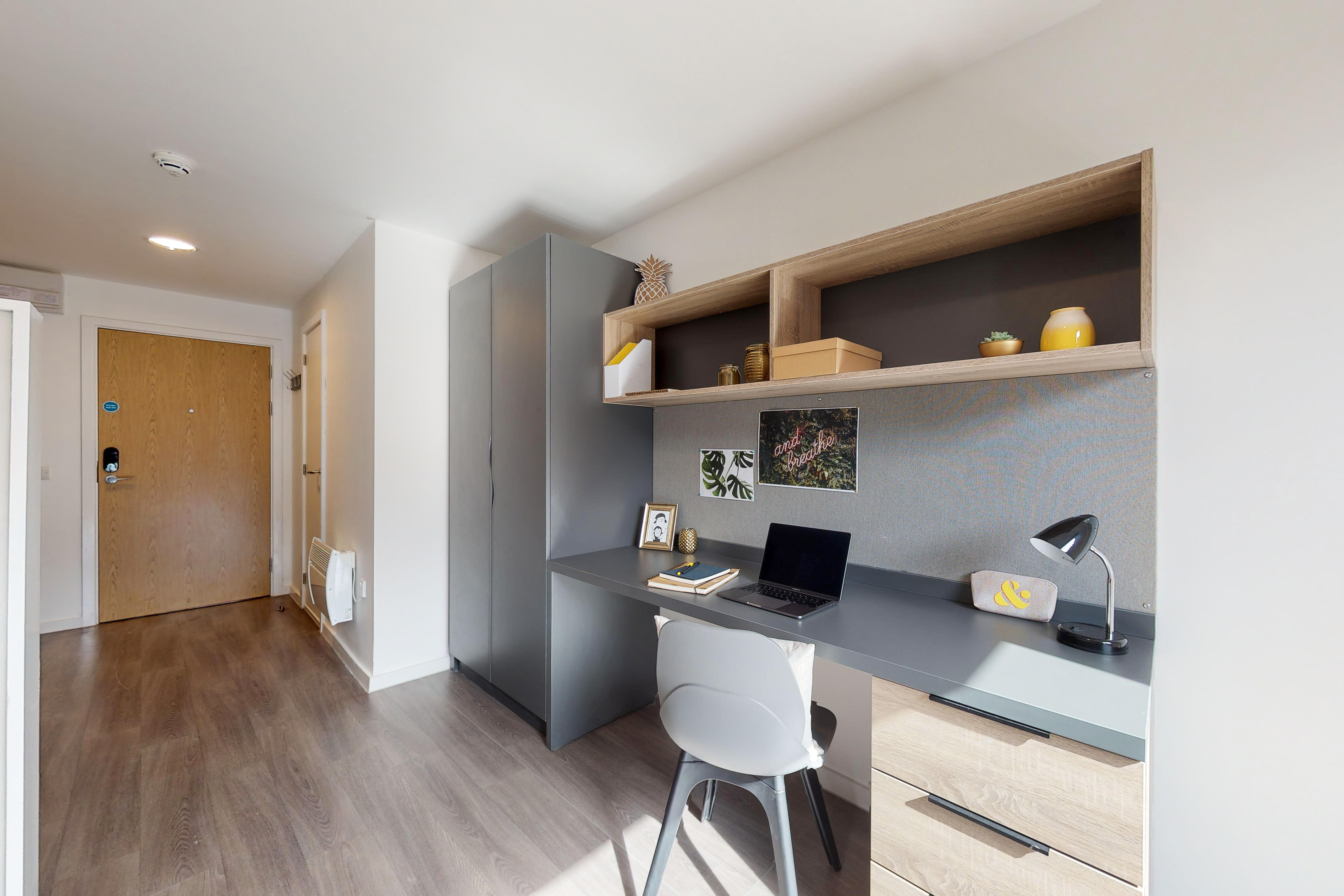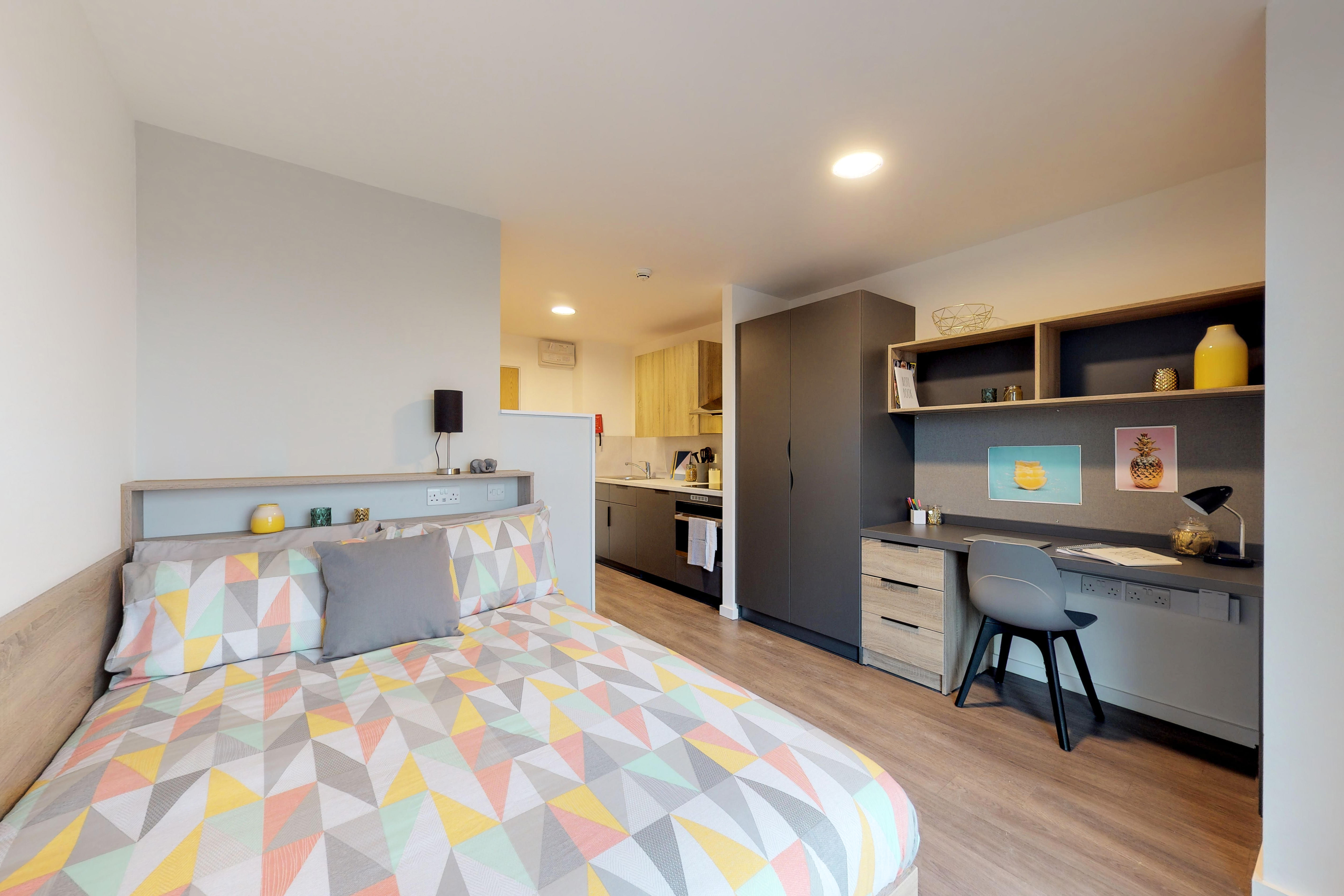 Select from a studio or ensuite-apartment at Nido Alliot House. Our studios are ideal for having your own space. Each studio comes with your own private ensuite bathroom, double bed, wardrobe storage, desk, chair plus breakfast bar and kitchenette.