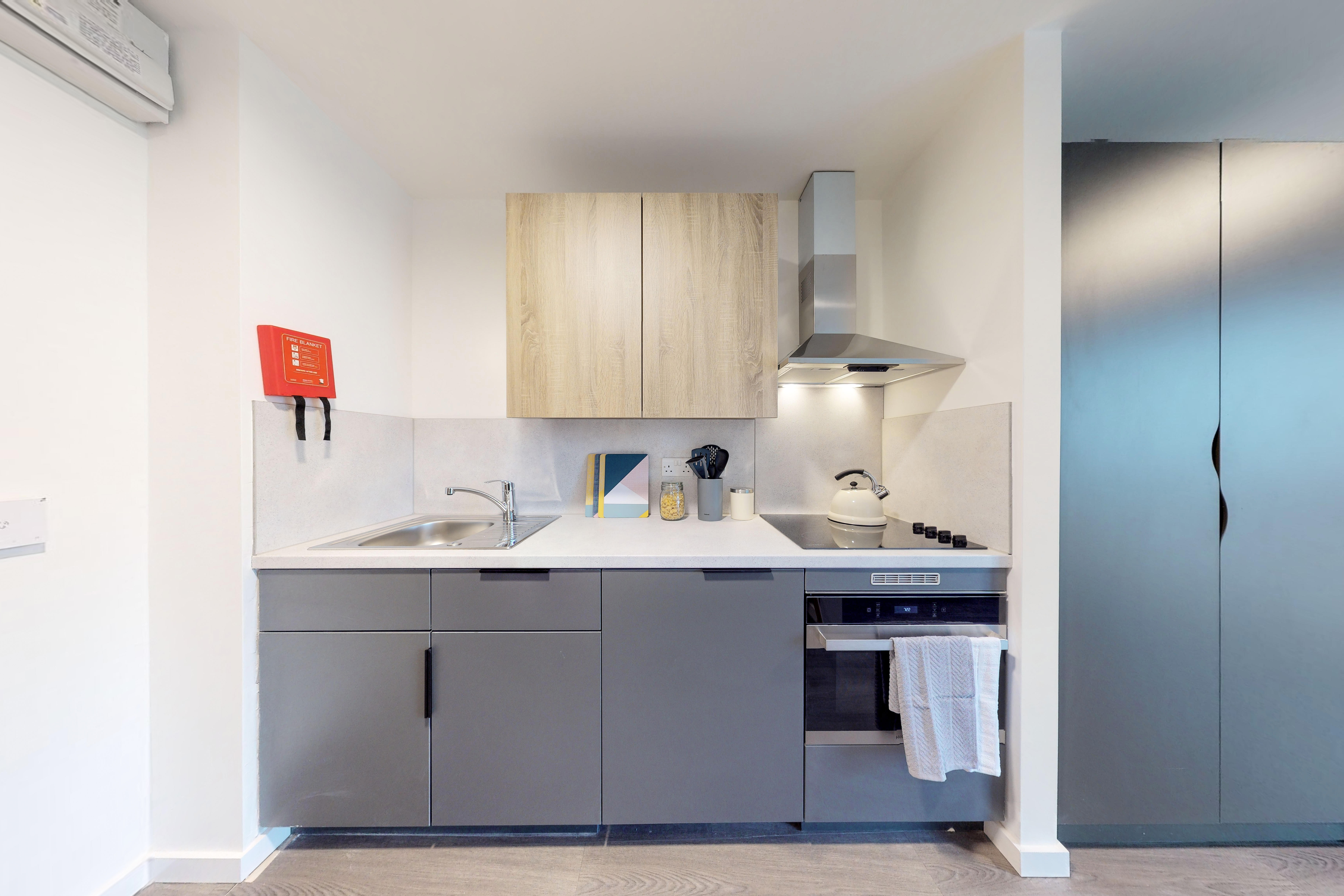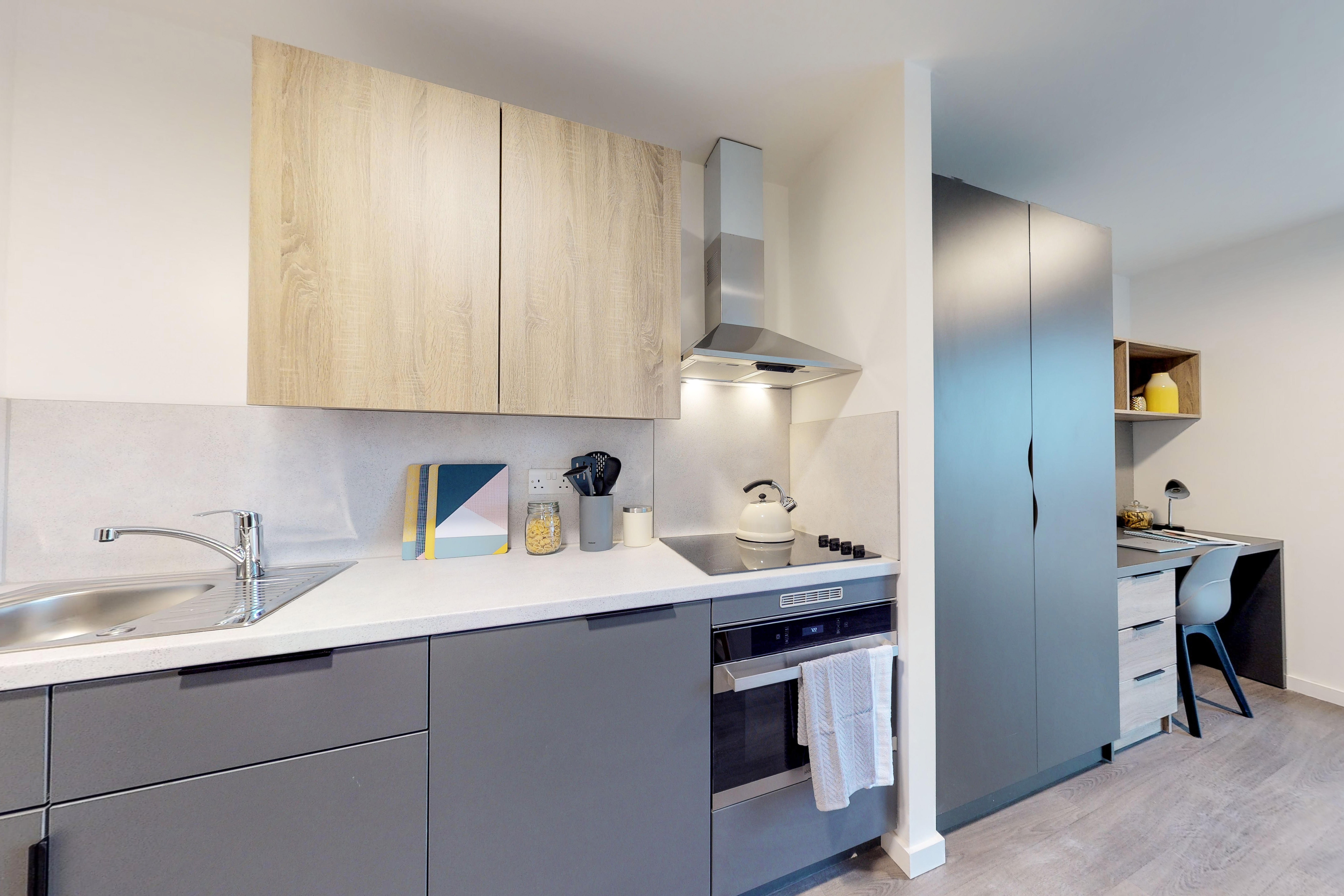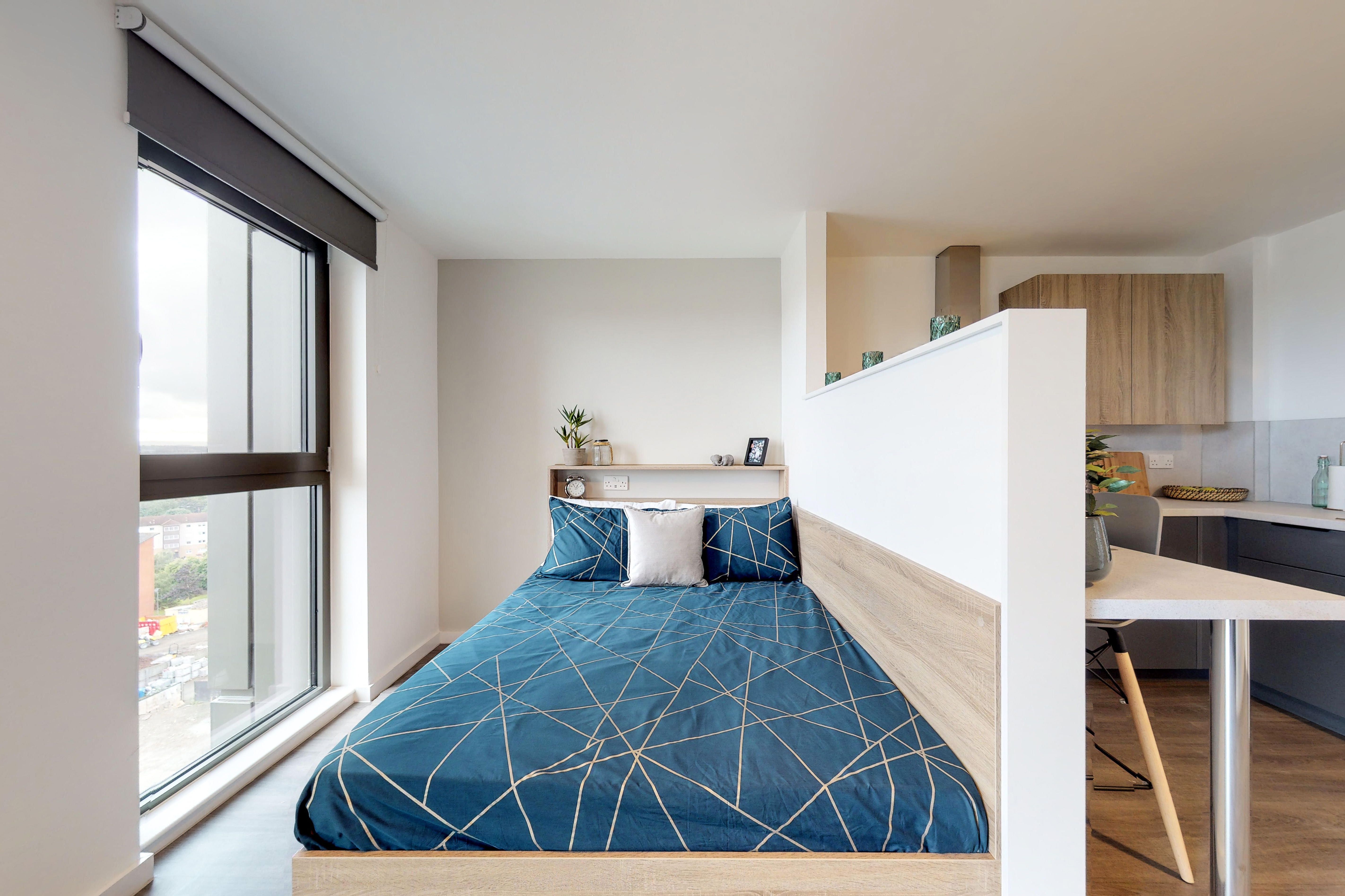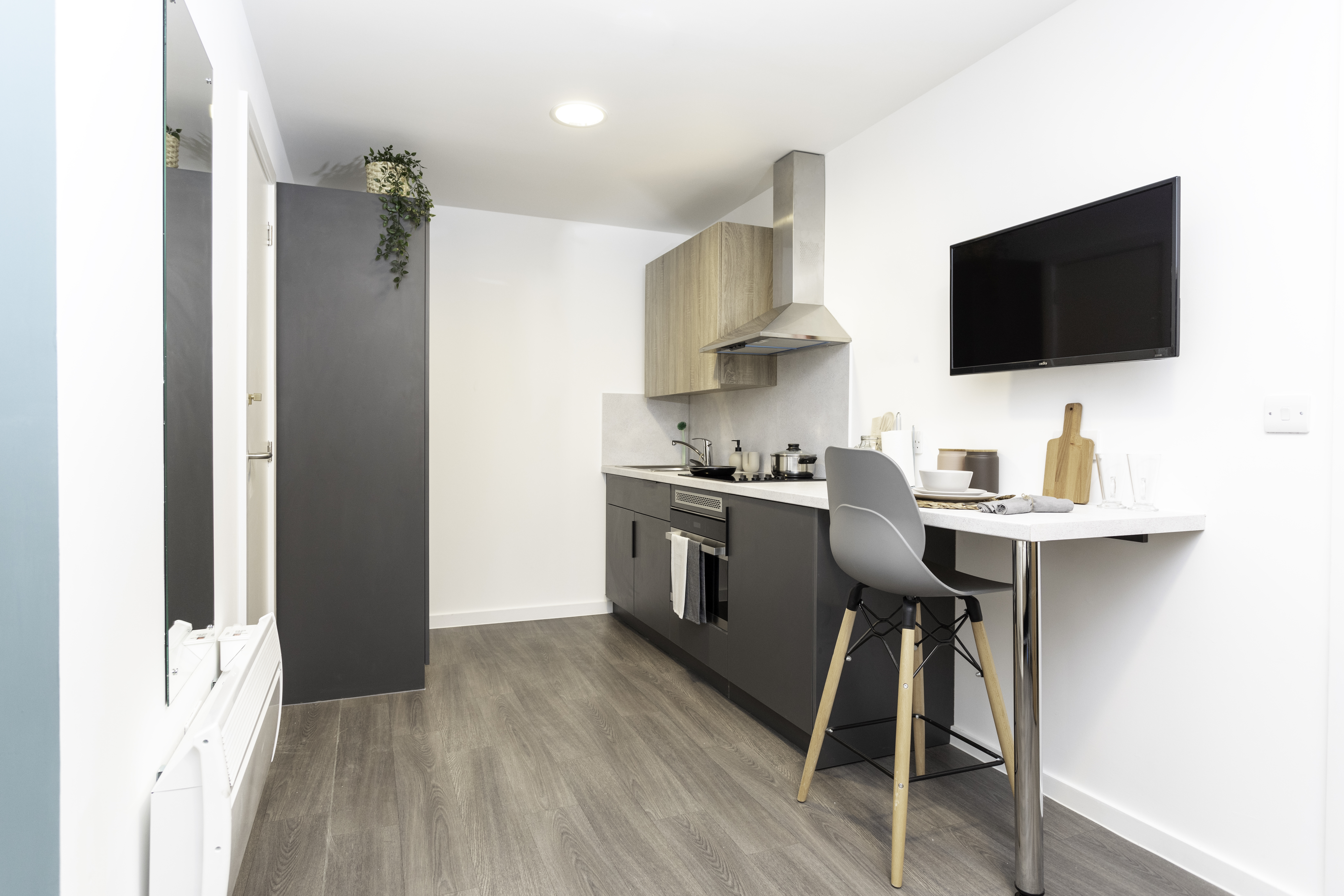 Select from a studio or ensuite-apartment at Nido Alliot House. Our studios are ideal for having your own space. Each studio comes with your own private ensuite bathroom, double bed, wardrobe storage, desk, chair plus breakfast bar and kitchenette.