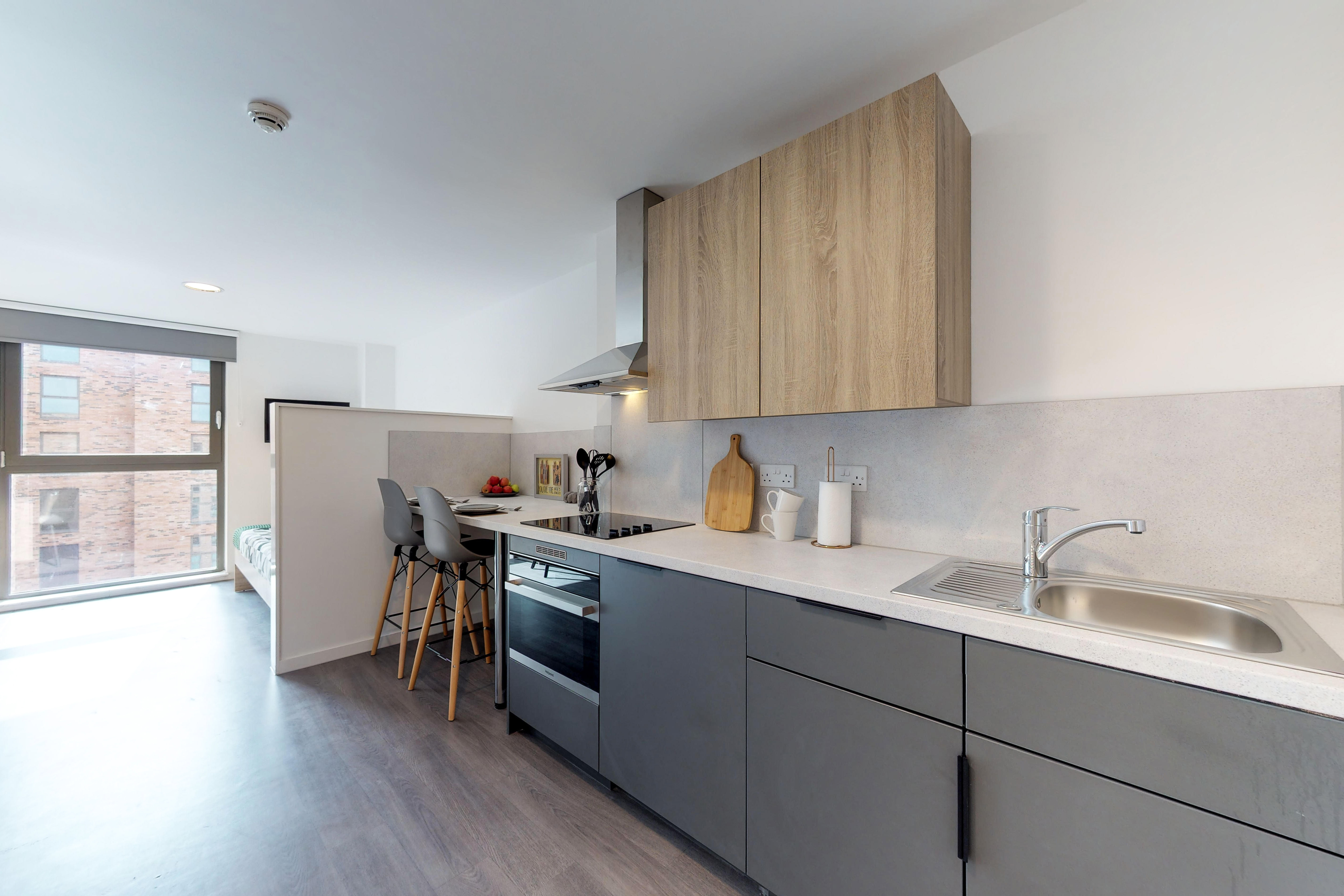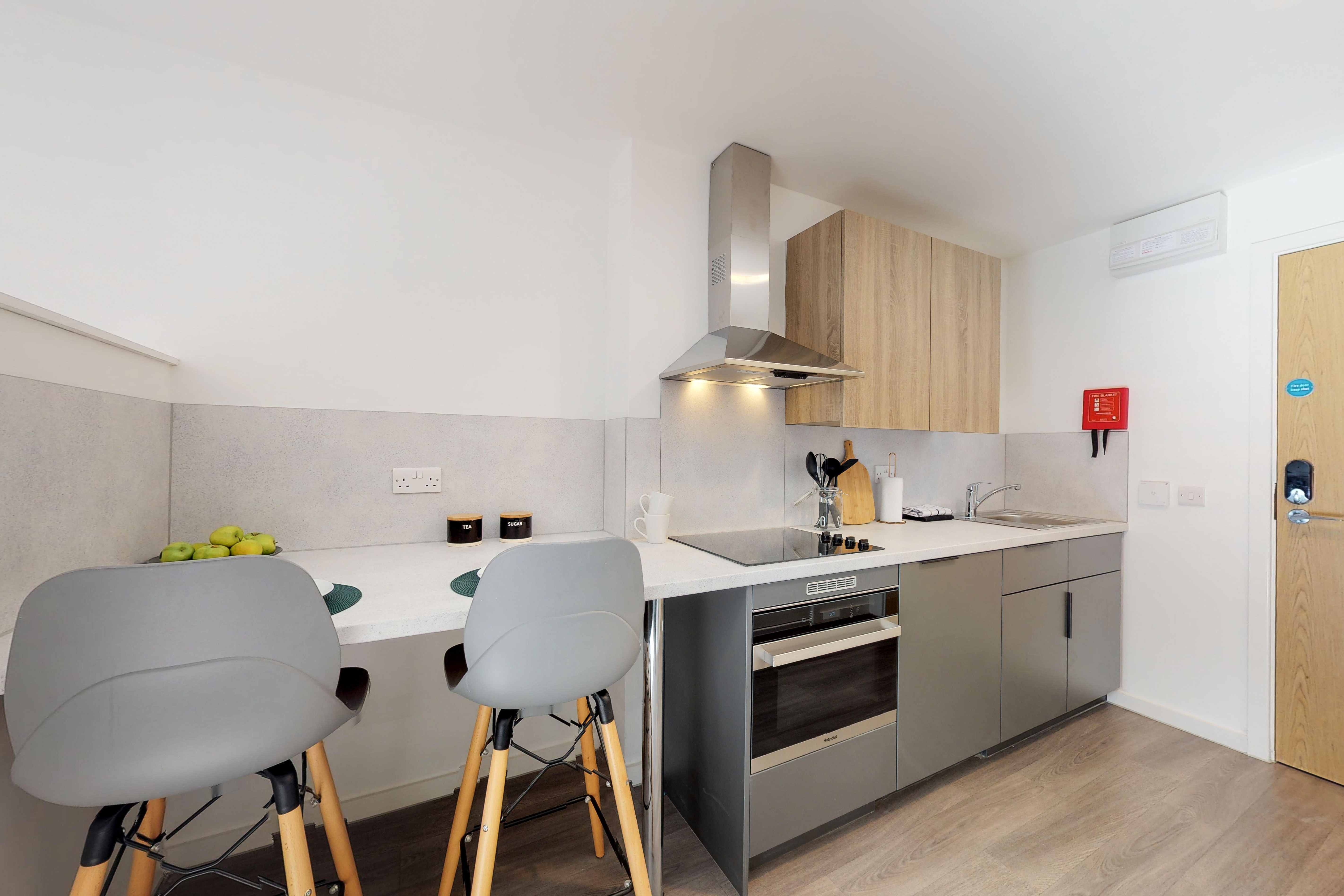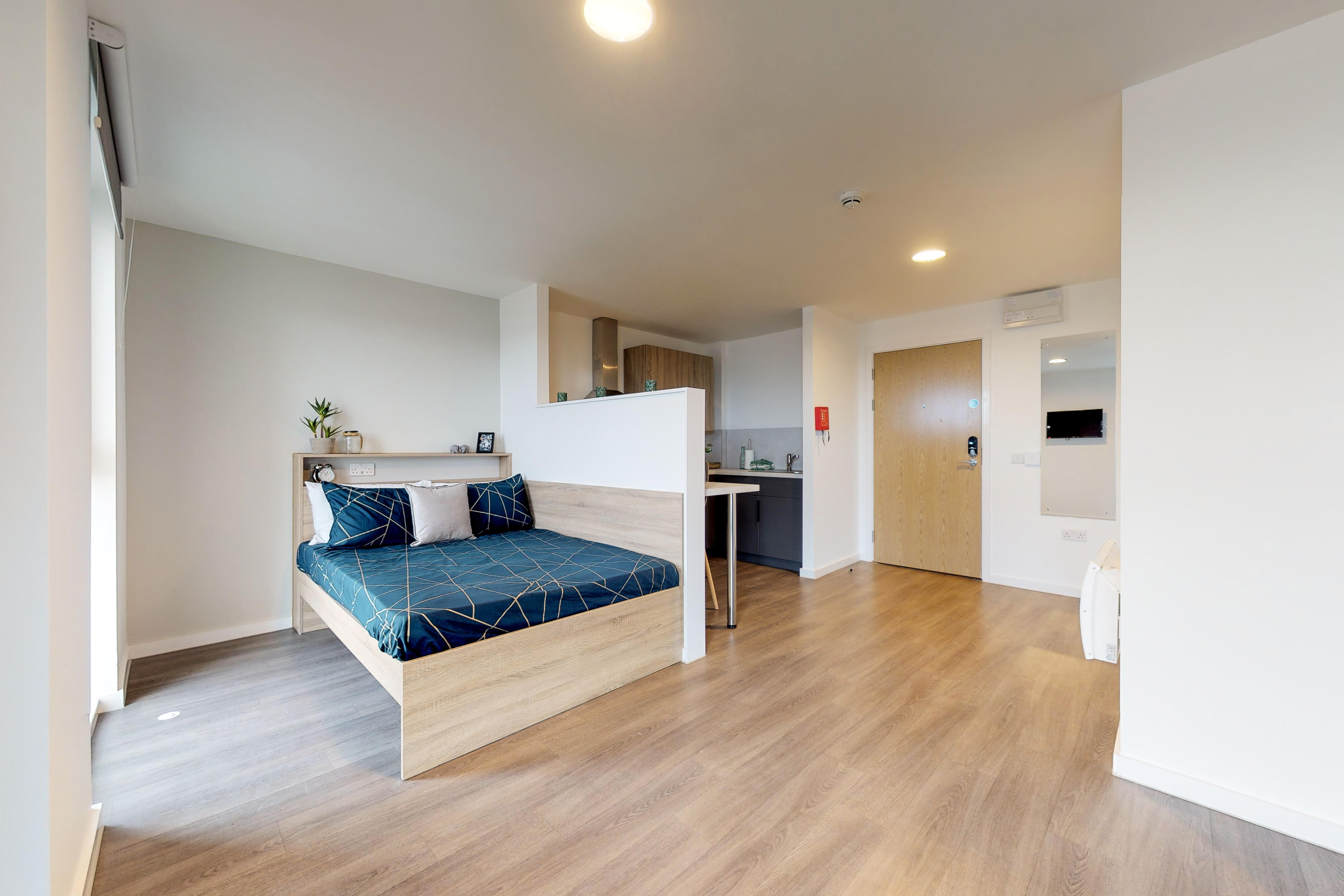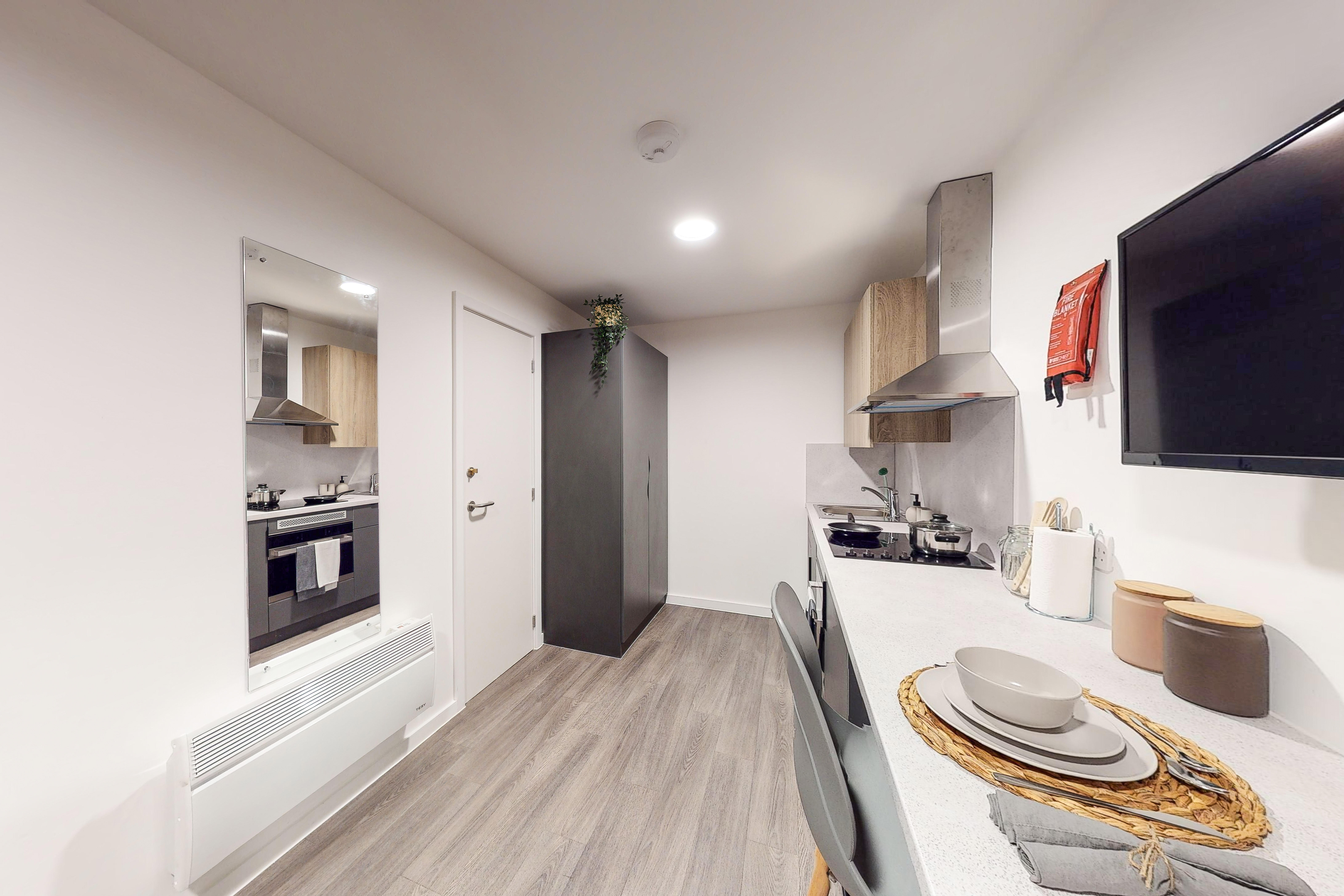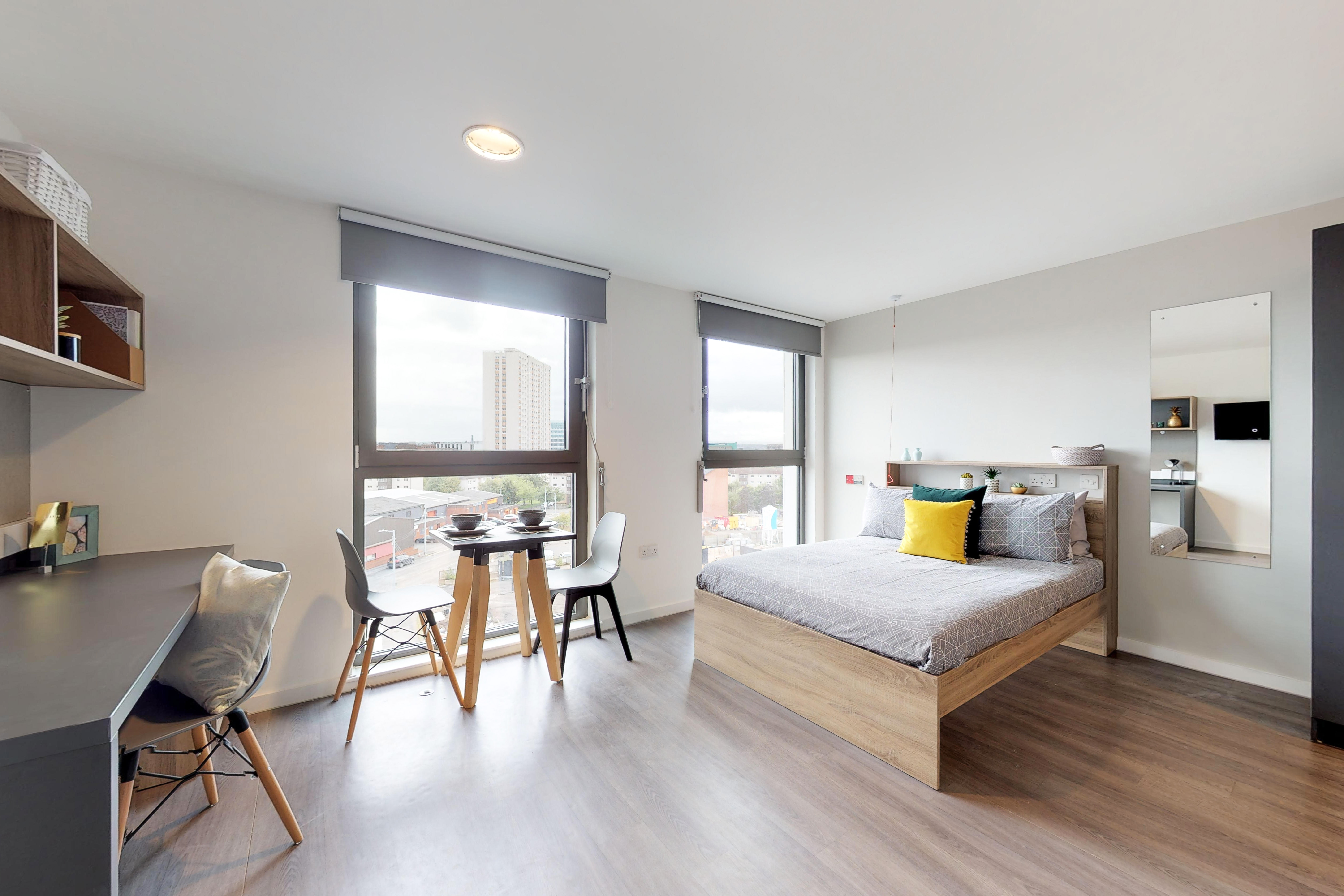 Select from a studio or ensuite-apartment at Nido Alliot House. Our studios are ideal for having your own space. Each studio comes with your own private ensuite bathroom, double bed, wardrobe storage, desk, chair plus breakfast bar and kitchenette.