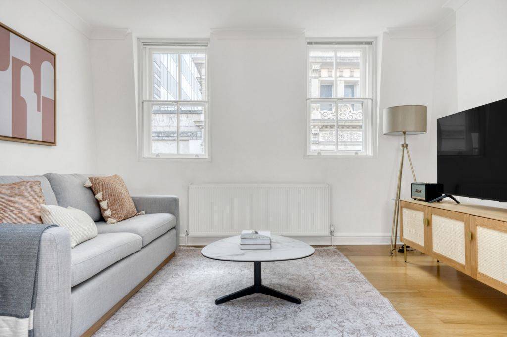 This furnished flat is located in Charing Cross, the historic Central London neighbourhood that surrounds one of the city’s busiest transportation hubs. This area is known for cultural highlights like Nelson’s Column, set in Trafalgar Square, and the British National Portrait Gallery. There are also high-end hotels like the Savoy and the Strand, and several performing arts theatres in the neighbourhood. The culinary scene ranges from convenient takeaways to white tablecloth dining, with many options for theatregoers to enjoy. Charing Cross is served by the London Underground’s Bakerloo and Northern lines as well as Charing Cross Station, with local and regional train service.