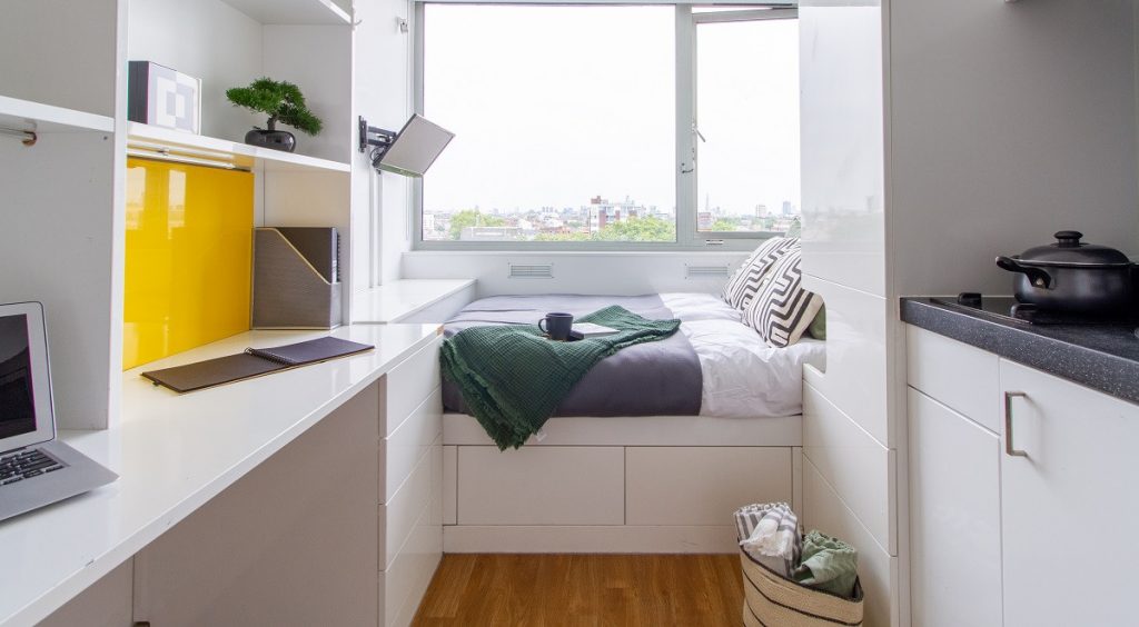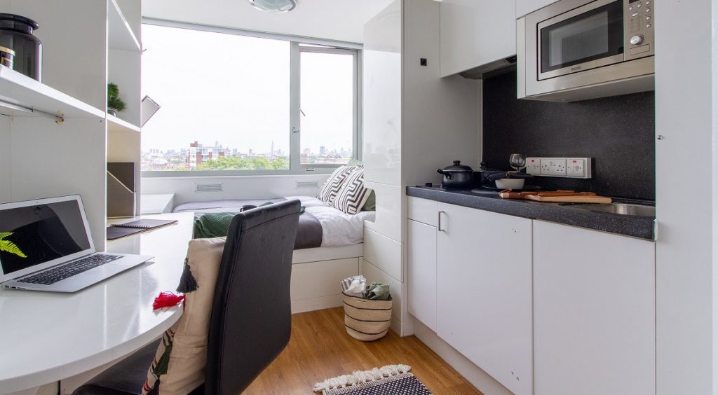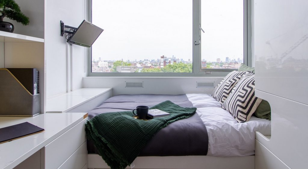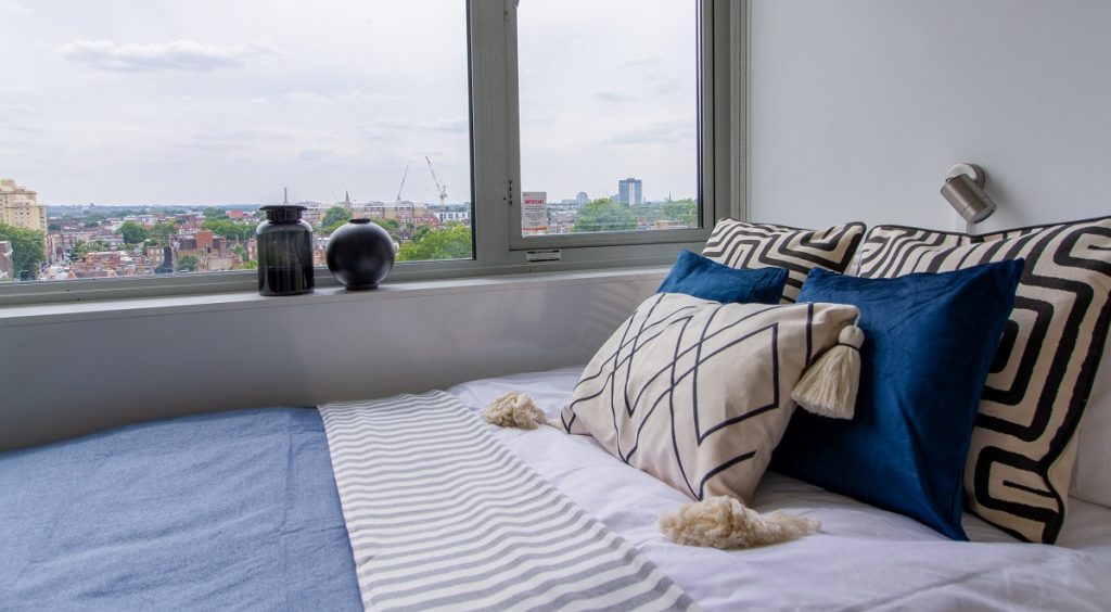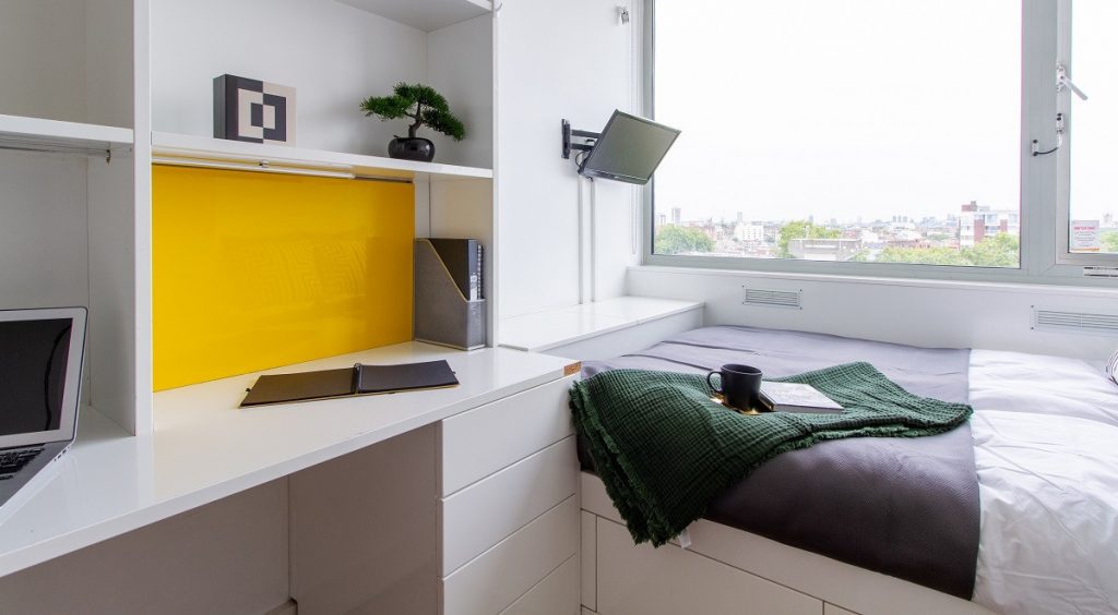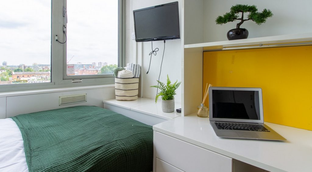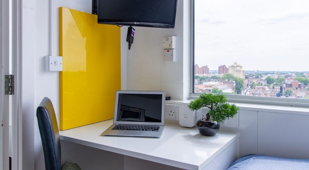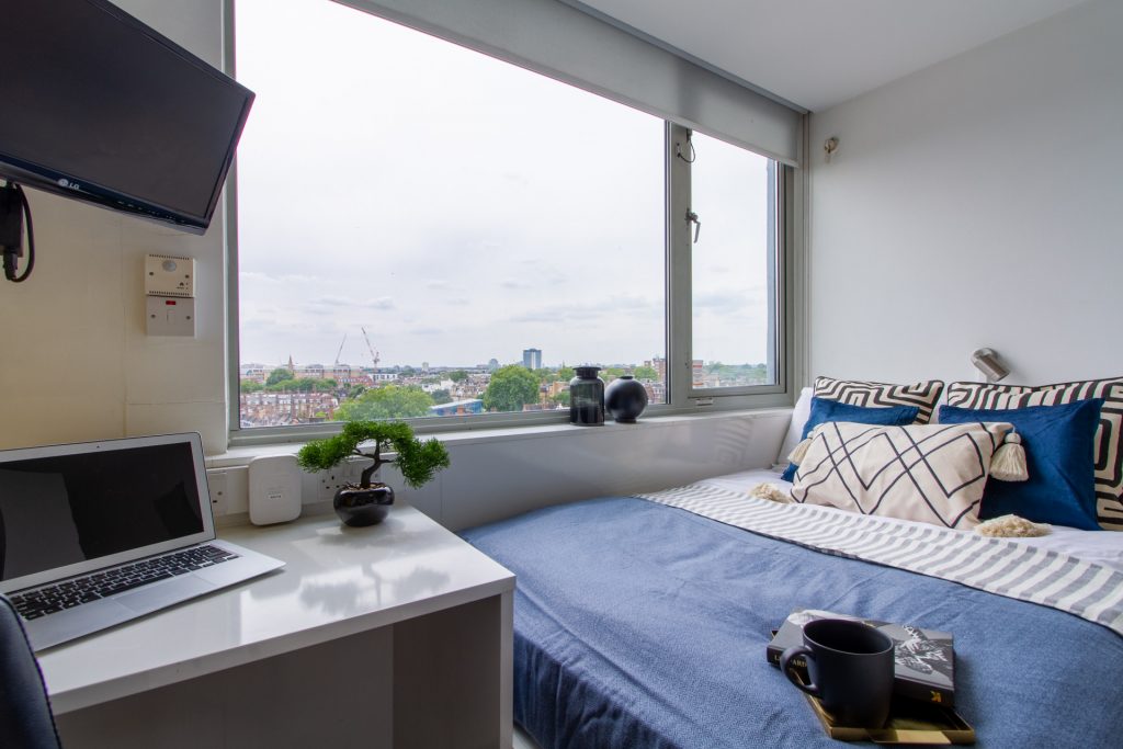 Want stunning panoramic views of Chelsea? Our self-contained Executive Studio is located on a higher floor with big airy windows that display totally Insta-worthy views! Measuring around 13m², your studio comes with a comfy ¾ bed, perfect to snuggle into after a long day at uni. With an en suite bathroom, a handy study area and a wardrobe, you’ll feel right at home in no time. On an evening, sit back, relax, and watch a film on your TV, or surf the web with your 100Mbps WIFI!