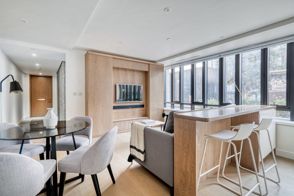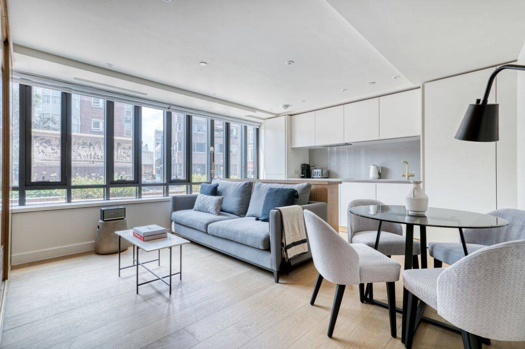Discover the best of London, with this one-bedroom City of London apartment with views over the city. It’ll be easy to simply show up and start living in this exquisitely furnished apartment with its fully-equipped kitchen, cozy living room, and our dedicated, on-the-ground support.Thoughtfully designed with bespoke finishes, modern furnishings, and a fully-equipped kitchen, you’ll enjoy that “I’m home” feeling with this apartment. Whether you’re lounging in your pretty living room streaming the latest and greatest entertainment on the smart TV or premium wireless speaker, or getting some well-earned rest on the superior quality mattress with luxury linens, you’ll fall in love with everything this City of London apartment has to offer. This apartment also offers in-apartment laundry. Sleeping Arrangements King Bed, 150cm Amenities Building amenities unique to this one-bedroom include an on-site: – Doorman – ElevatorA few things to note:Building amenities may have an extra cost.Notice: Displayed prices and data are not final, and should be used for informative purpose only. They are not contractual or binding. Energy pass This building is not subject to EnEV.