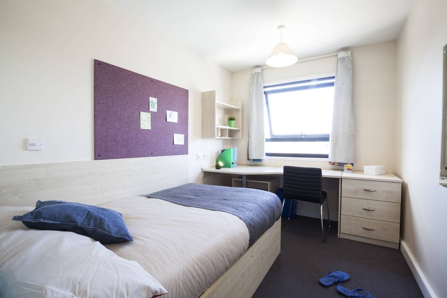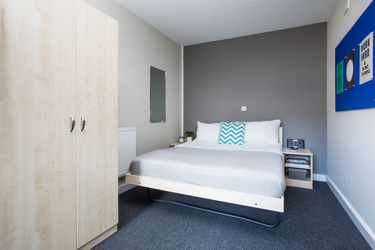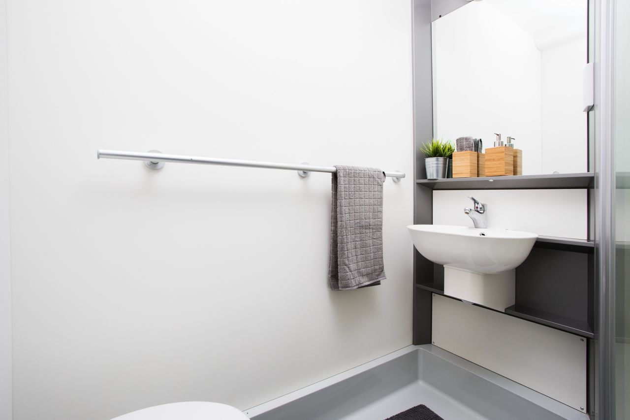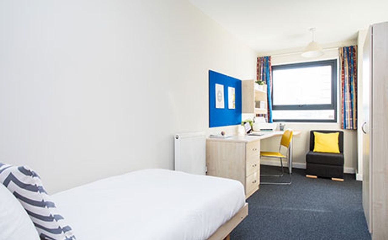 Feel at home in your en-suite room, which has a private shower room with sink and toilet, a comfortable bed and a large Wi-Fi connected study area. As well as a wardrobe, you'll find storage space under your bed and shelves and drawers to store your belongings.