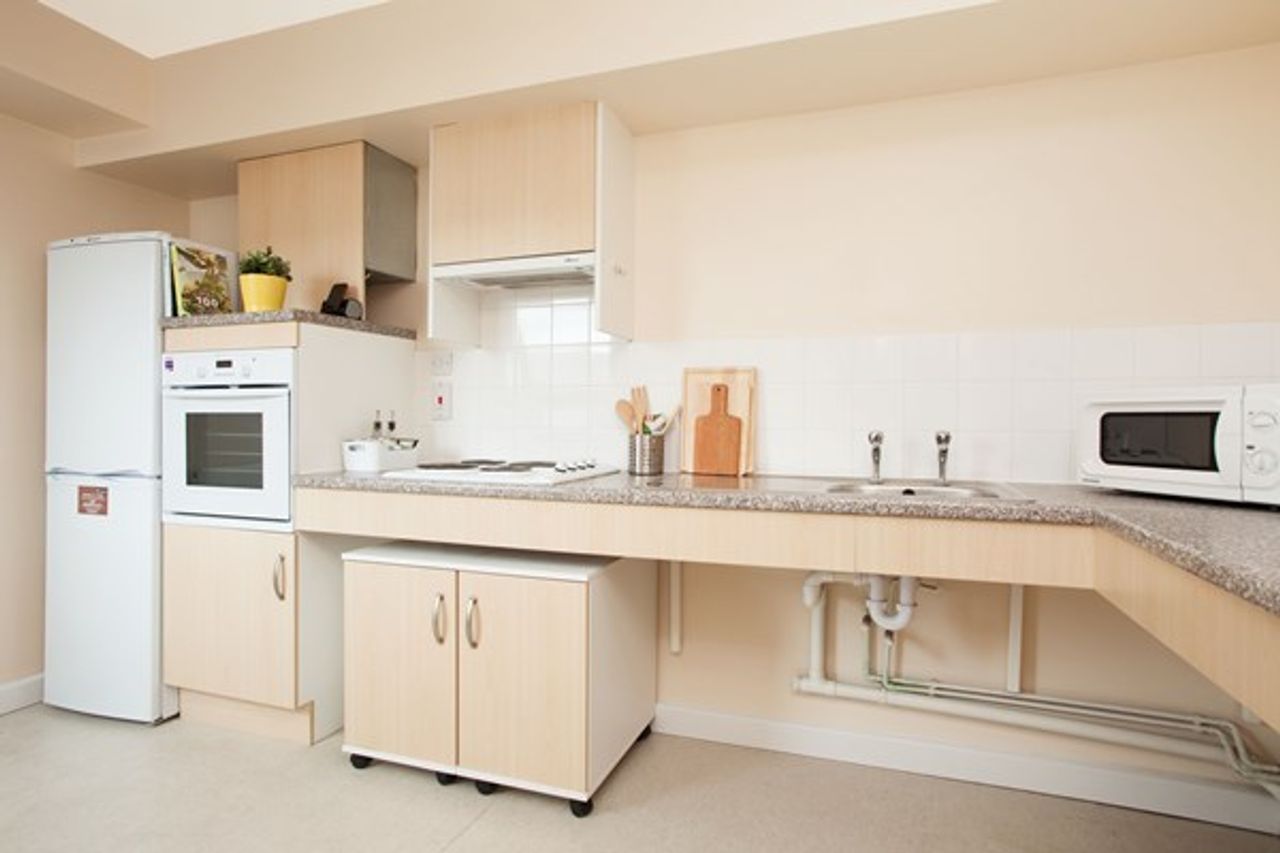Our accessible rooms are designed for wheelchair users and students with limited mobility. You will have your own private bathroom, a comfortable bed, a wardrobe, plenty of additional storage for your belongings, and a Wi-Fi connected study space.