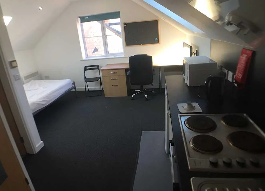 These rooms come with a small double bed, comfy mattress, desk, chair and wardrobe with plenty of storage. They also come with fully equipped kitchens with a living area. All bills included and on-site maintenance with our cleaning team cleaning the kitchens once a week.