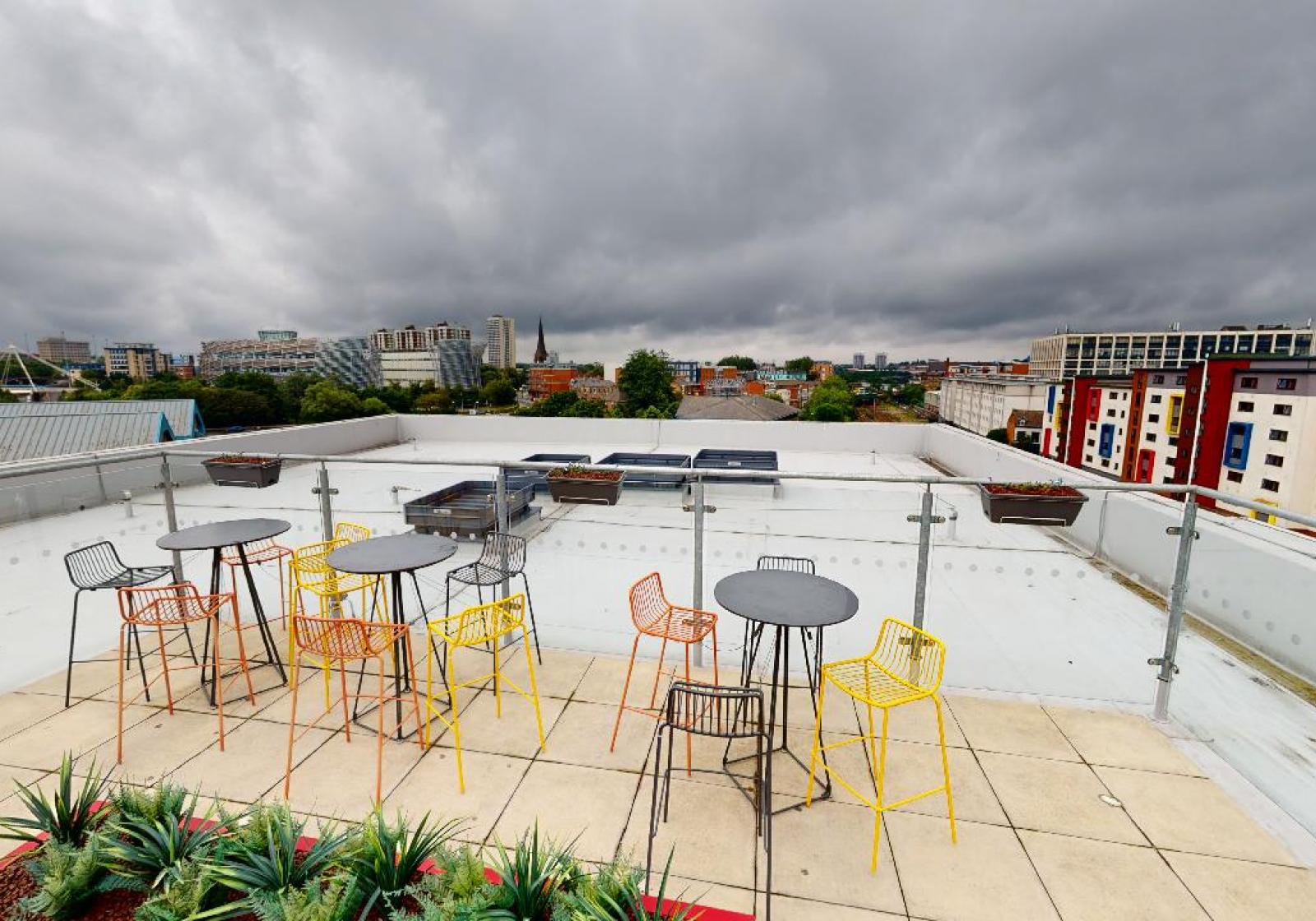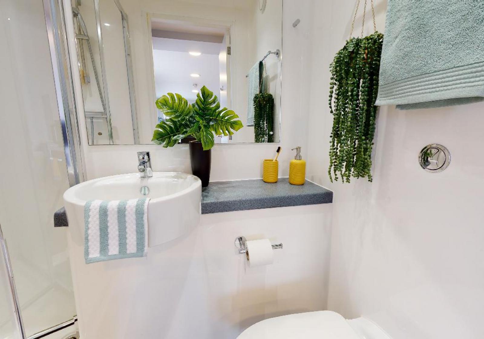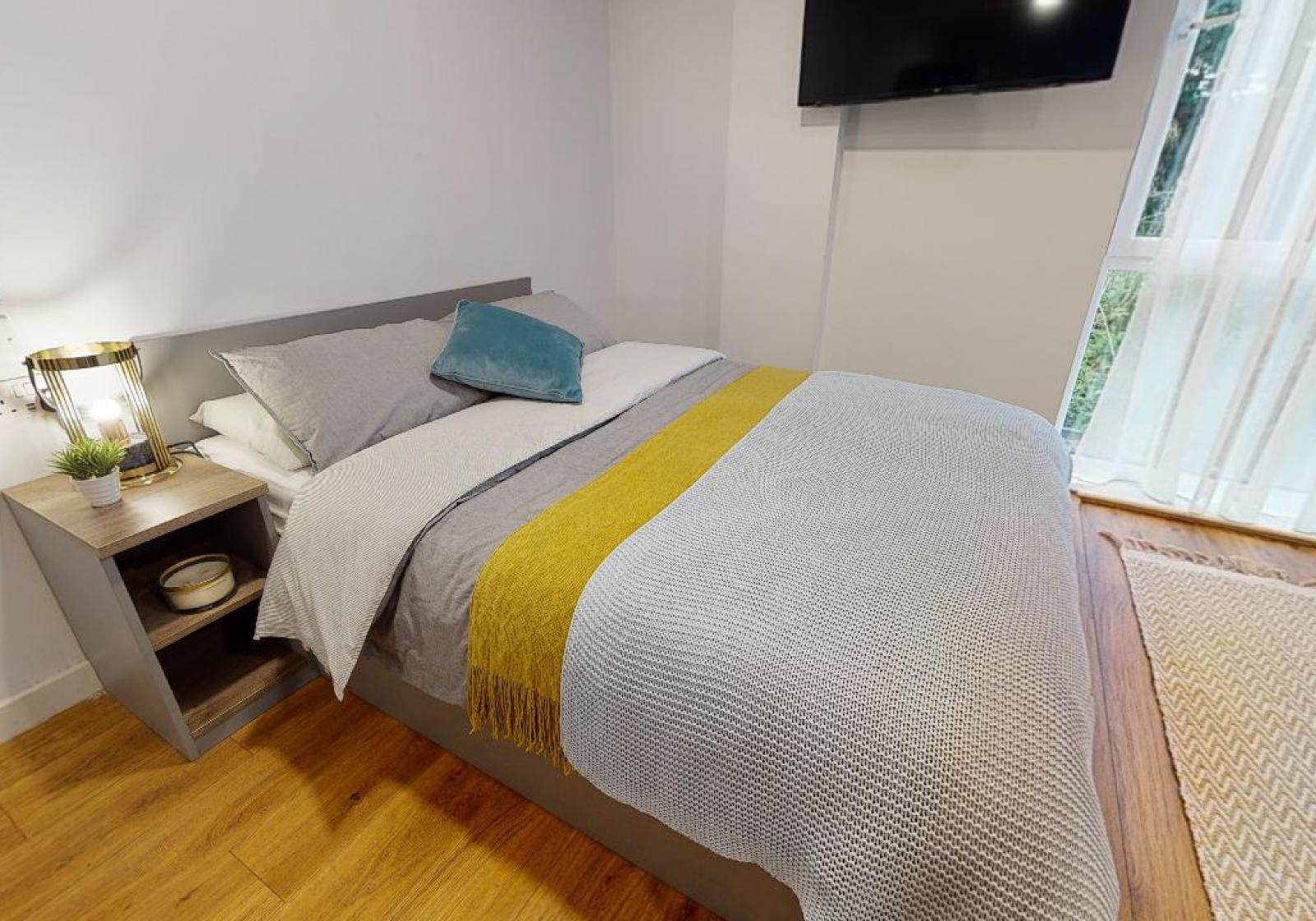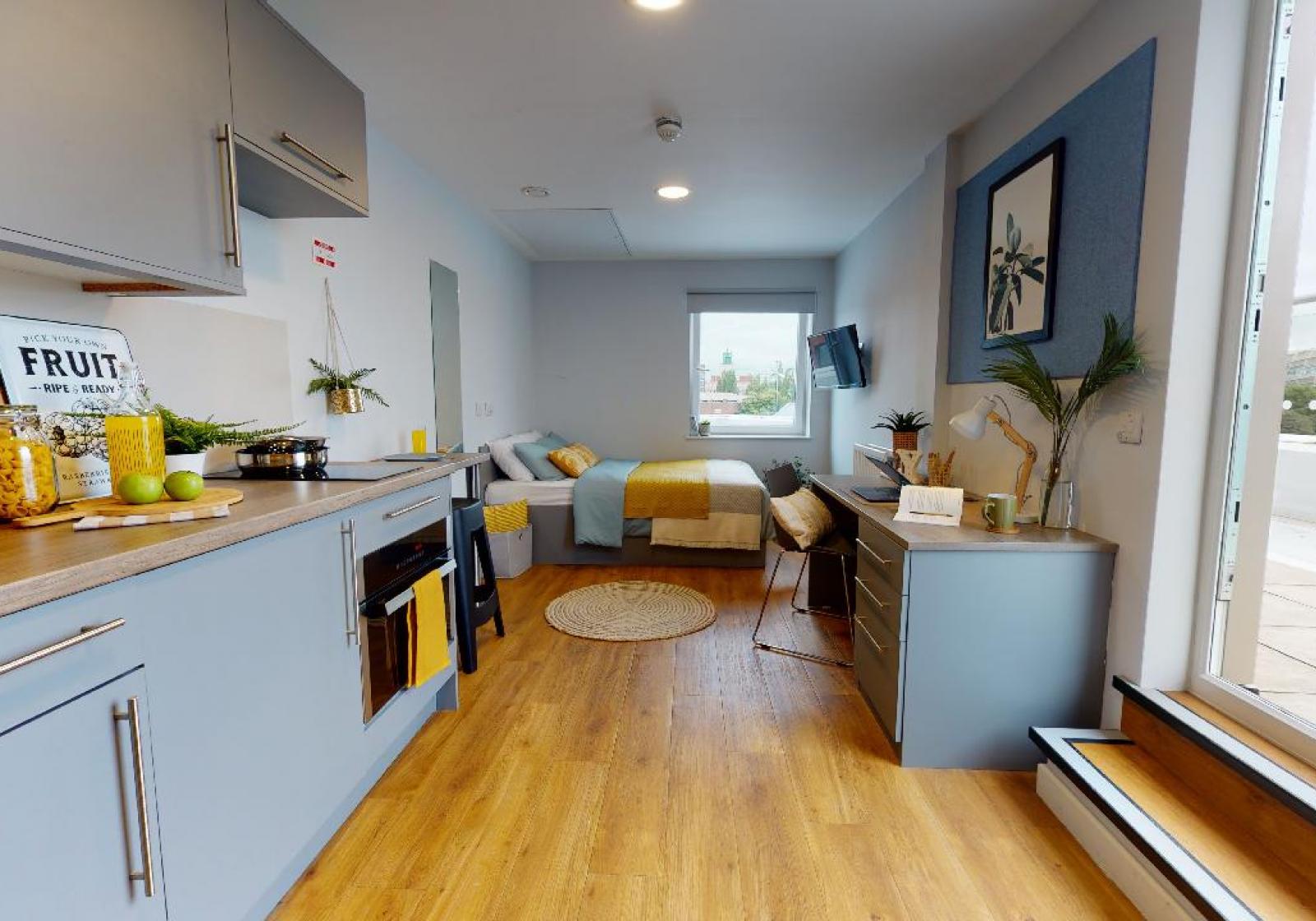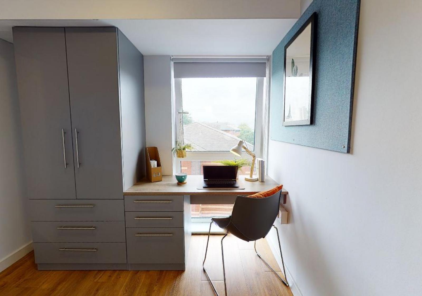These huge top floor studios come with full-size double bed, private bathroom, 32” Smart TV, lots of storage, fully kitted kitchen, stylish furniture and study area. With a cinema, gym, games room and additional shared roof terrace, this building has superb perks too.