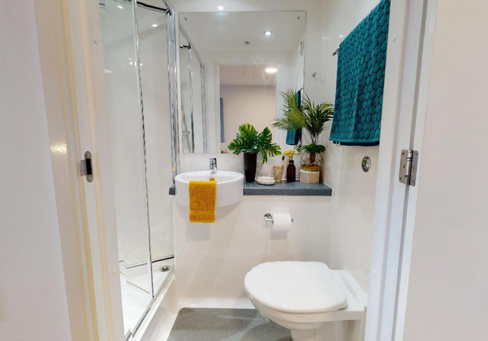 Your 14 sq m room comes with private bathroom, lots of storage and study area. You’ll share a big, stylish open-plan living room and kitchen with your flatmates featuring a 40” Smart TV, comfy sofas and all the essential cooking equipment. This building is also brilliantly kitted-out with cinema, gym, games room and roof terrace with stunning views.