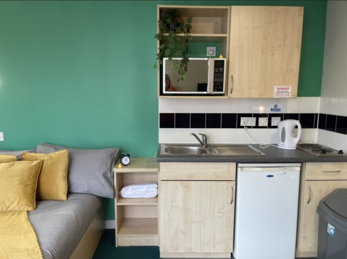 With tenancy available 51 Weeks, this room has Self contained studio bedroom with own kitchen and bathrooms and a small bed.