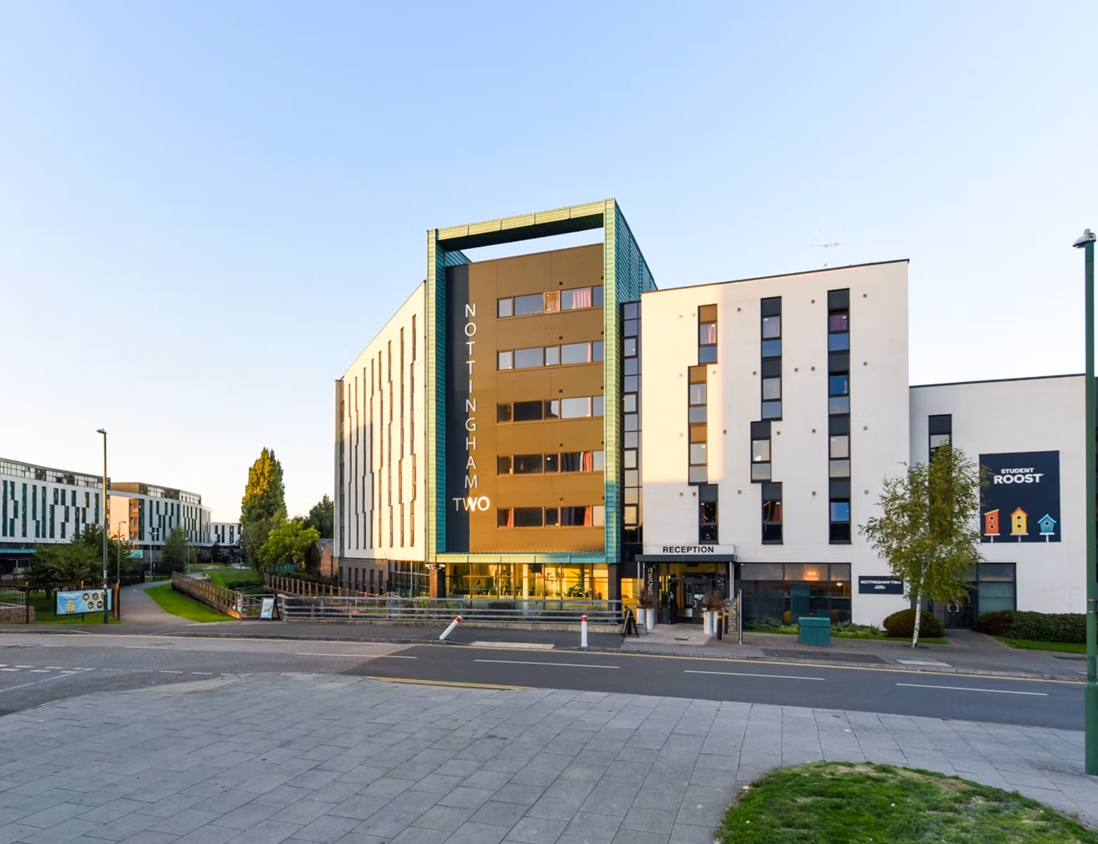 The Nottingham Two accommodation is located in Lenton, in the thriving city of Nottingham. It is only 5 minutes away from the University of Nottingham's Jubilee Campus. Student Roost Nottingham Two housing has something for everyone, whether you are an undergraduate, postgraduate, or international student. Each room is wide, with plenty of space for studying and relaxing. For students who would like to live with their friends, the property also has Double Studios.