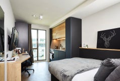 It offers modern en-suite rooms in shared apartment and studio categories. Each accommodation is stacked with a range of amenities, making students feel at home. These amenities include free wifi, kitchenette, study area, wardrobe, lounge area, gaming room, community area, and so much more. The accommodation is curated with expertise for a comfortable and economical stay.