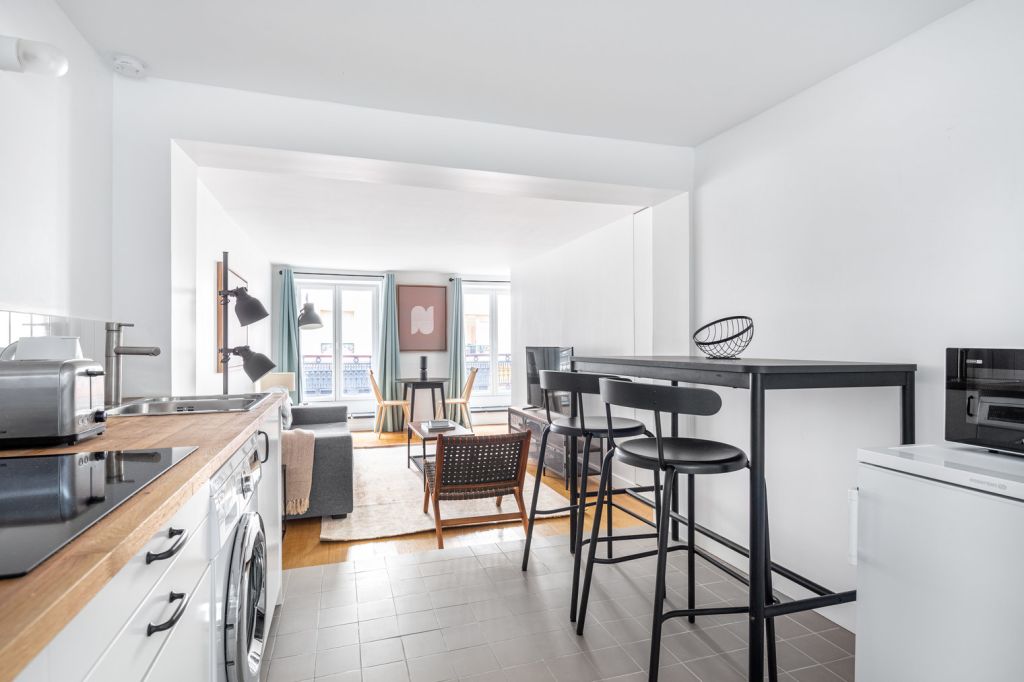 Feel at home wherever you choose to live. You’ll love this bright Sentier – Montorgueil furnished one-bedroom apartment with its modern decor, fully equipped kitchen, and beautiful living room. Ideally located, you’re close to all the best that Paris has to offer!As with any apartment, you’ll find a thoughtfully designed space complete with beautiful furniture and a fully-equipped kitchen in this one-bedroom property. And, thanks to our superior quality mattresses, luxury linens, and towels, you can relax knowing you’ll always feel comfortably at home. When you’re ready for some fun, you can take in the Paris vibes or bring the entertainment to you with the premium wireless speaker or smart TV. Sleeping Arrangements Double Bed, 55in/140cmA few things to note:Building amenities may have an extra cost.Notice: Displayed prices and data are not final, and should be used for informative purpose only. They are not contractual or binding. Energy pass This building is not subject to EnEV.A symbol of the Sentier-Montorgueil area of the 1st and 2nd arrondissements, Rue Montorgeuil is a foodie’s mecca. A top-rate greengrocer, butcher, baker and the Pâtisserie Stohrer (the city’s oldest) are all at your doorstep. This pedestrianized block buzzes by night and on the weekends thanks to its bistro patios, restaurants and cafés of quintessentially Parisian and hipster traditions. Leisure aside, this furnished apartment is well placed to a number of Rue du Sentier startups and the offices of AFP. Metro lines 3 and 4 pass through Sentier-Montorgueil with quick connections to the RER network via Châtelet-Les Halles.