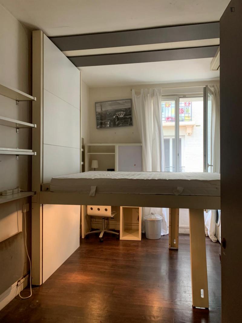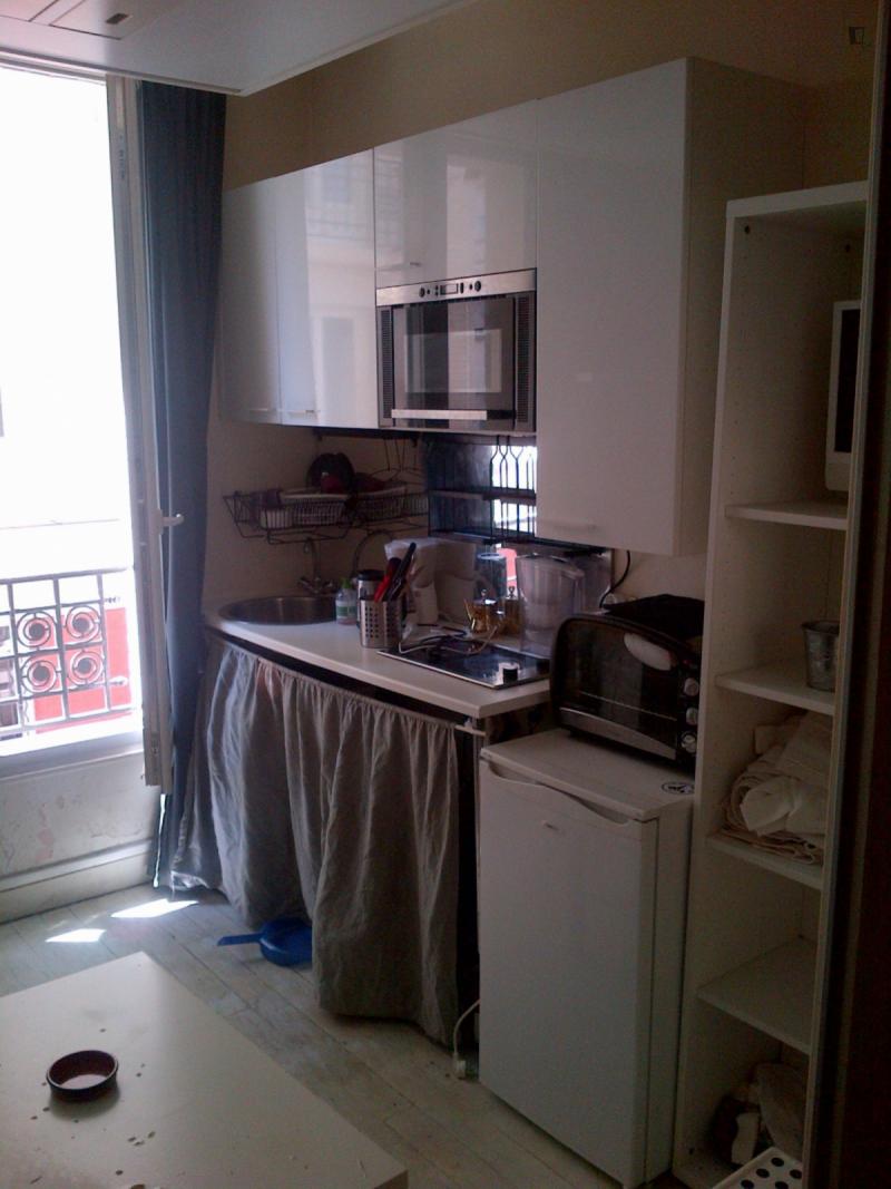 Please note that the admin fee is equal to 55 euros per month of the rental contract and the whole amount is to be paid in full within 48 hours of booking acceptance. Calm and bright furnished studio located in a beautiful residence in the 18th district of Paris. Near the university center Clignancourt – Sorbonne University and the subway line Marx Dormoy (line 12).