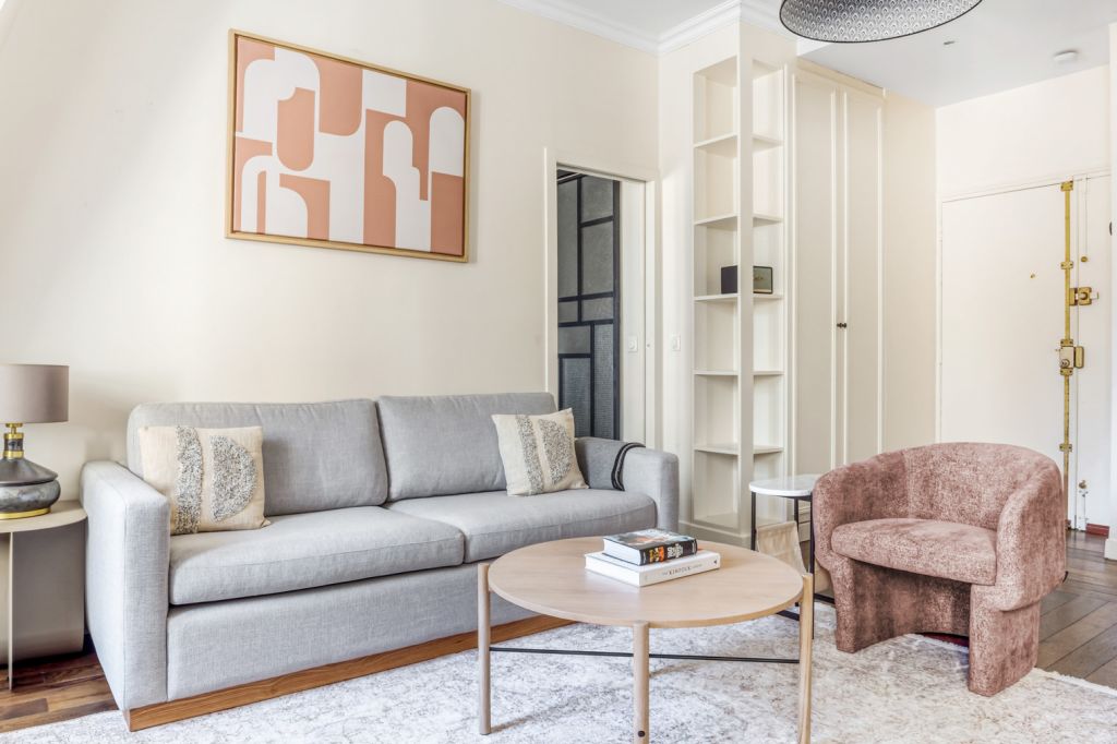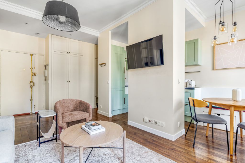 Discover the best of Paris, with this one-bedroom Saint-Georges apartment. It’ll be easy to simply show up and start living in this beautifully furnished apartment with its fully-equipped kitchen, stylish living room, and our dedicated, on-the-ground support.As with any apartment, you’ll find a thoughtfully designed space complete with beautiful furniture and a fully-equipped kitchen in this one-bedroom property. And, thanks to our superior quality mattresses, luxury linens, and towels, you can relax knowing you’ll always feel comfortably at home. When you’re ready for some fun, you can take in the Paris vibes or bring the entertainment to you with the premium wireless speaker or smart TV. This apartment also offers in-apartment laundry. Sleeping Arrangements Double Bed, 55in/140cm Amenities Building amenities unique to this one-bedroom include an on-site: – ElevatorA few things to note:Building amenities may have an extra cost.Notice: Displayed prices and data are not final, and should be used for informative purpose only. They are not contractual or binding. Energy pass This building is not subject to EnEV.This idyllic apartment is conveniently located in Saint-Georges, located within the 9th arrondissement. Nestled between the Pigalle district and the churches of Saint Trinity and Notre Dame de Lorette, Saint Georges is hailed for its neoclassical and Haussmanian buildings. Saint-Georges is the perfect location to enjoy a quieter, small-town vibe than downtown Paris, and you will love the quaint shops and dining, as well as the famed Musée de la Vie Romantique.