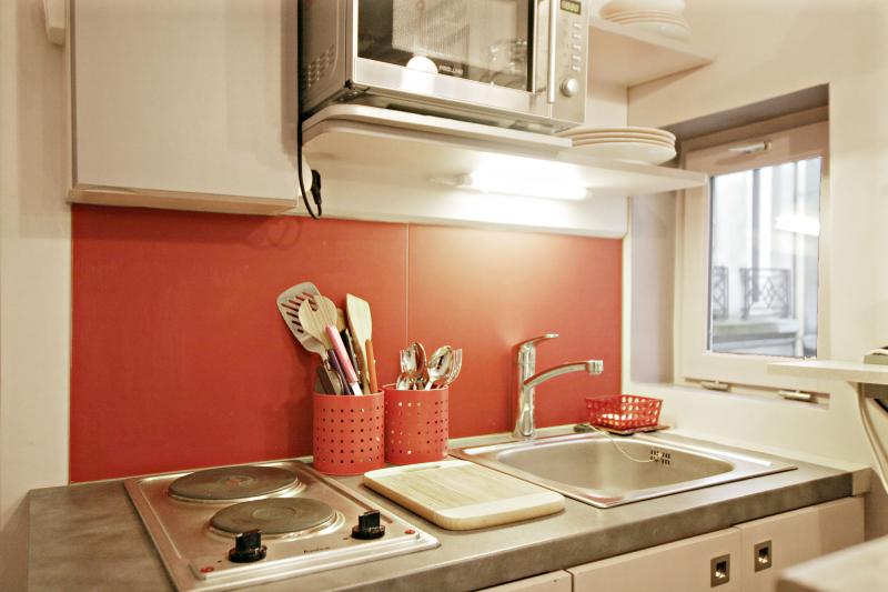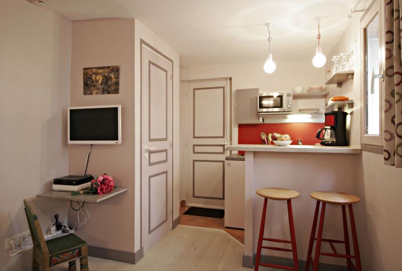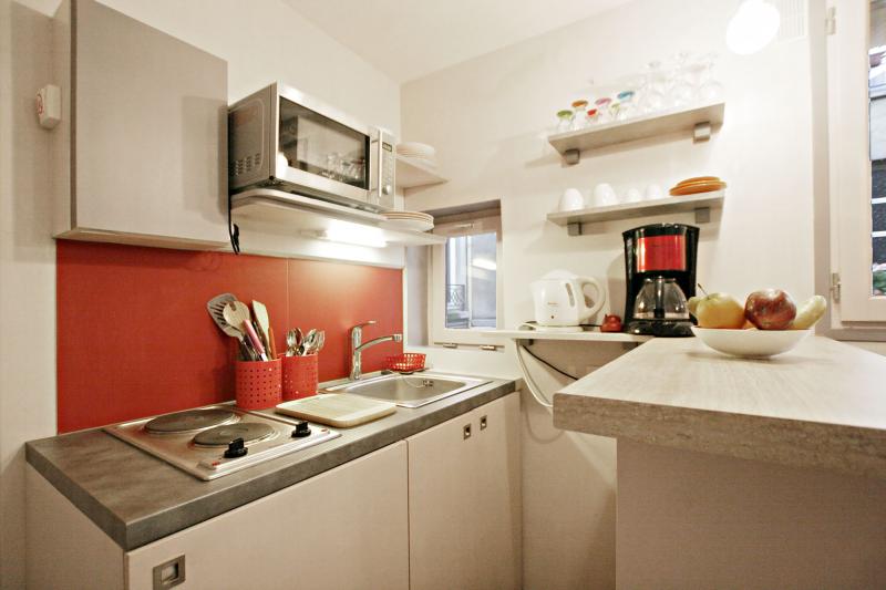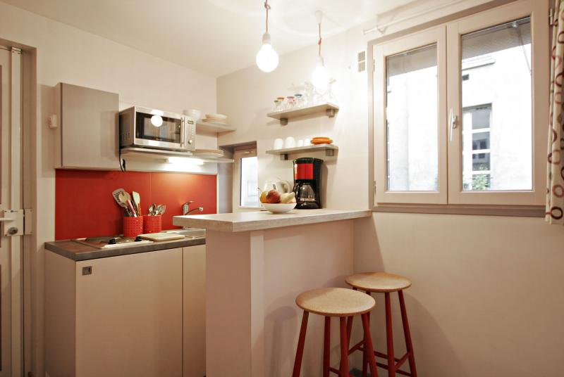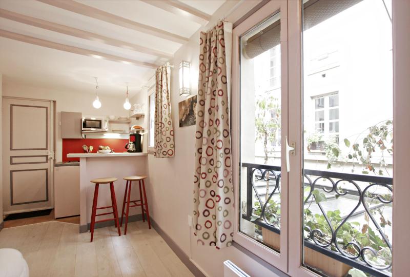 The studio – near Arts et Métiers metro station – has a luxurious bedroom area, a modern kitchen, a shower room and a WC. It has a very classy and cute décor, making you feel at home from the start. Plus, Square Du Temple, where you can relax or go for a walk is only a few minutes away.