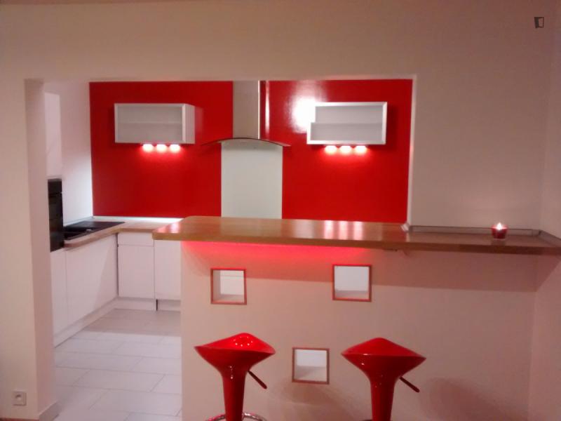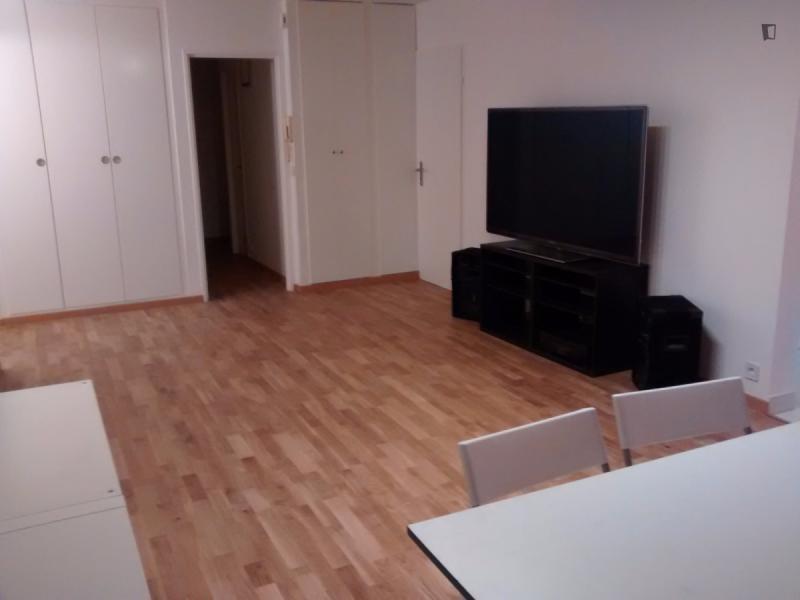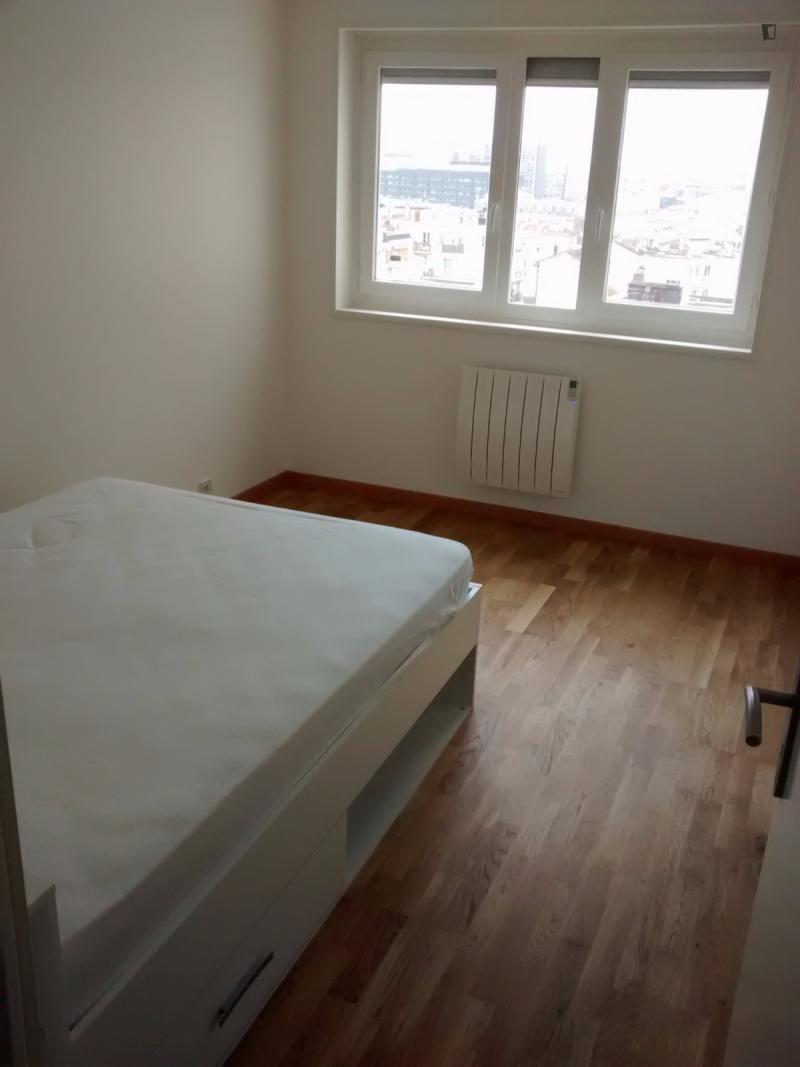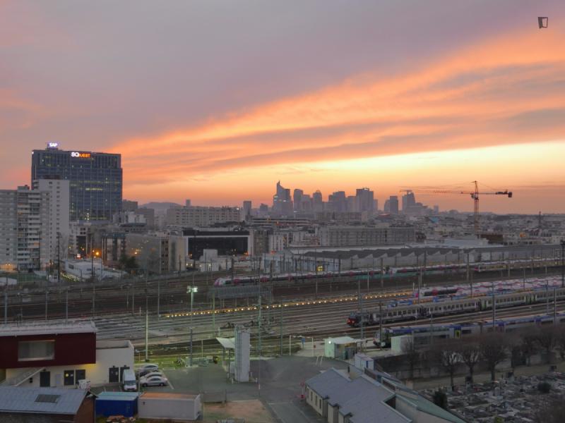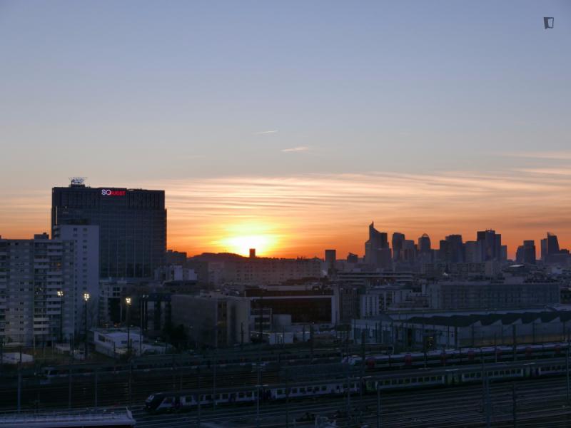 Large 90 squared meter flat in the North of Paris 20min away from the center with a spectacular and bright view of La Tour Eiffel and La Défense. Building is very quiet and safe, the flat is located on the 11th floor. Metro Porte/Mairie de Clichy and RER C direct to Versailles and la Tour Eiffel, L14 now available to go South East of Paris in 20min, Bercy-Austerlitz and Gare de Lyon