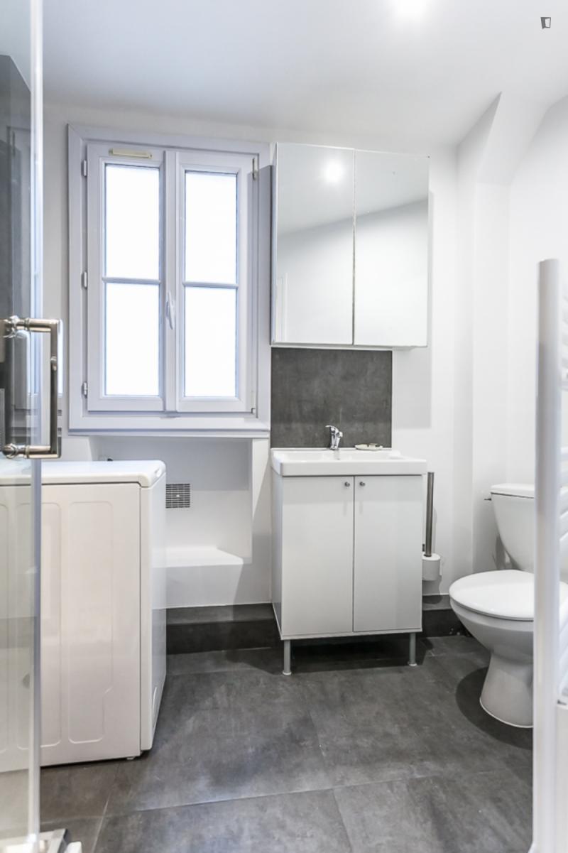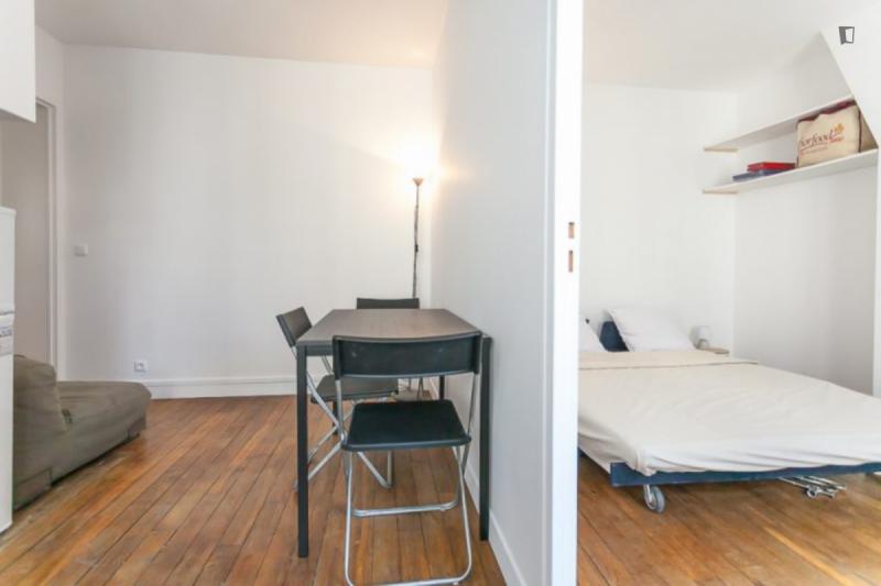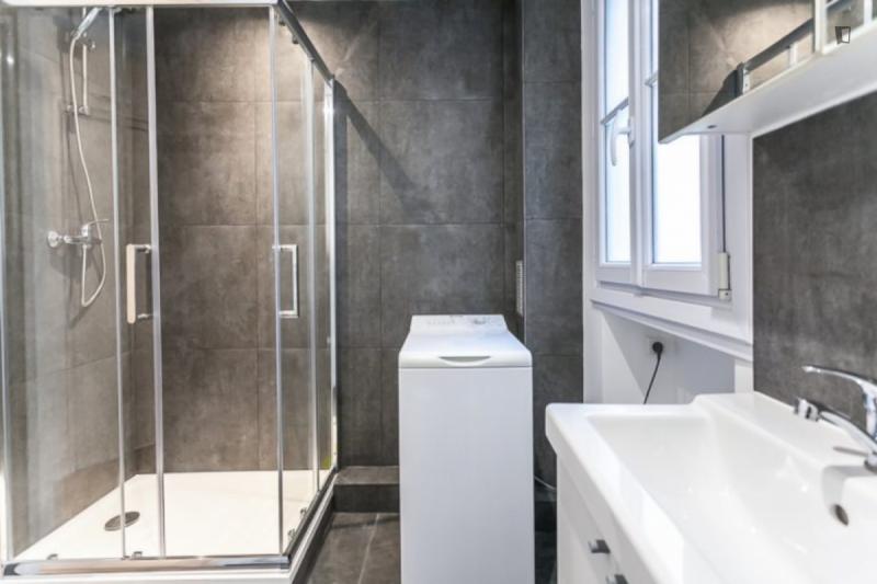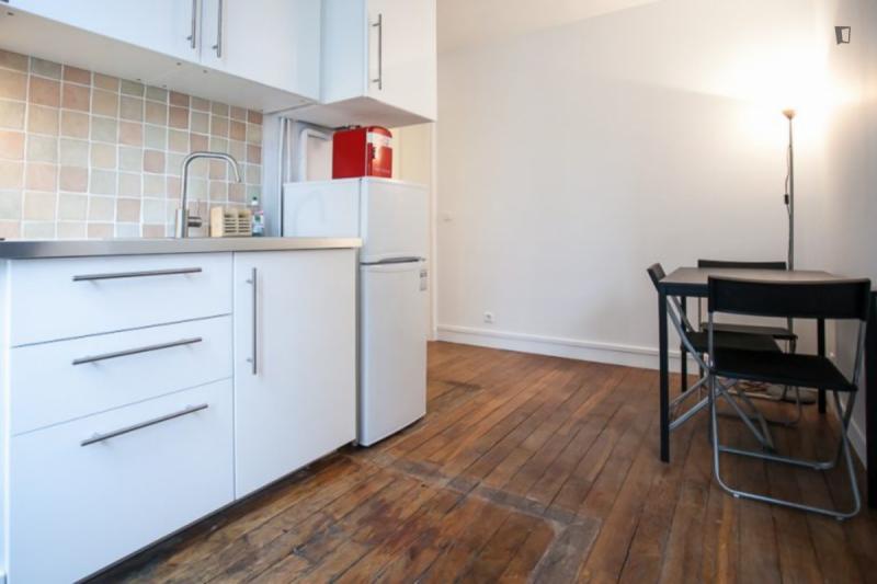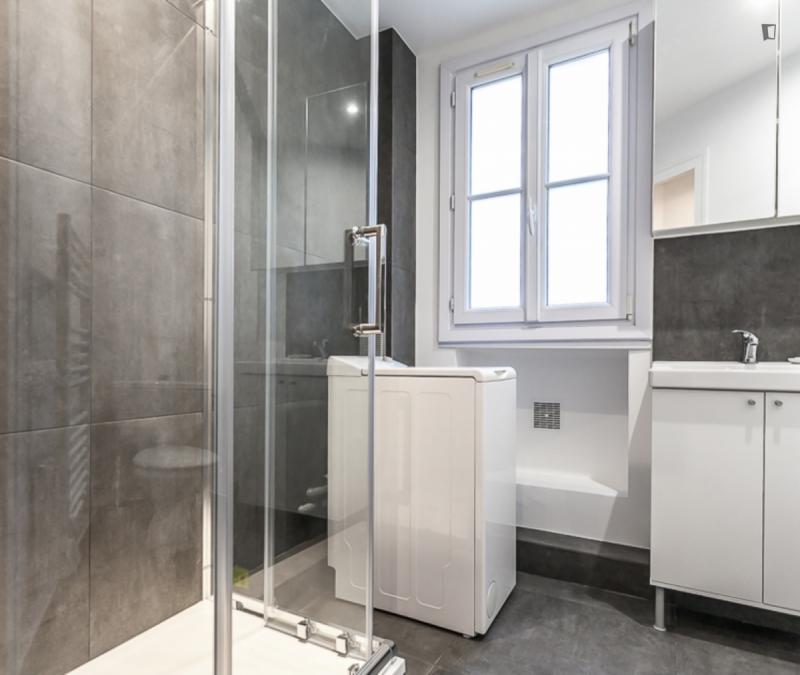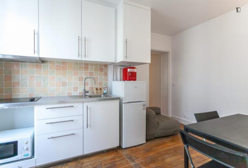 It is composed of a living room with a large dining table for 4 and an equipped brand new kitchen with stoves, microwave, large fridge and all necessary to prepare meals. The bedroom is equipped with a double bed, and the fully renewed bathroom with shower, sink, toilets and washing machine. A dressing is available in the apartement entry. Located on the 6th floor by the stair it overlooks the inside courtyard and thus offers great quietness. Linen, kitchenware and internet included. The surroundings are quiet with bakery, supermarkets and all convenient stores and restaurants / bars. Closest metro are Daumesnil or Dugommier (both on line 6) or Saint Emilion (line 14)